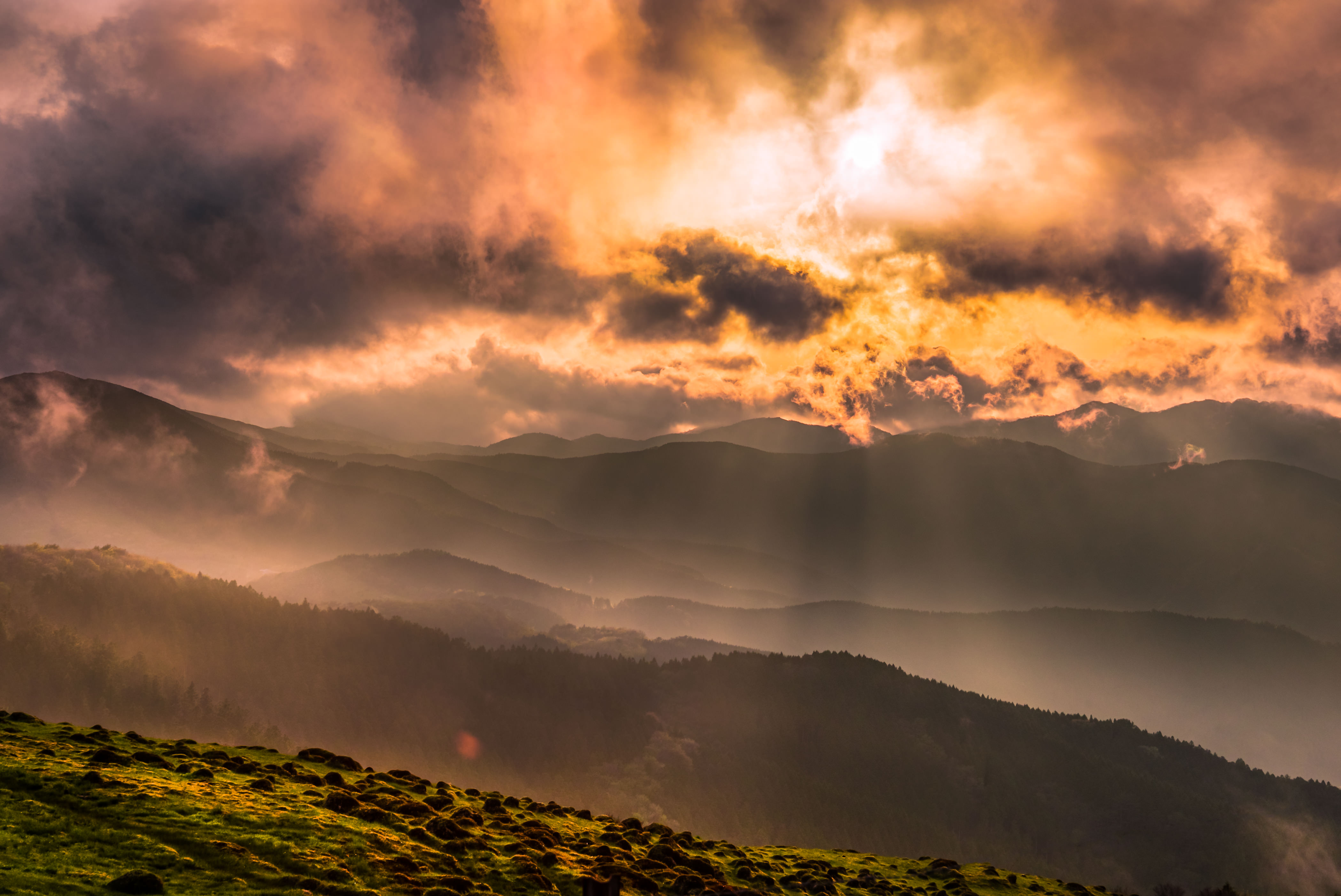光が雲の隙間から溢れてて、とてもきれいでした。