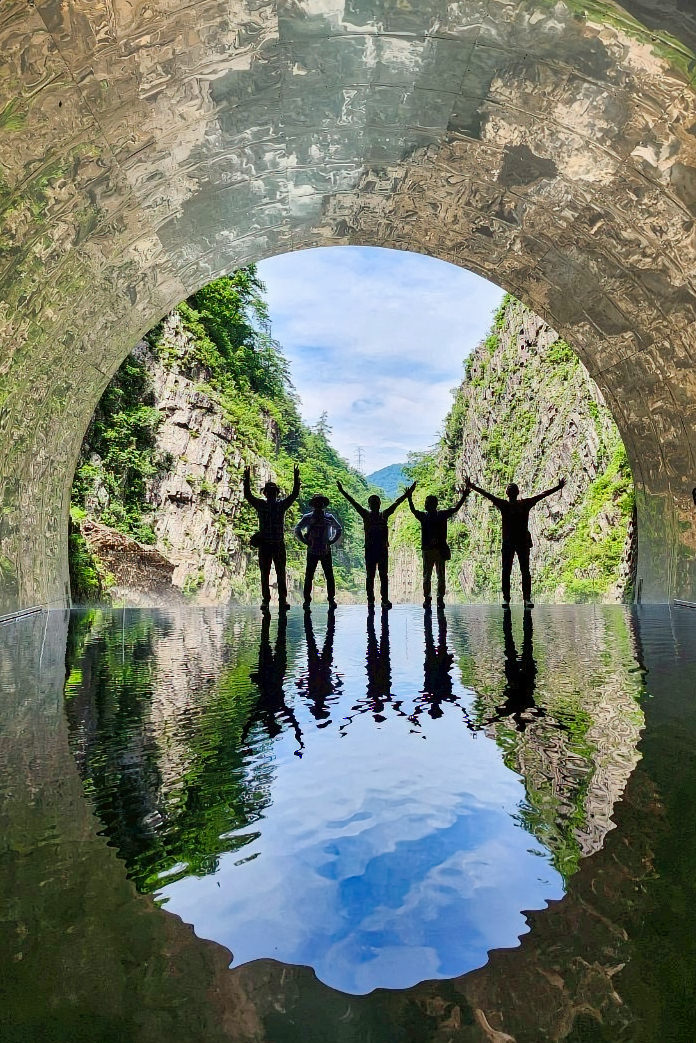 新潟県十日町市の清津峡渓谷トンネルからの眺望。