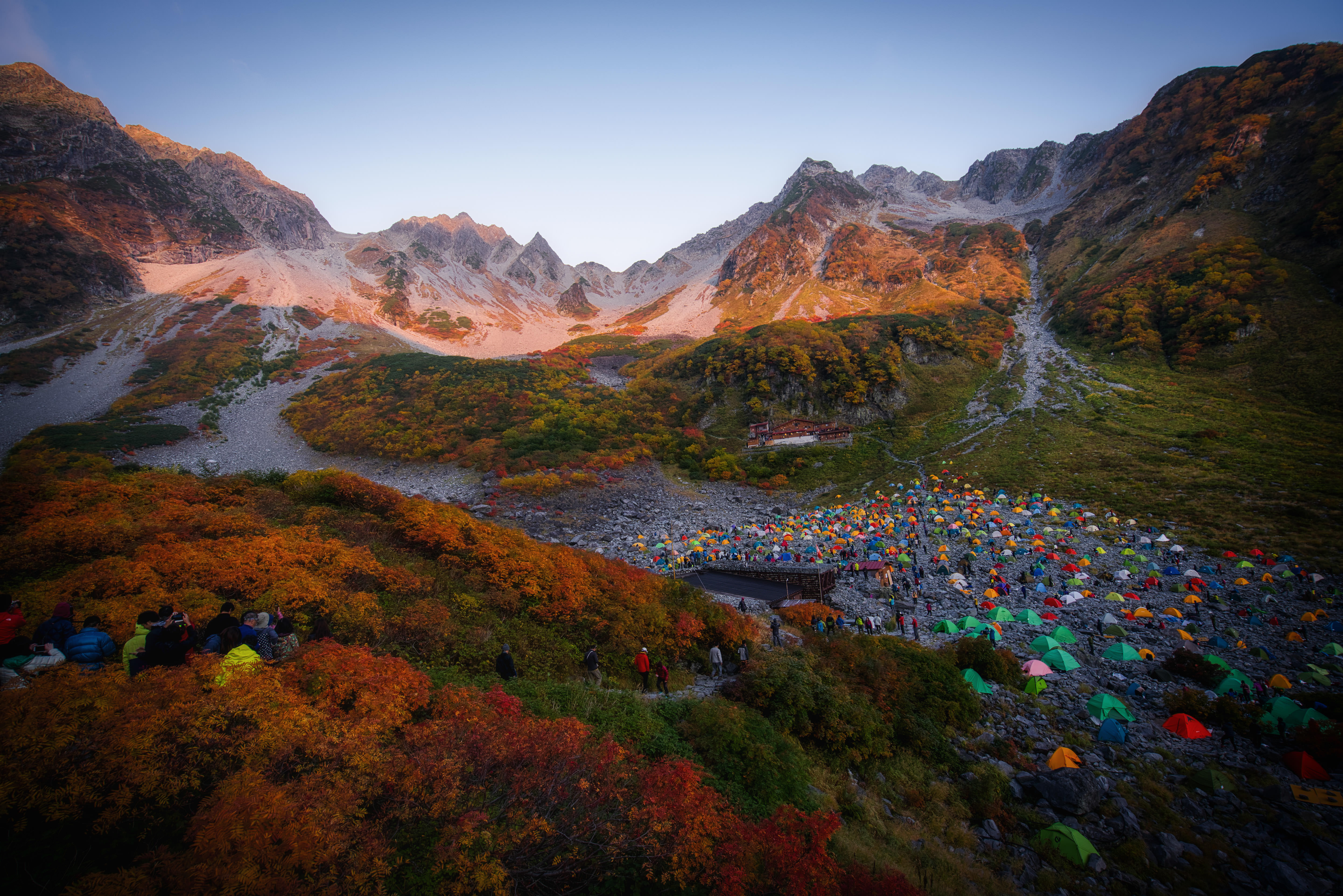 多くの人で賑わう秋の涸沢カール。