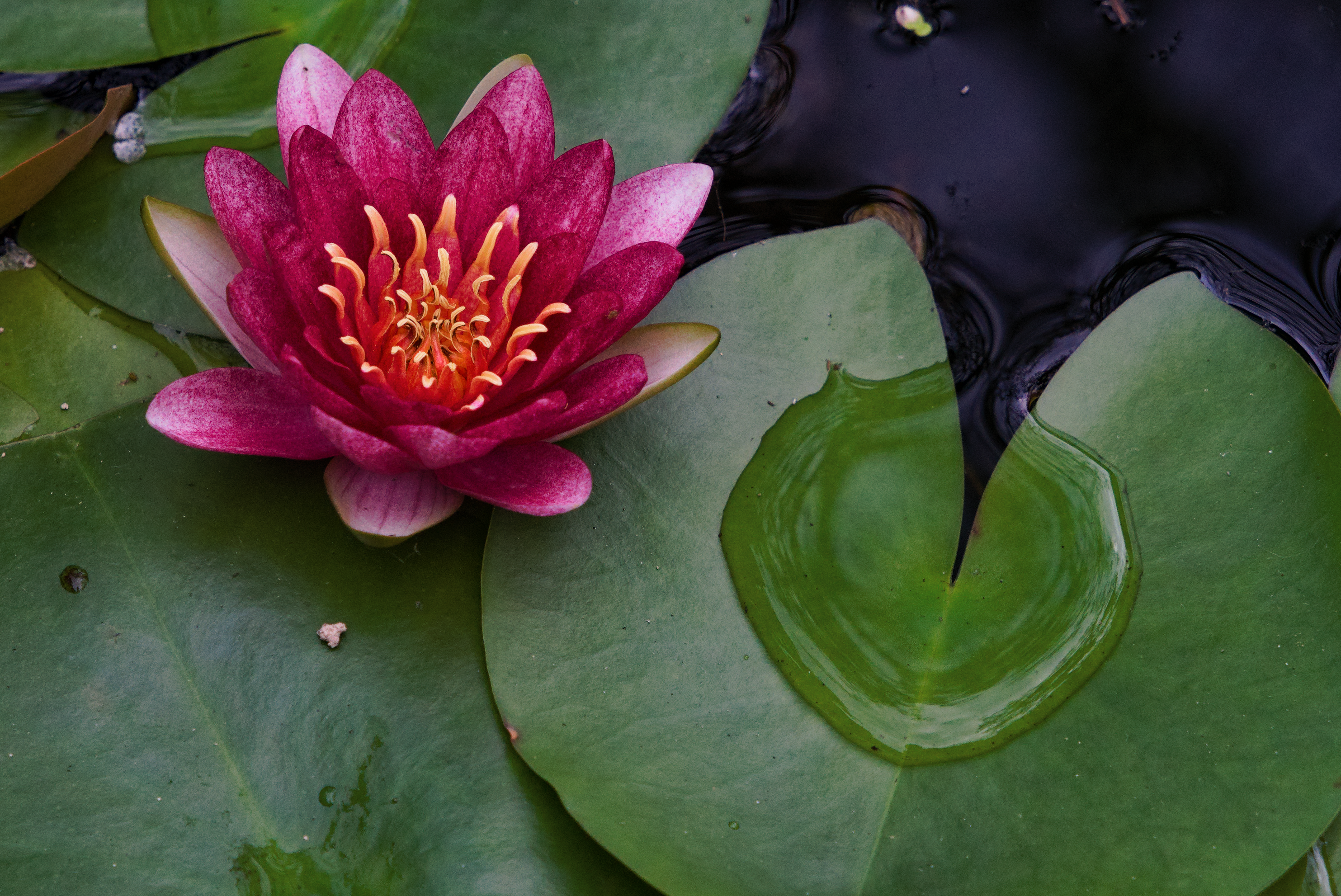 蓮の葉に乗った水が一つの塊のようで綺麗だったので、花と一緒に収めてみました。