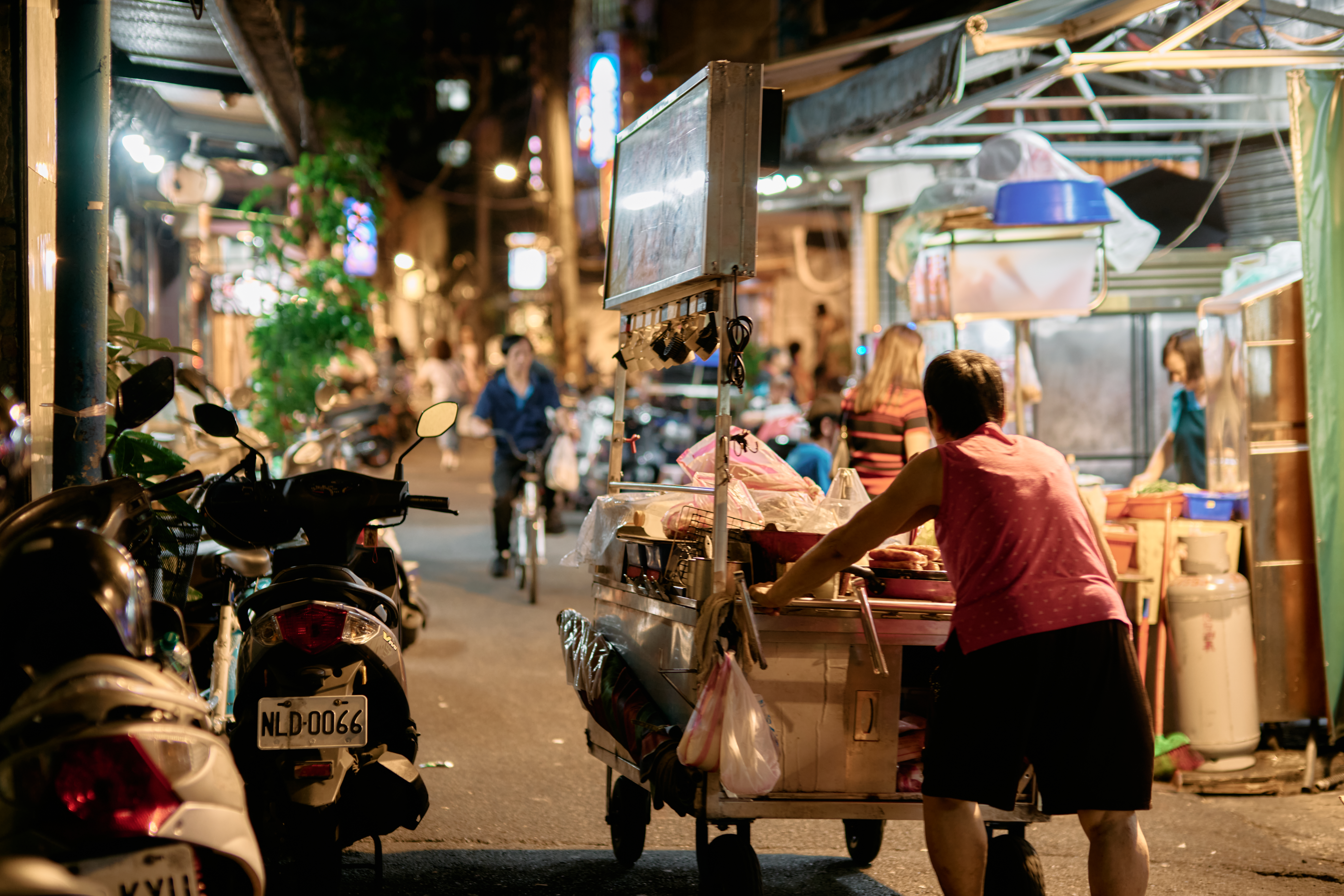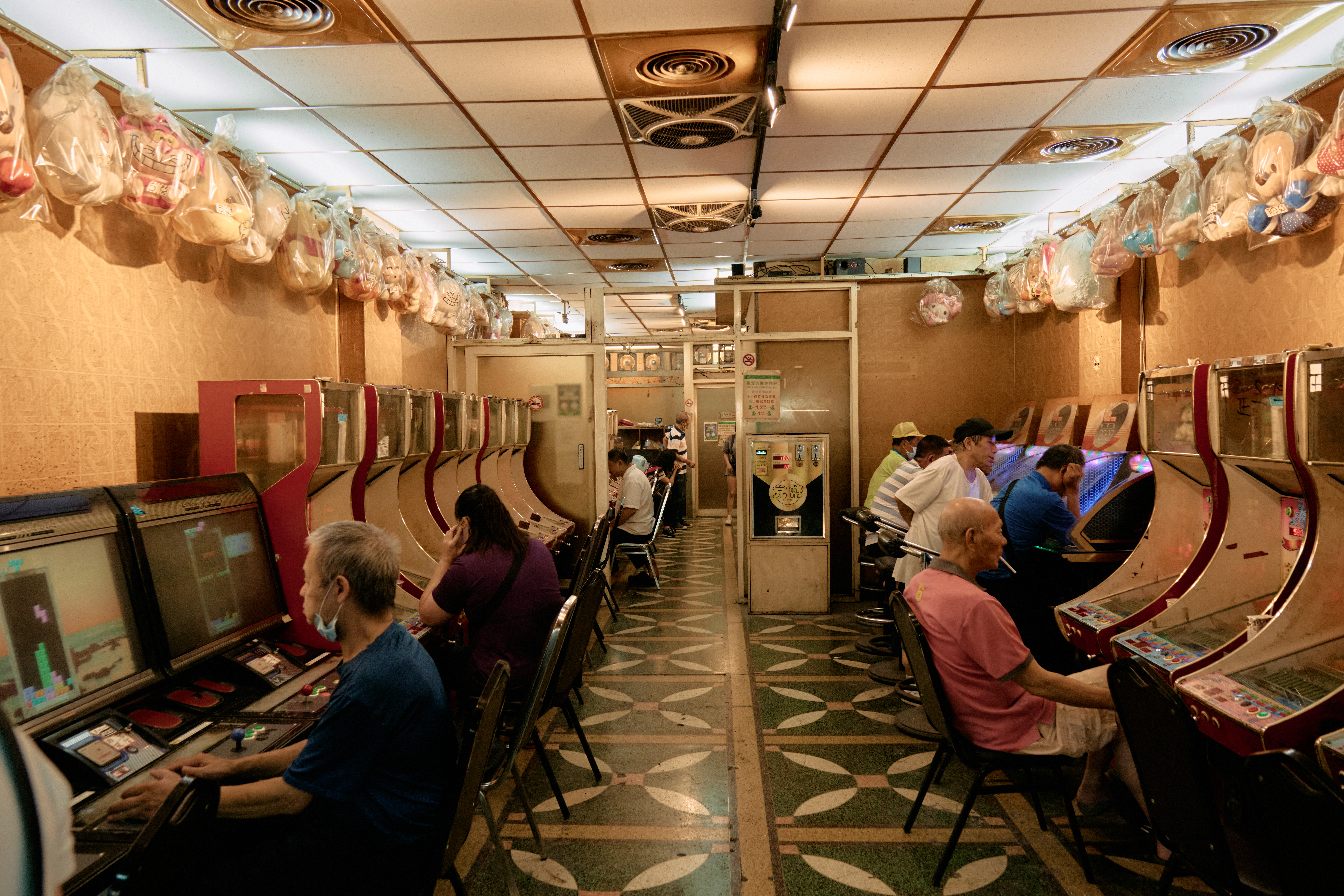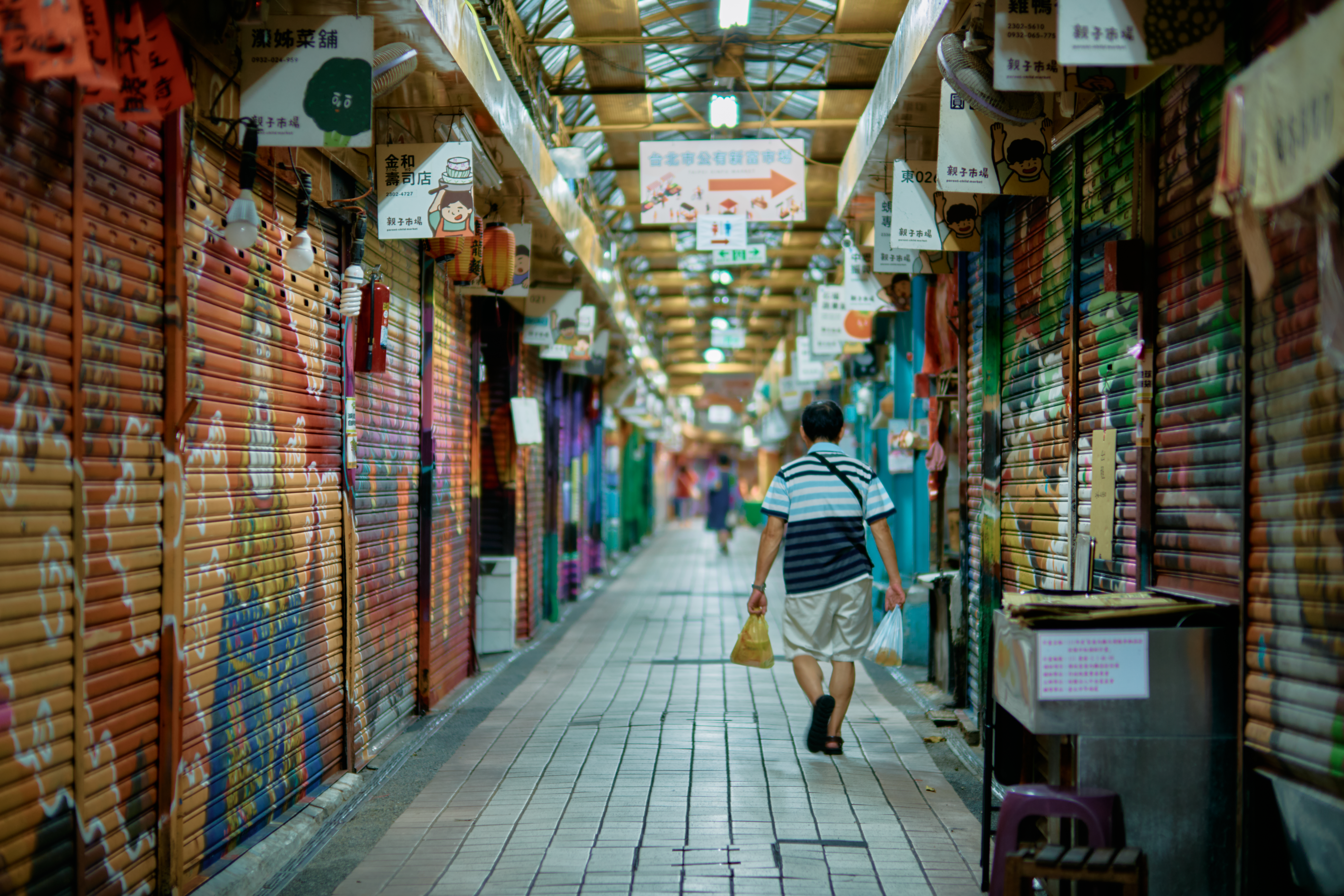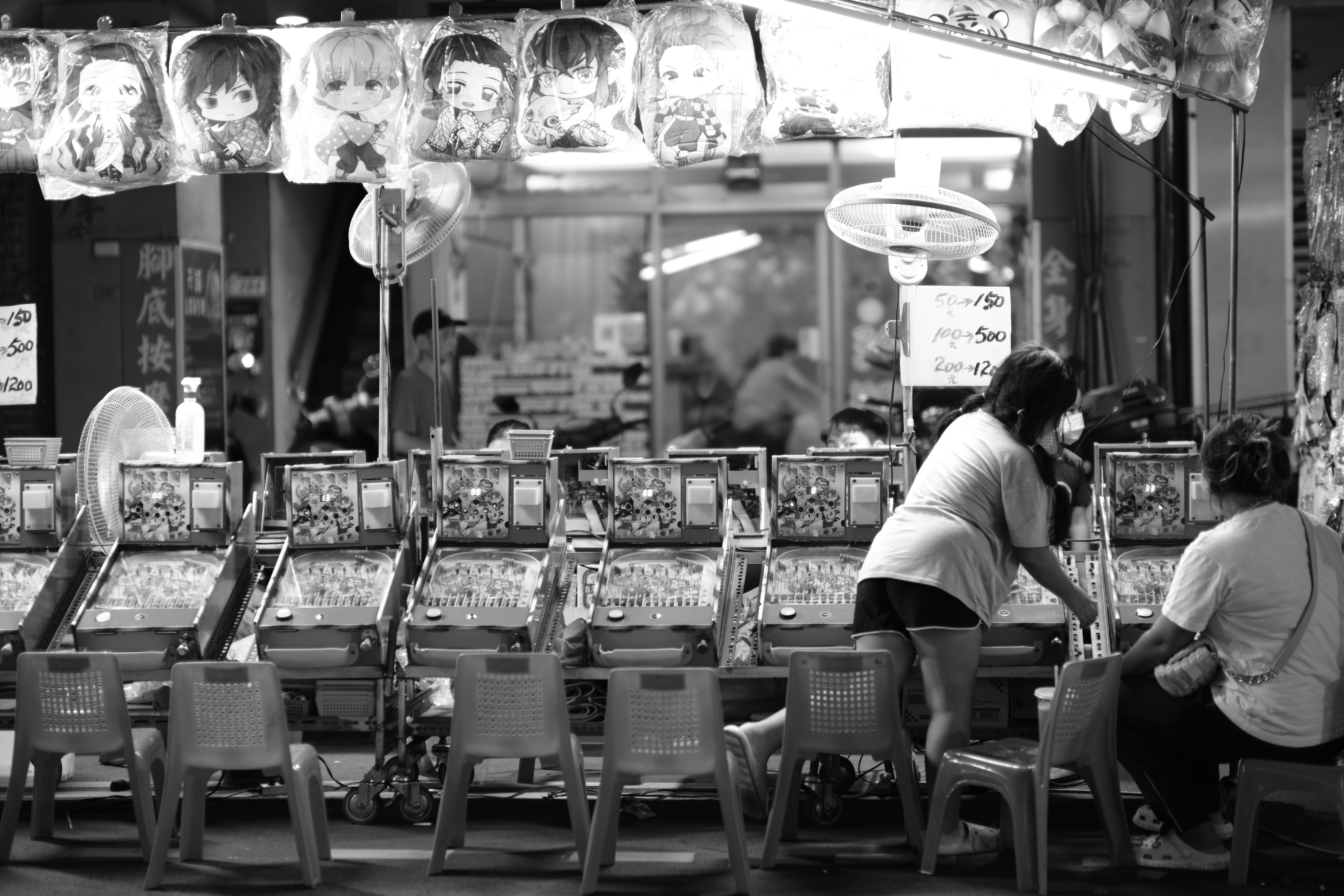 台湾の夜市のゲームコーナーで親子が遊んでいる様子を撮影した一枚。