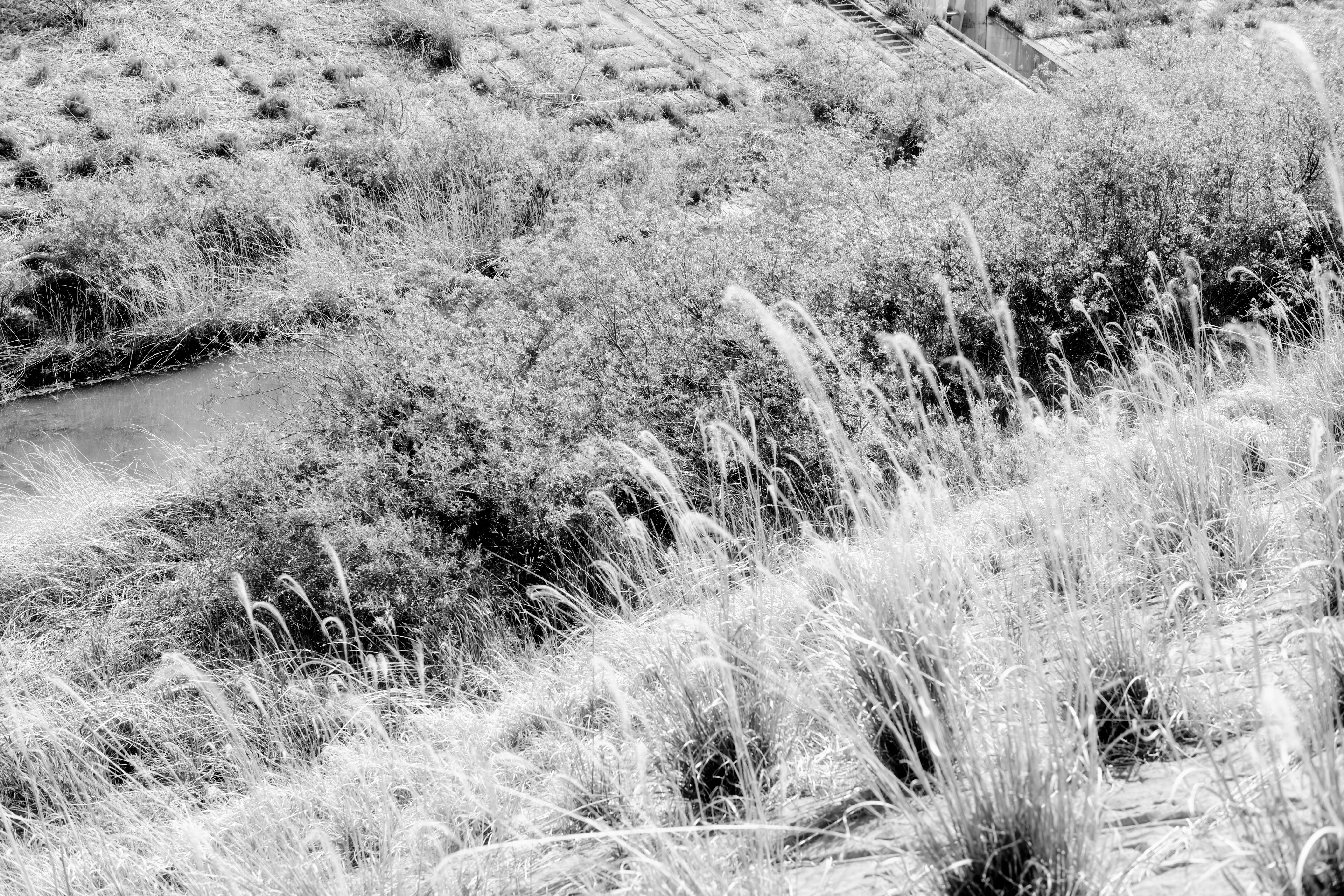 海沿いの(たぶん)かさ上げされた道から、(たぶん)元は町だったところを撮影