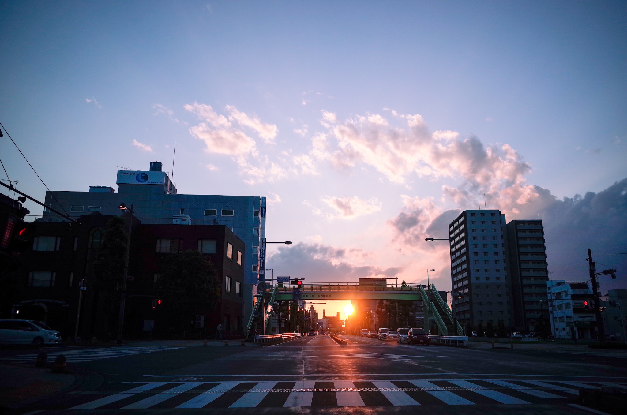 車での移動中、夕日の沈んだ空の青がとても綺麗だったので、車を停めて撮りました。