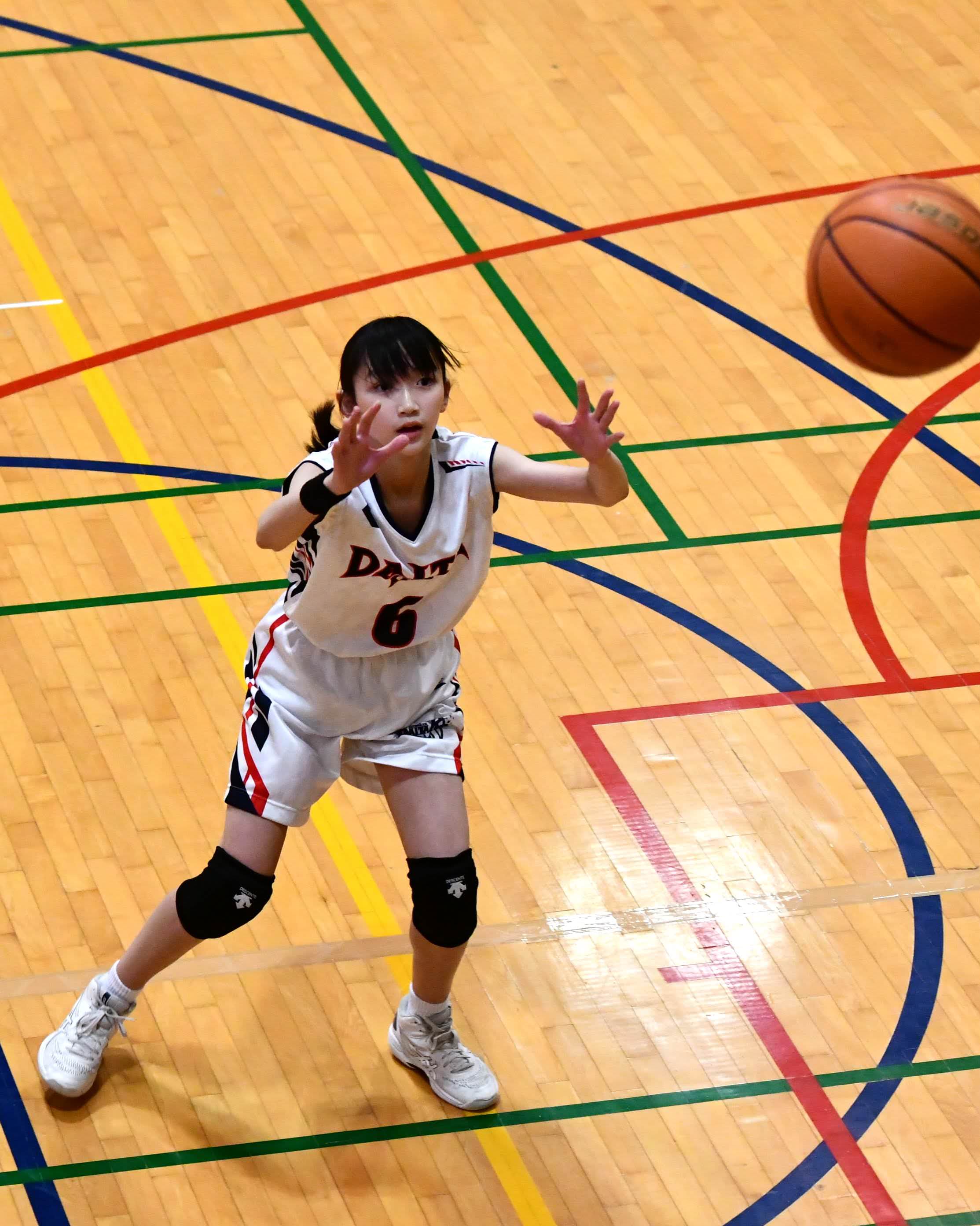 娘のバスケ(ミニバス)試合のワンシーンです。ボールをキャッチした瞬間、オフェンスに切り替わるチャンスが目の前にあるワクワクが少しだけ溢れた表情が写せたかなと思います。