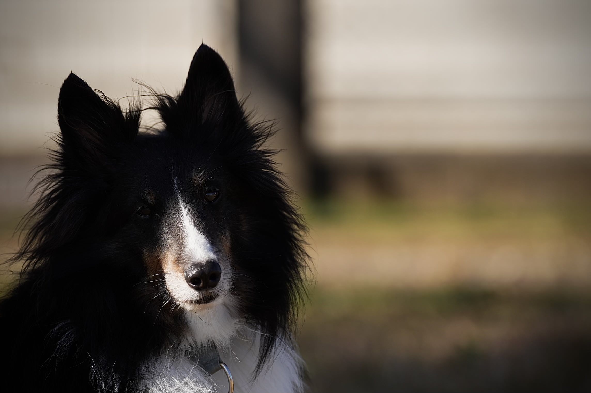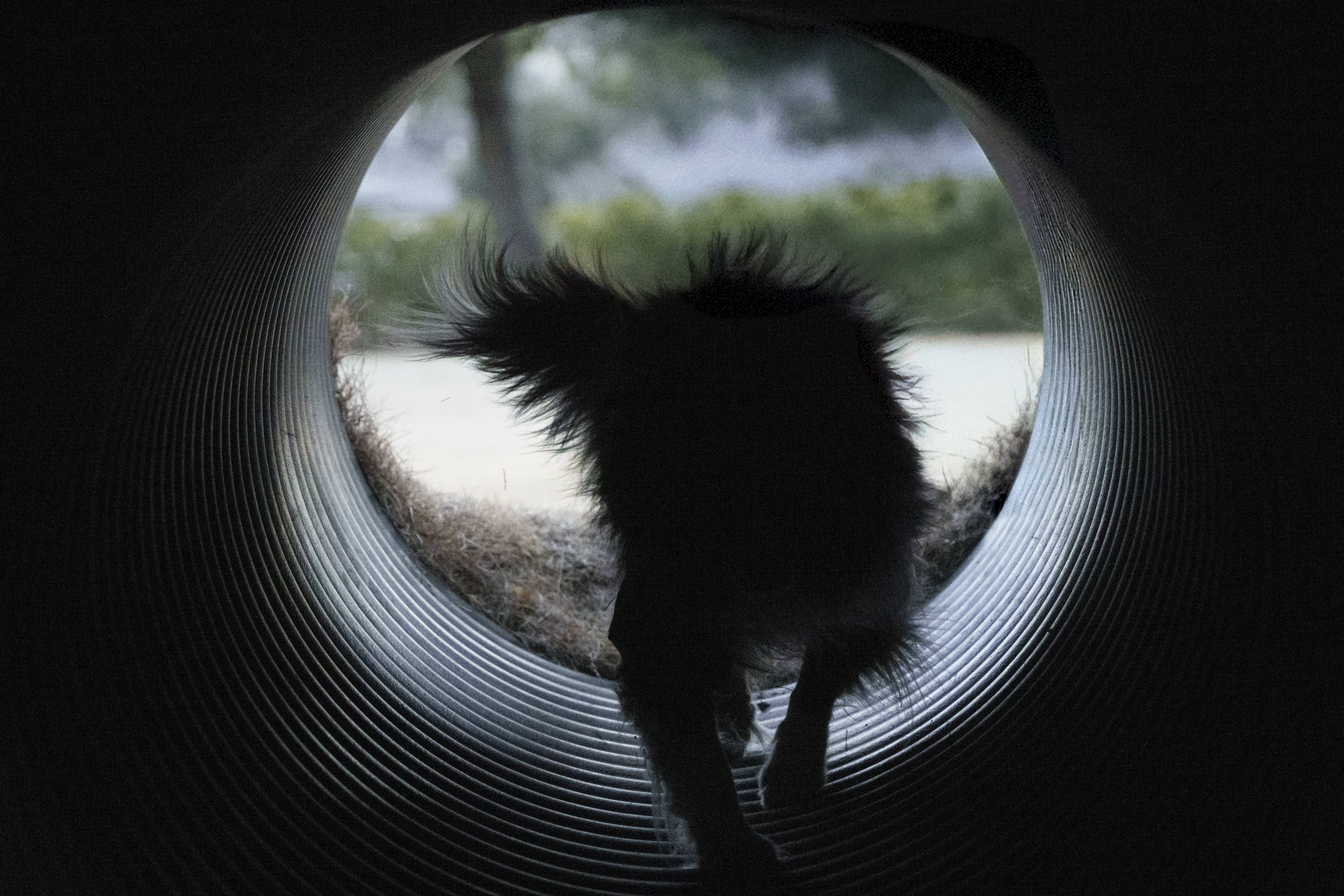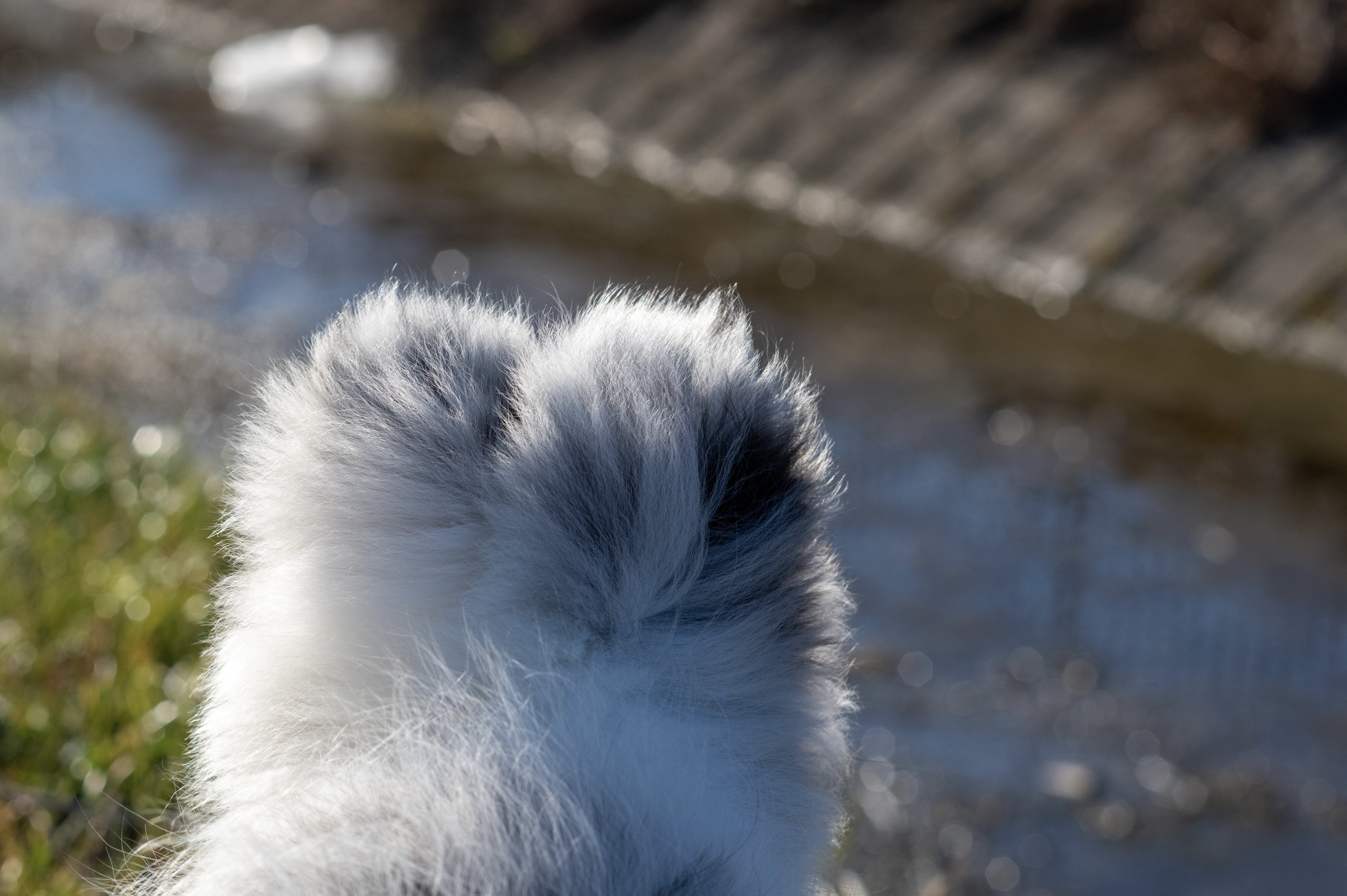 近所にて。散歩もまだ慣れていない子犬時代。川を不思議そうにじっと見つめていました。