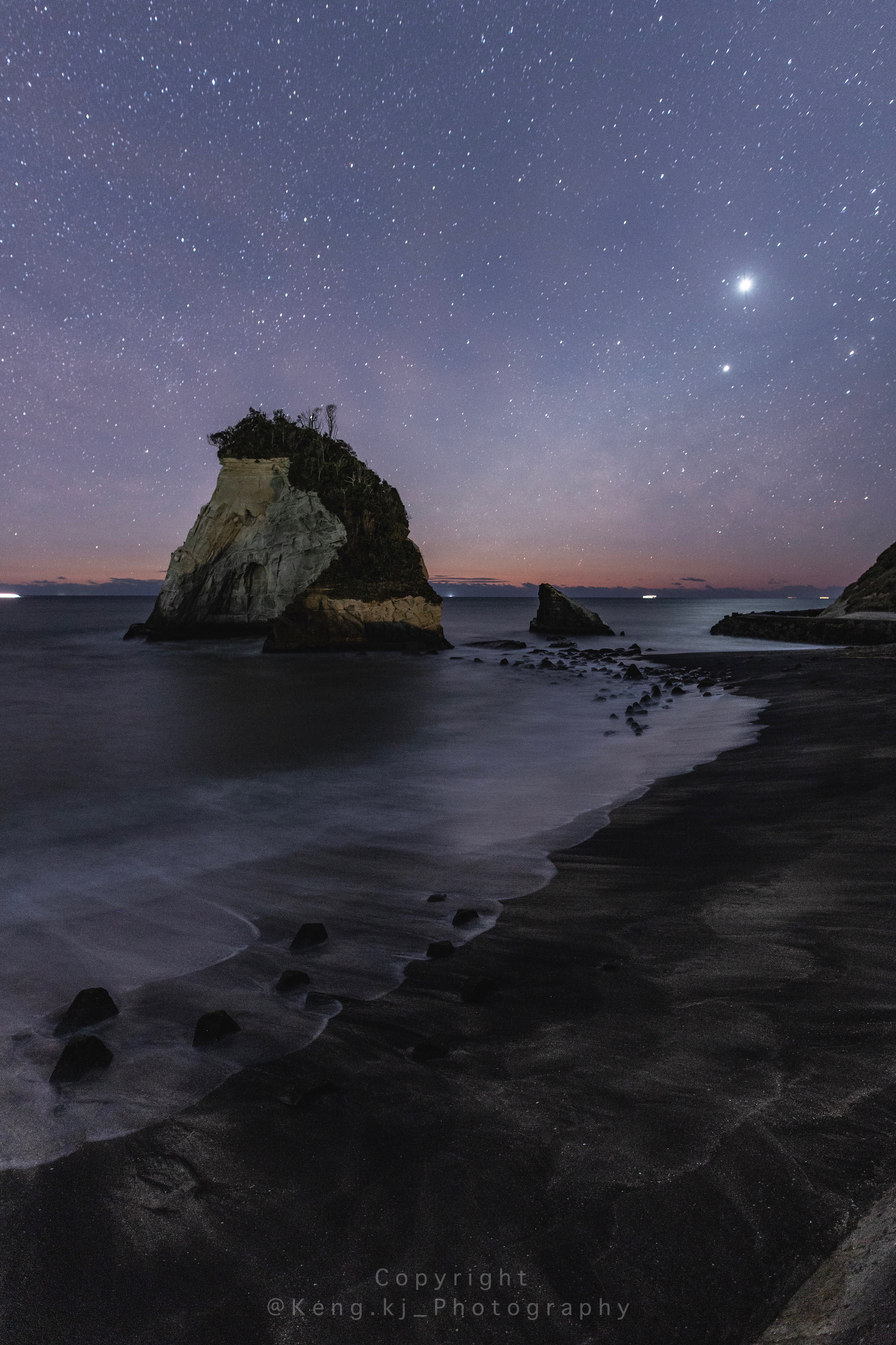 天の川と小さな渓谷と赤い橋