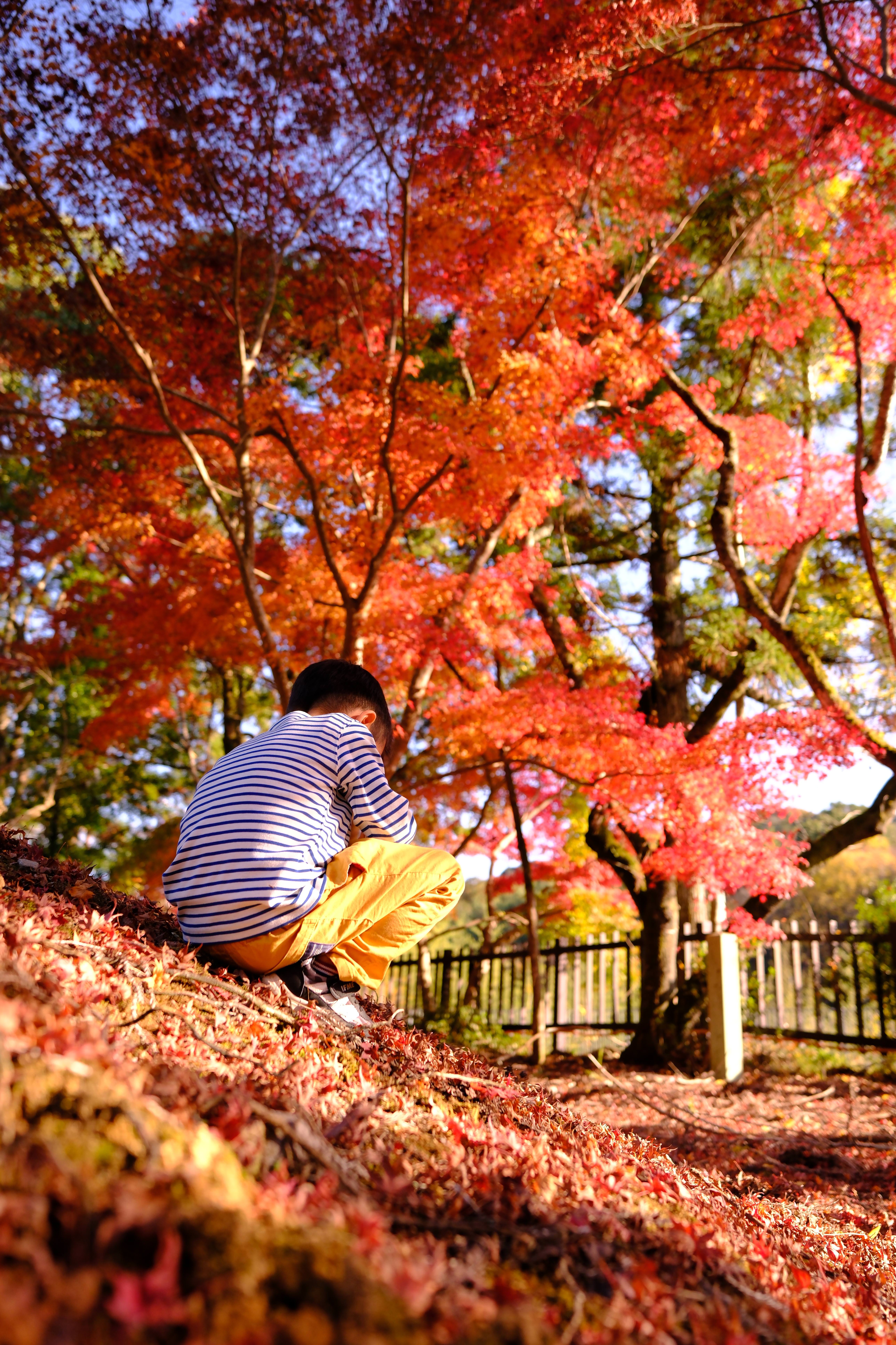 落ち葉も紅葉もとても見事だったのですが、息子は目もくれず虫を探していました。
