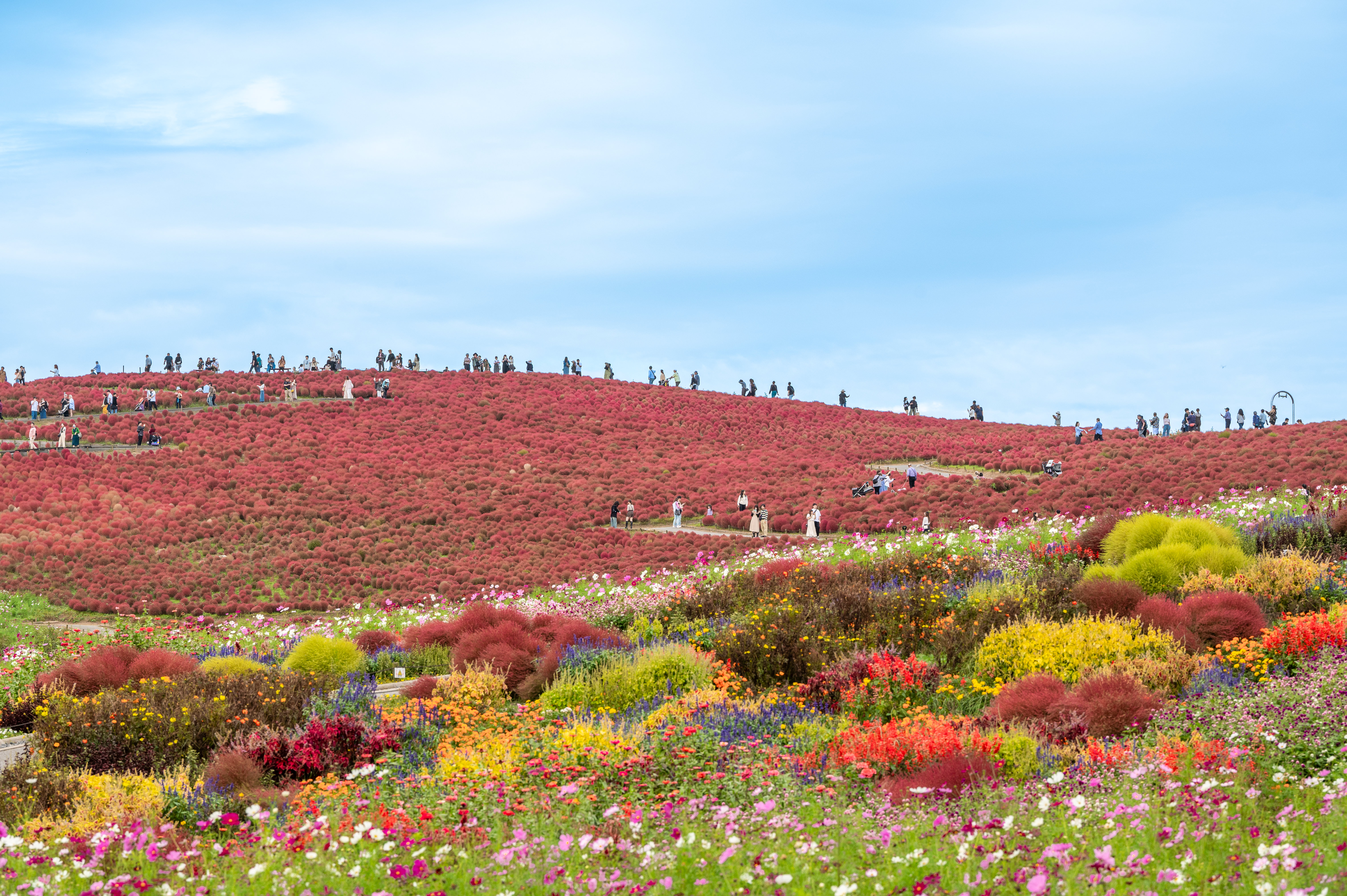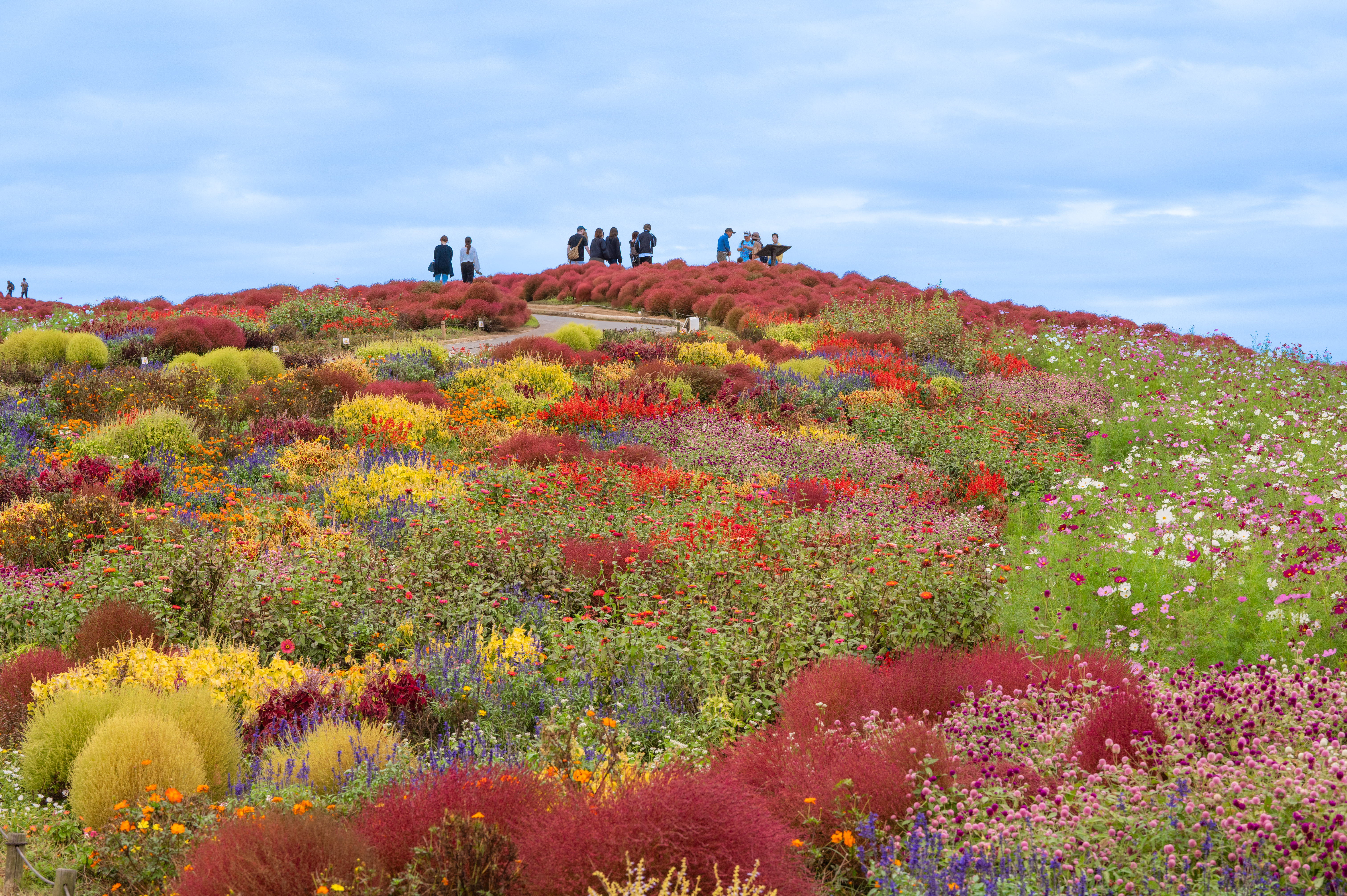 少し前になりますが、10/17に国営ひたち海浜公園で撮ったものです。ひたち海浜公園と言えばコキアとかネモフィラがドーンと植えられているのですが、今年から手前のいろんな花の綺麗な花畑が出来て、ちょっと素敵な画で撮れるようになりました。