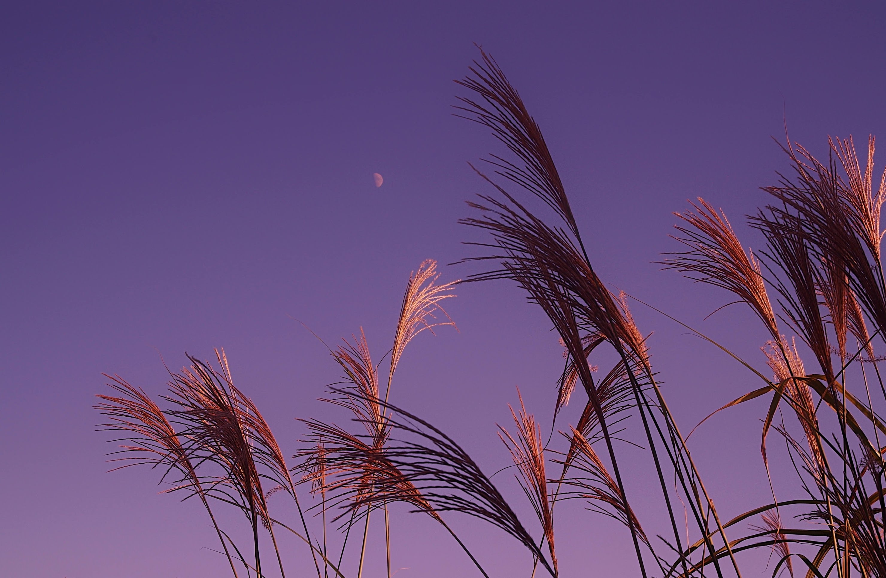 ススキの夕暮れ時、奇麗なお月様を撮影しました