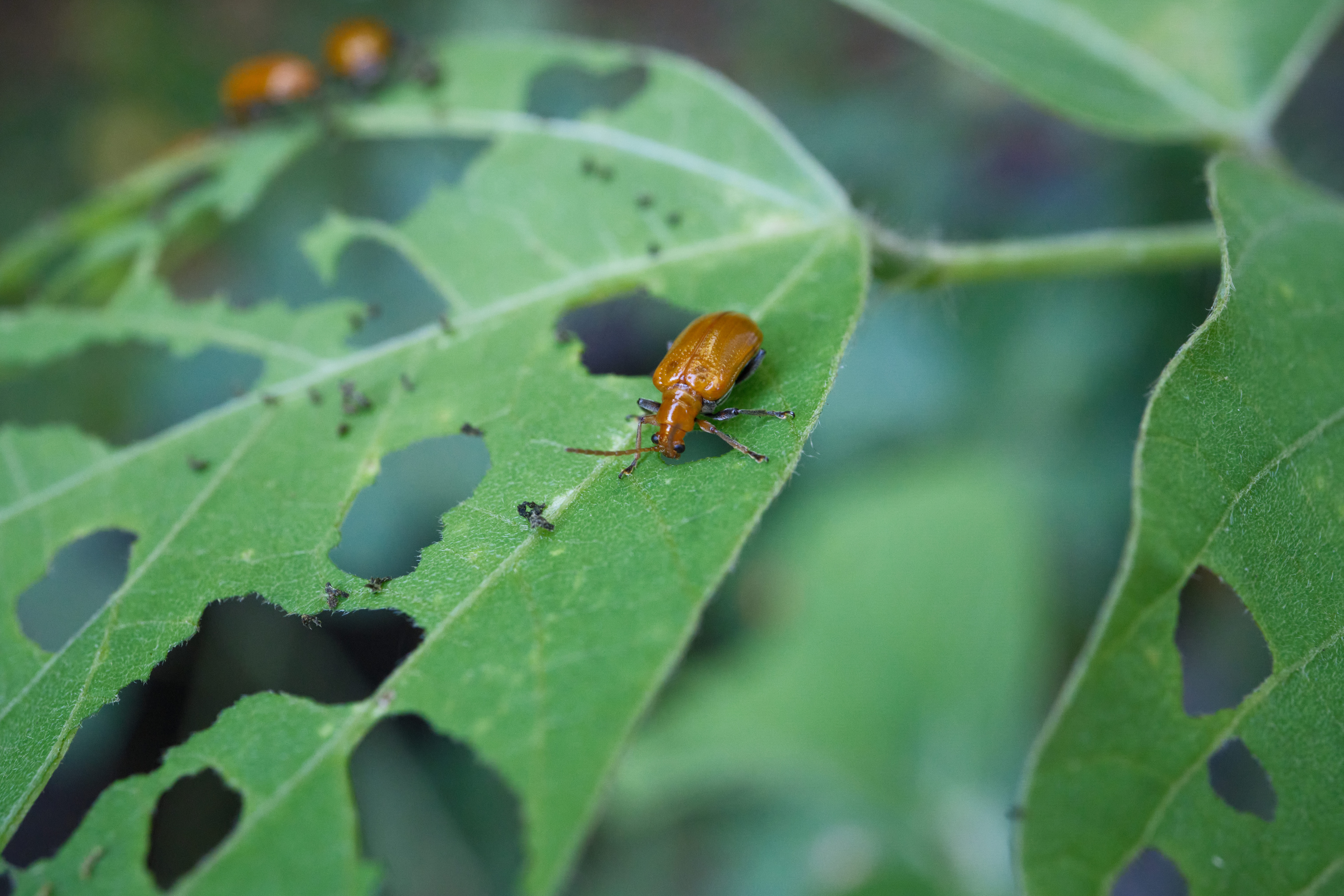 葛(くず)を食べる首細の葉虫(外来種)