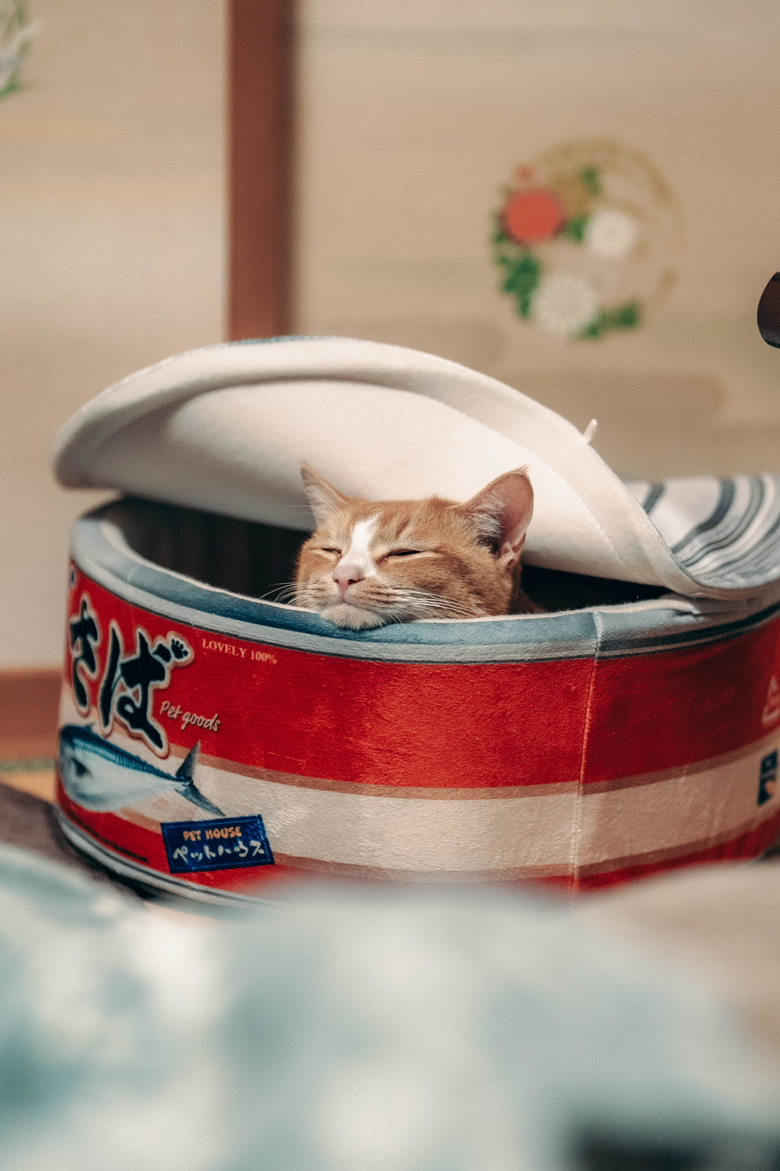 寒いこの時期に猫だって温まりたいということで、サバ缶のぬいぐるみを用意したら自分から入っていきました