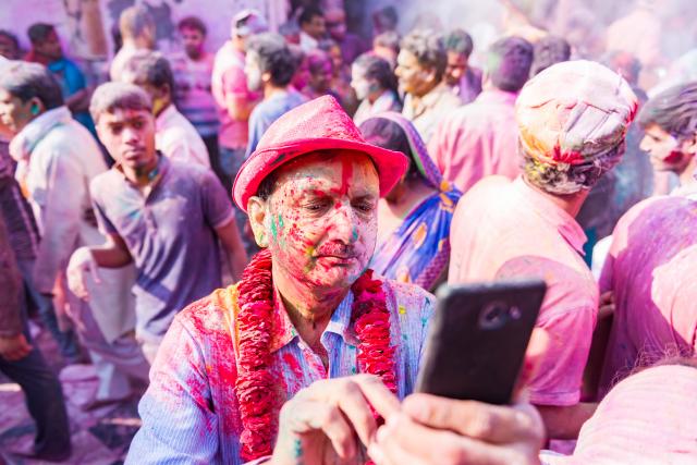 インドで有名なホーリーと呼ばれる色粉を投げ合う祭りに参加した。