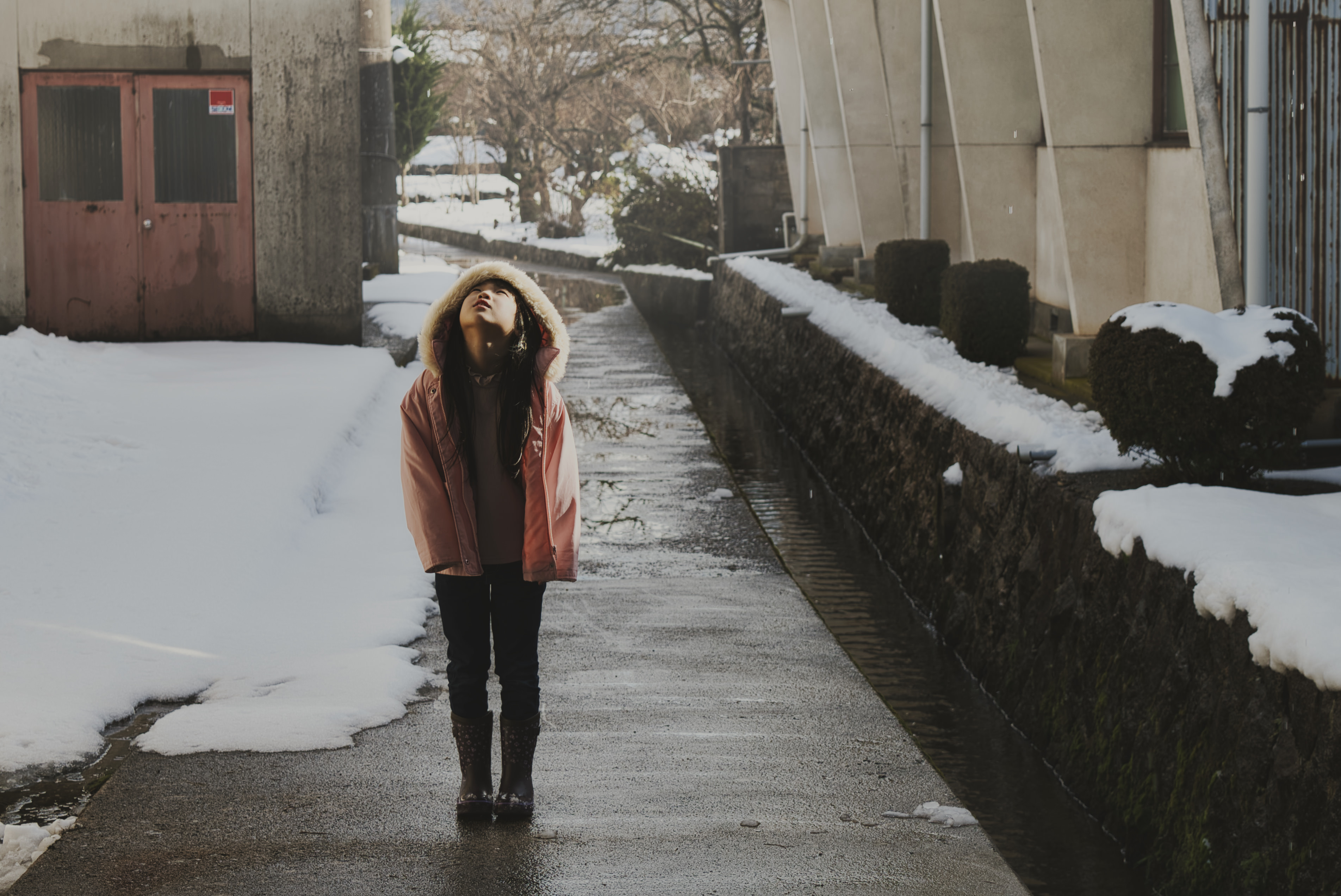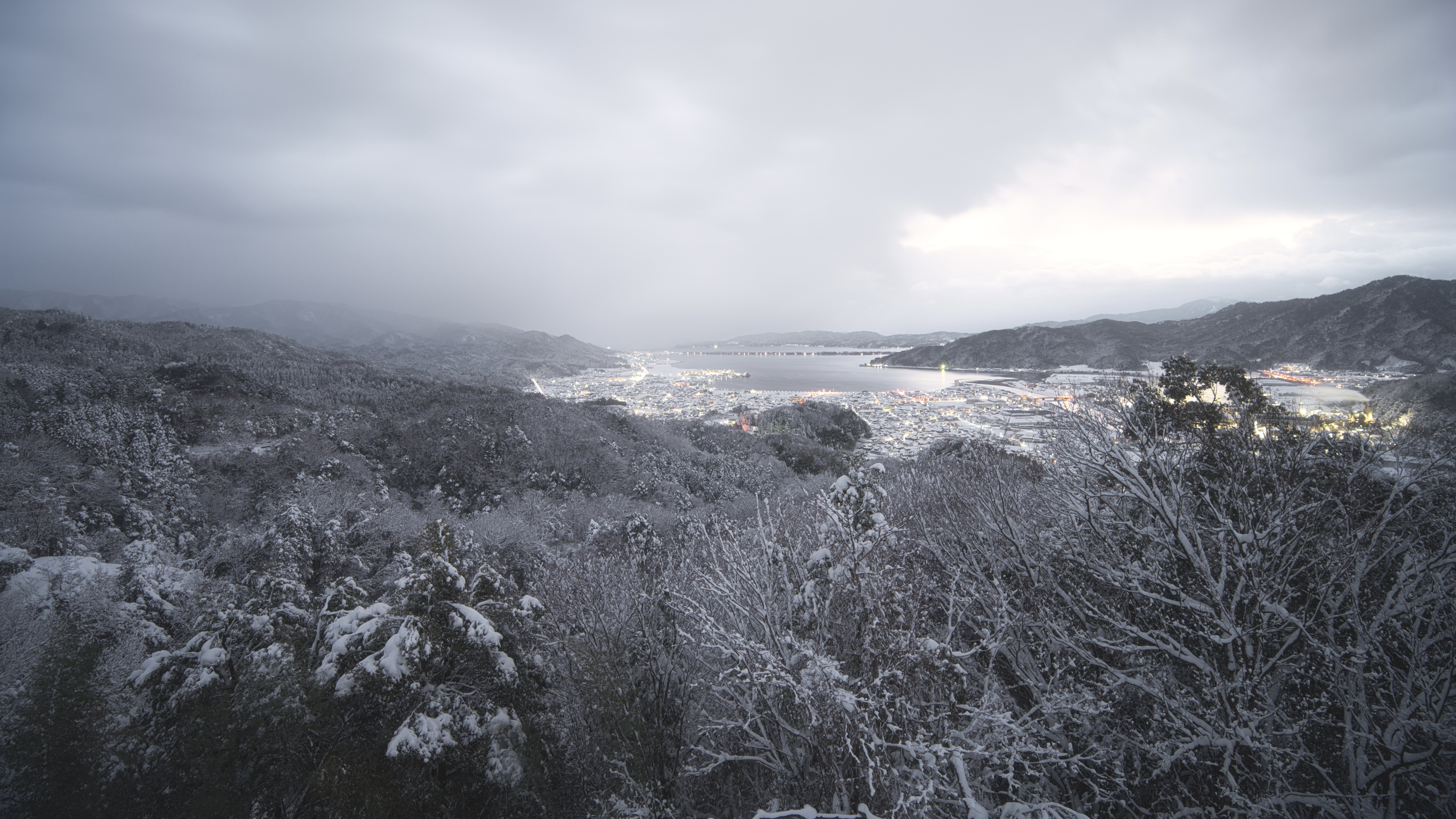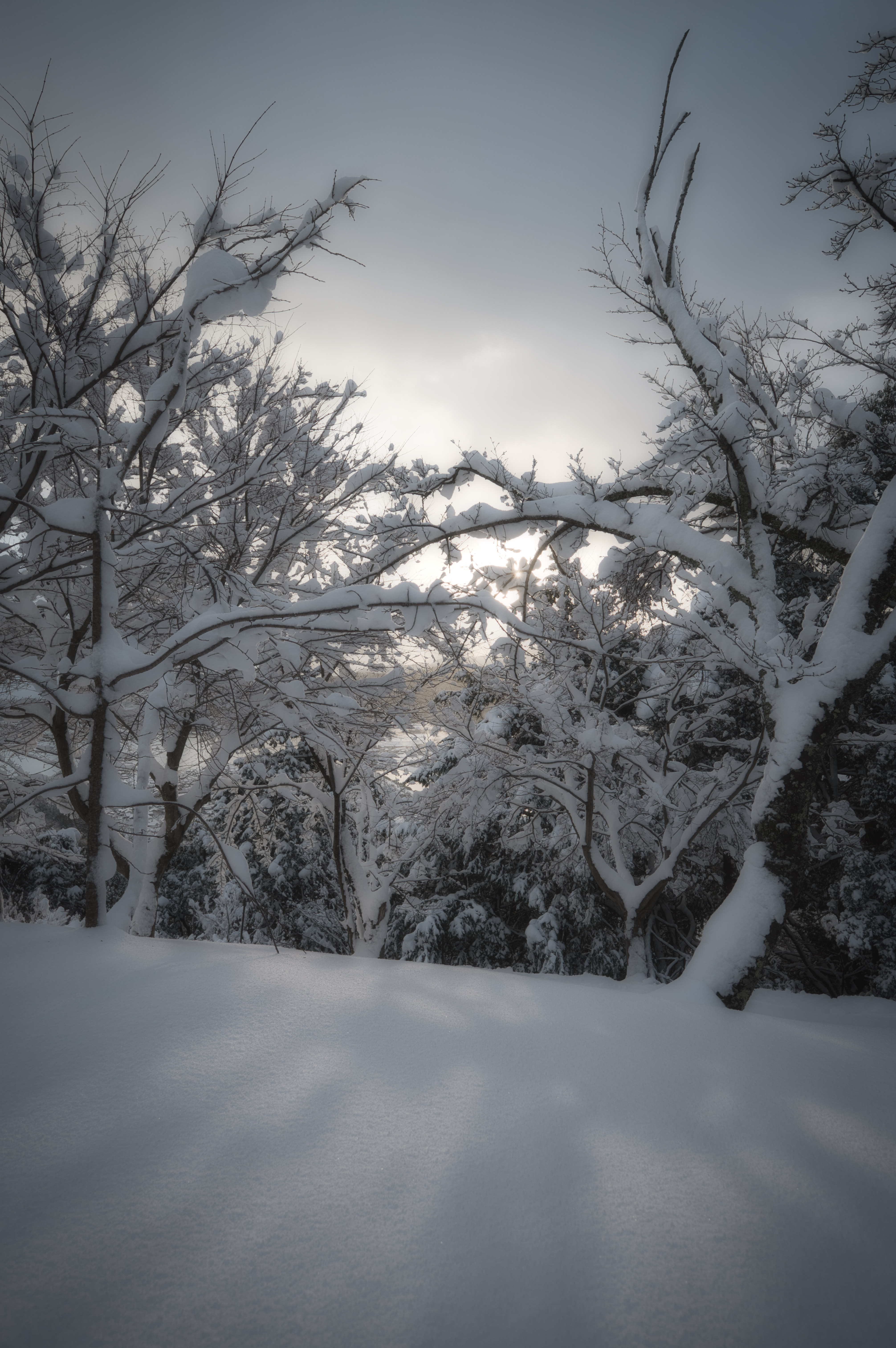 わずかな隙間からさした朝日が雪面と木々に積もった雪を照らす様子がとても美しかったです。