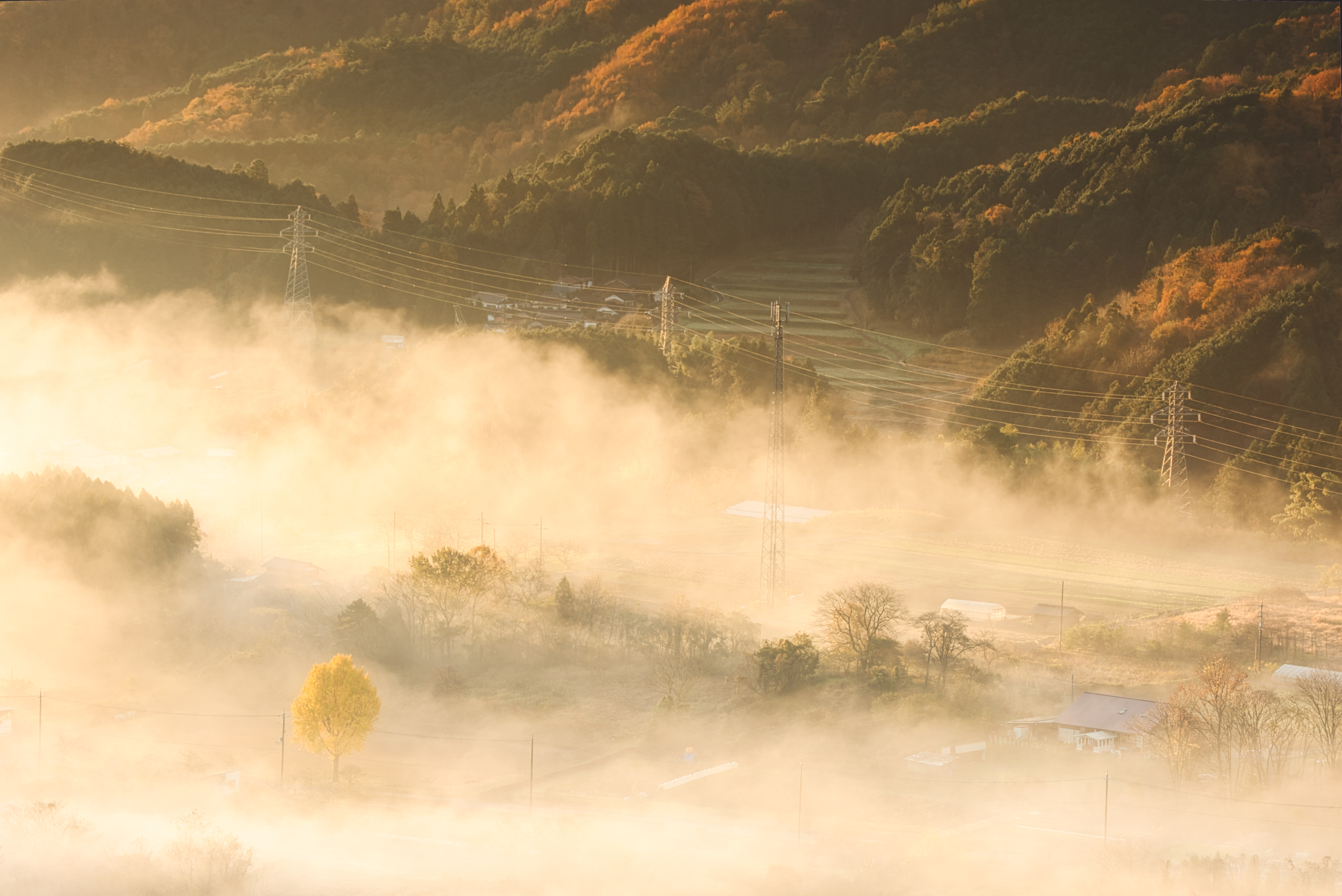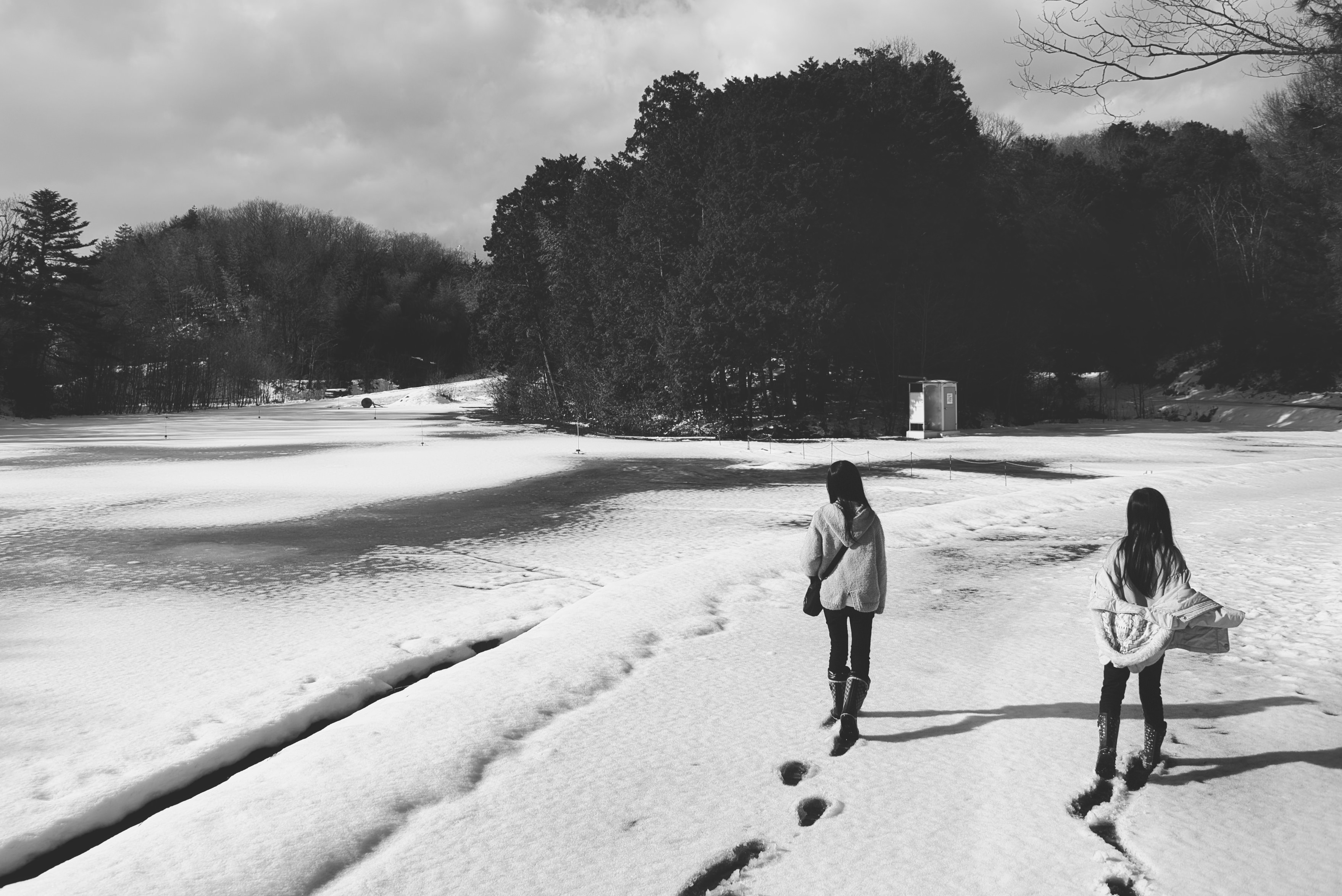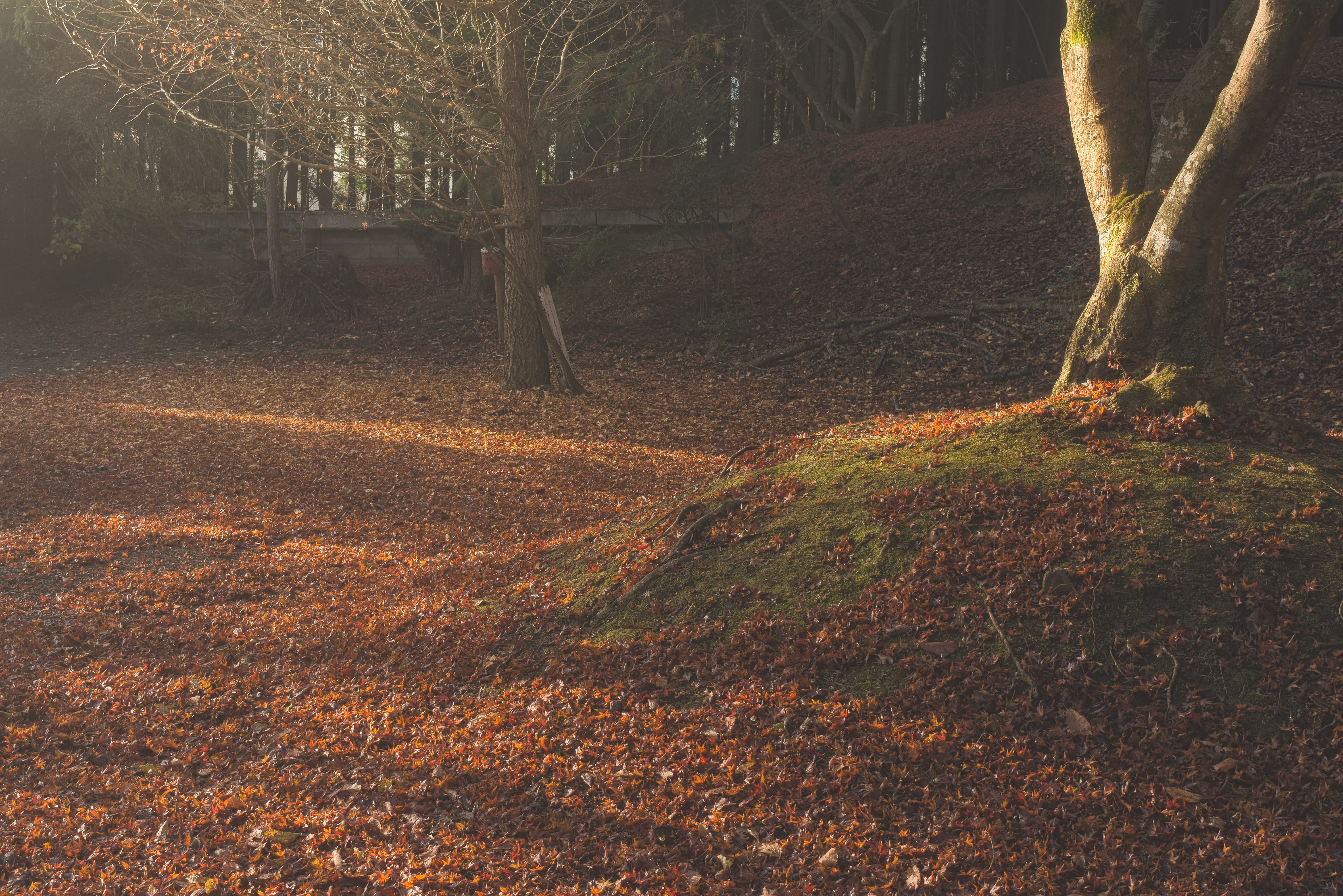 わずかな隙間からさした朝日が雪面と木々に積もった雪を照らす様子がとても美しかったです。