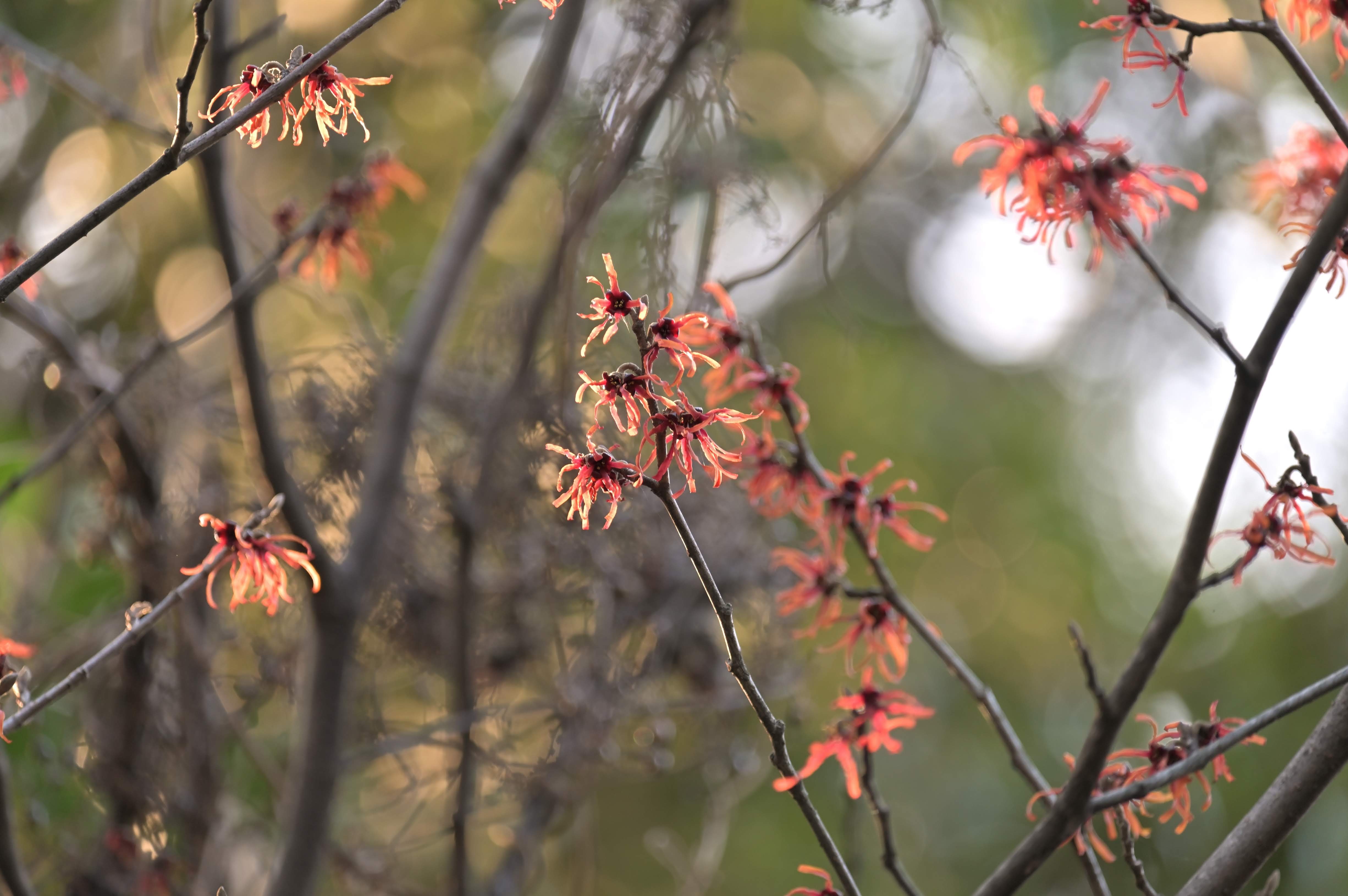 夕日を浴びるマンサク