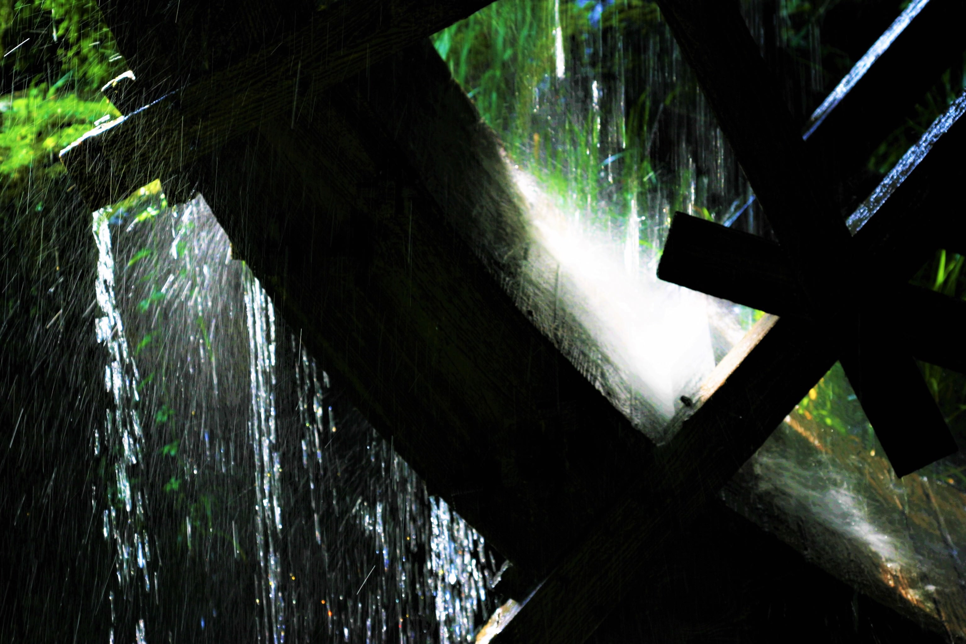 水車小屋で清らかな水がはじけるように踊っています