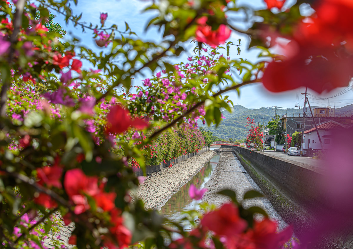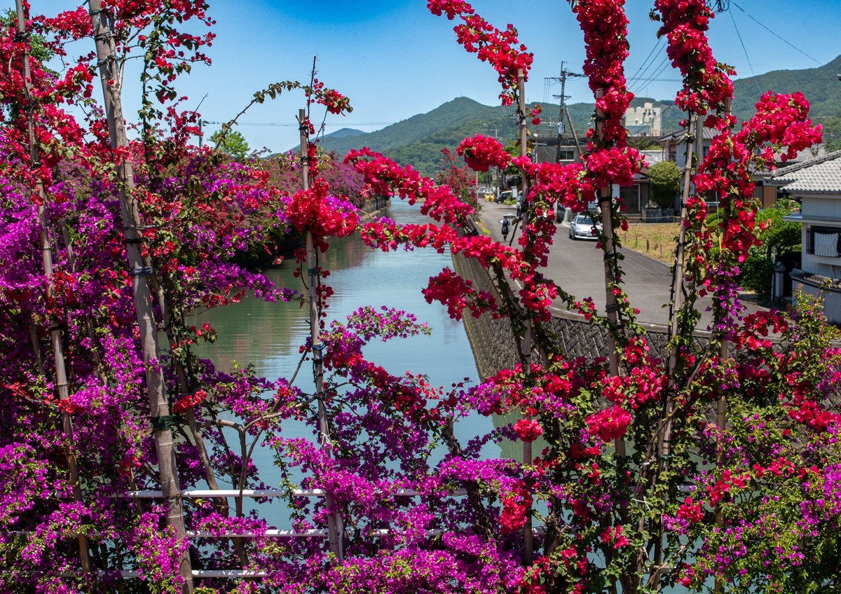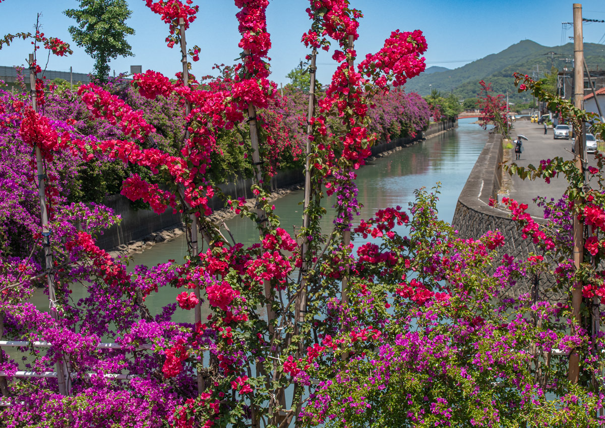 熊本県八代市日奈久下西町 「運河沿いのブーゲンビリアロード」