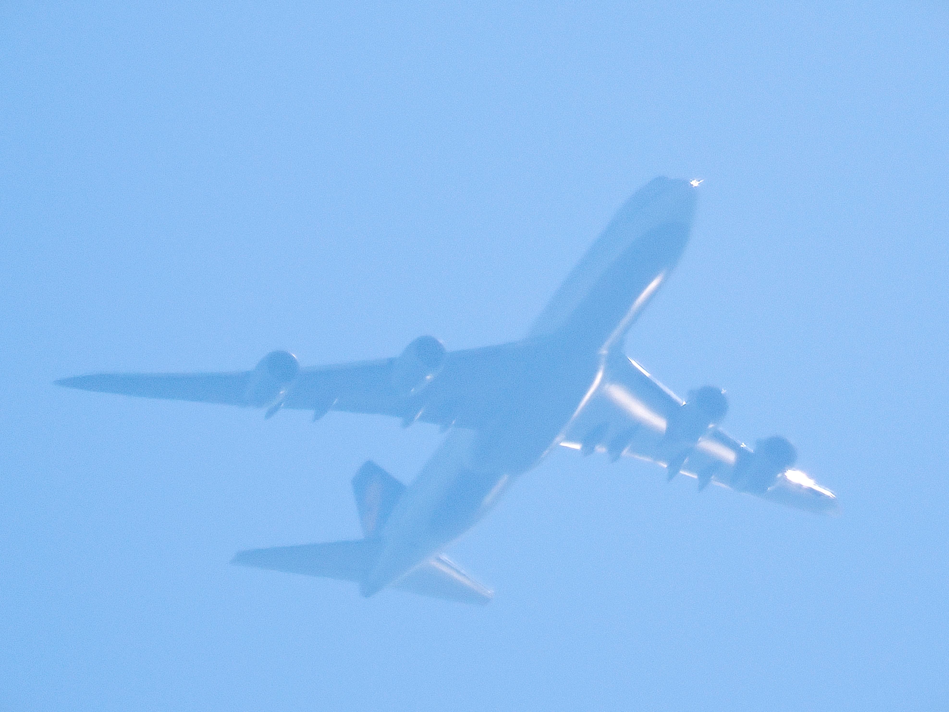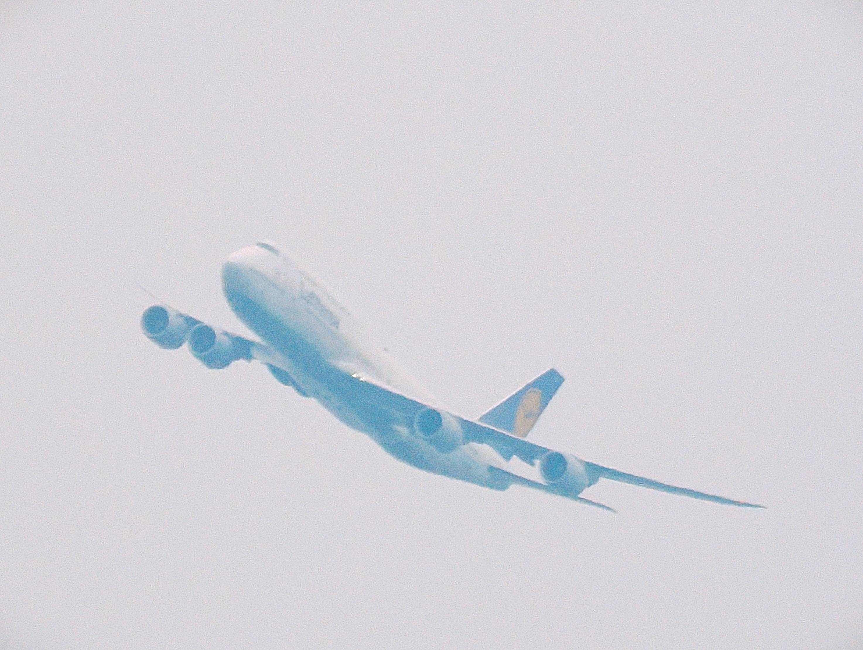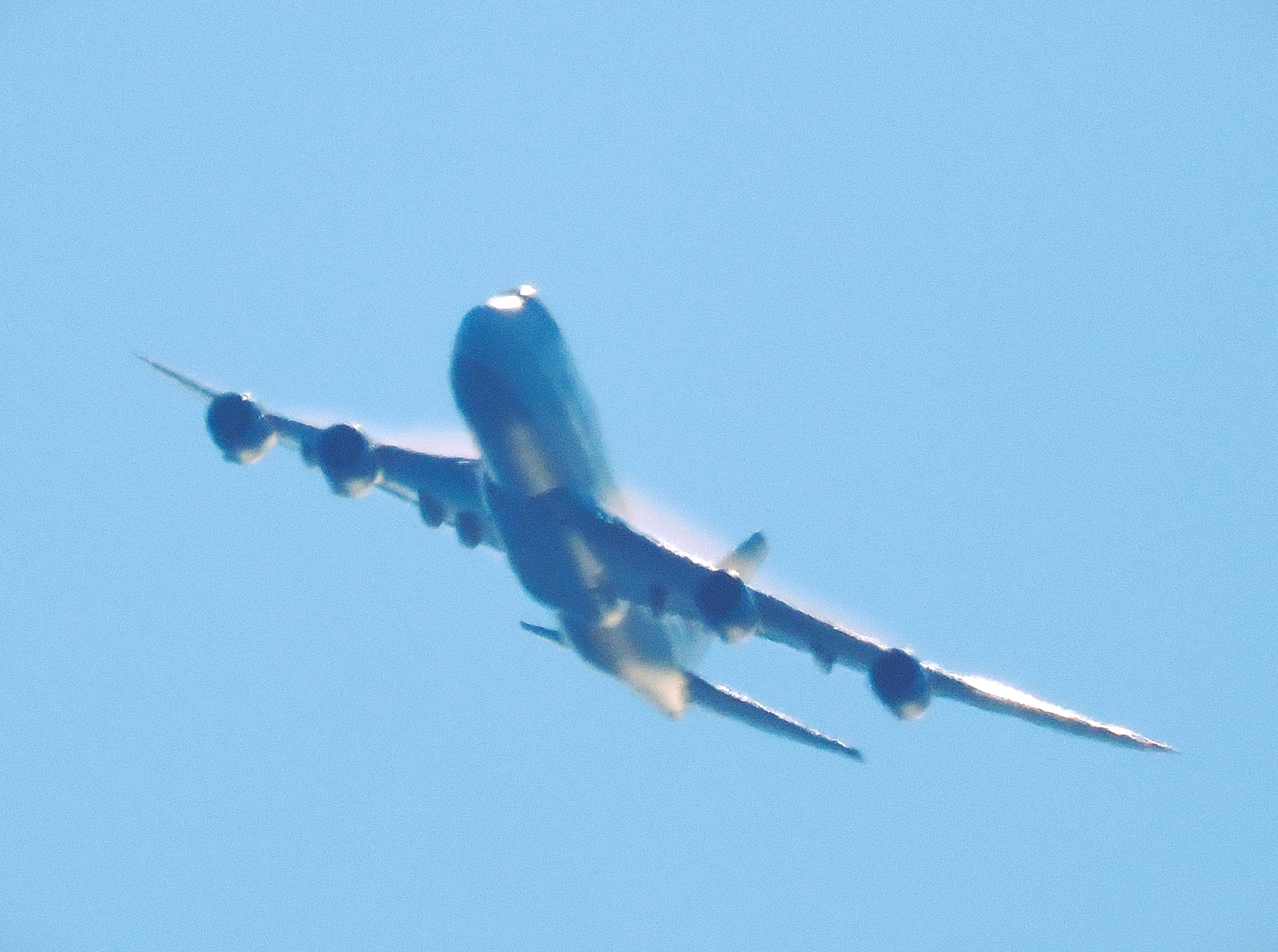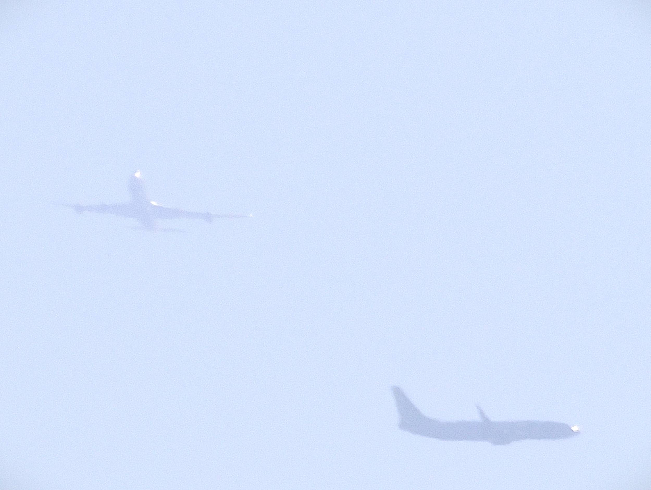 三日月の前を小さな旅客機が横切りました。