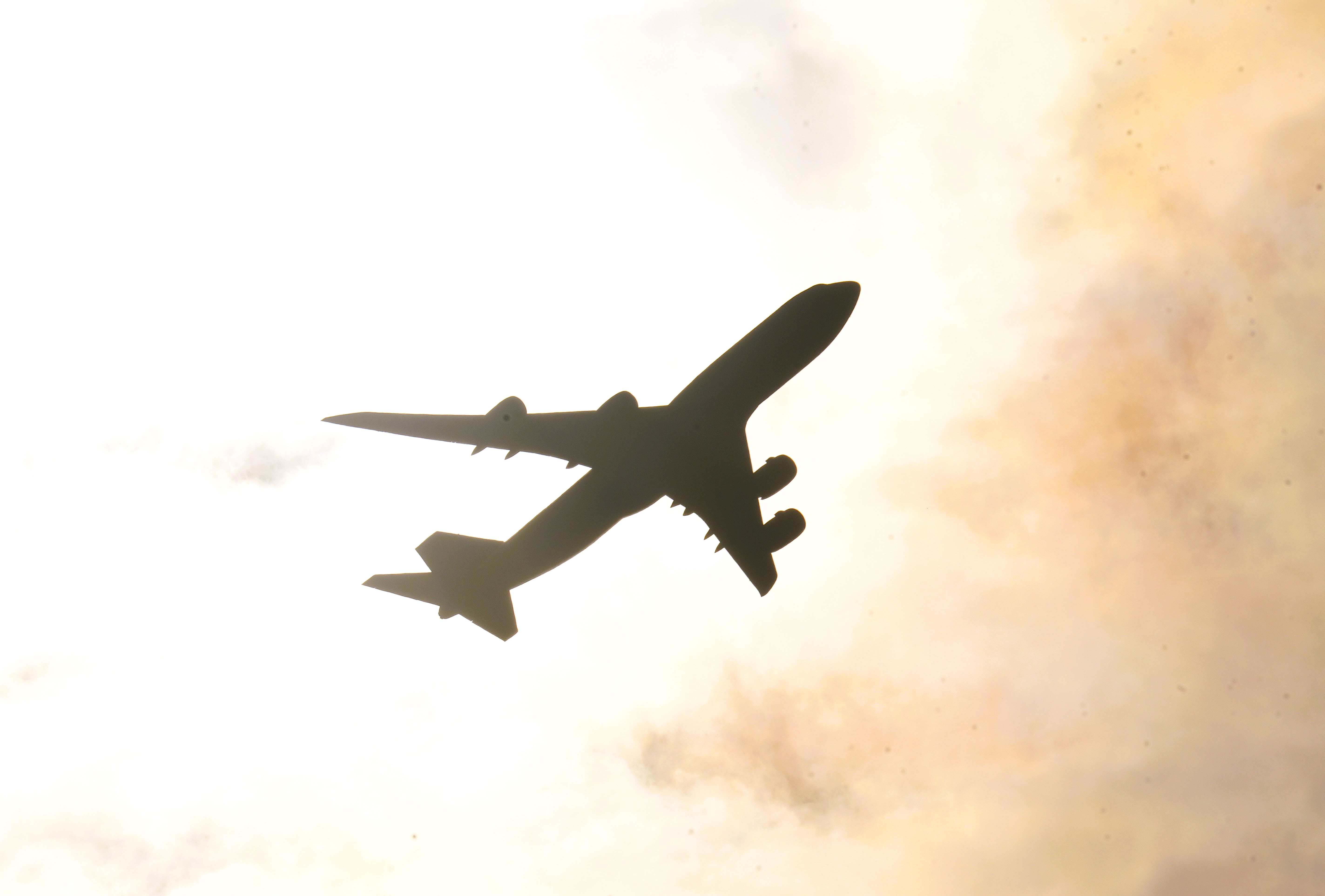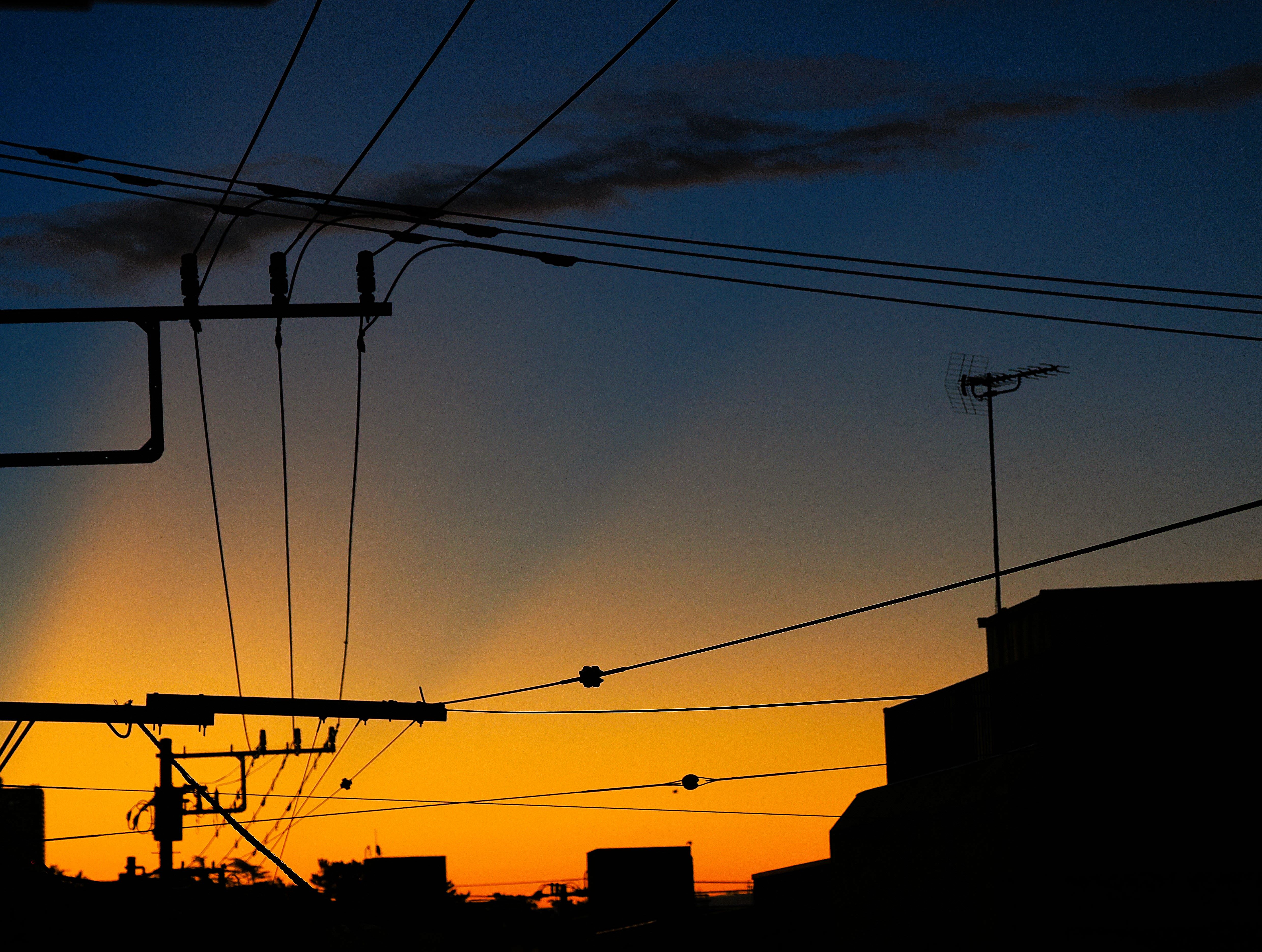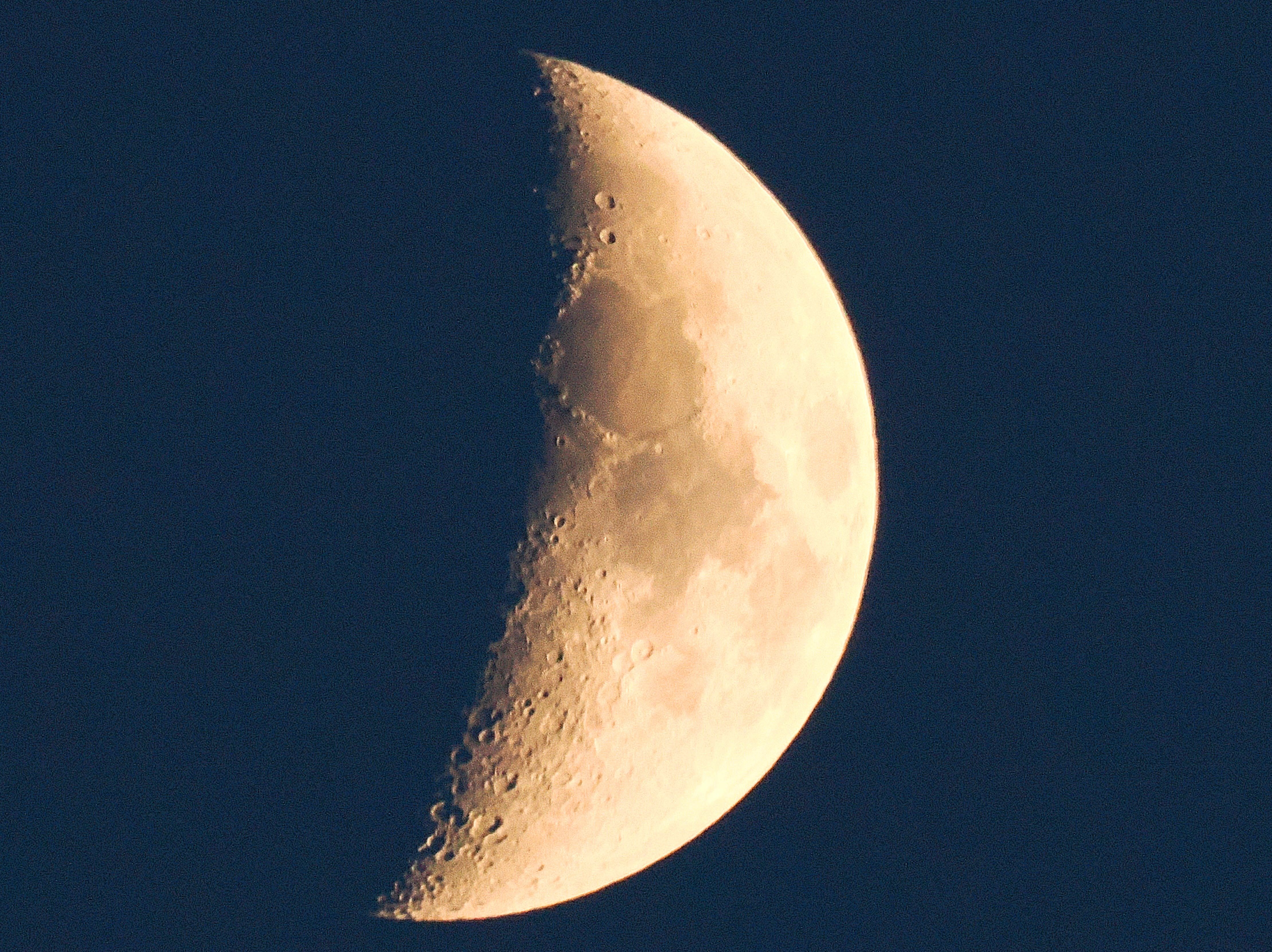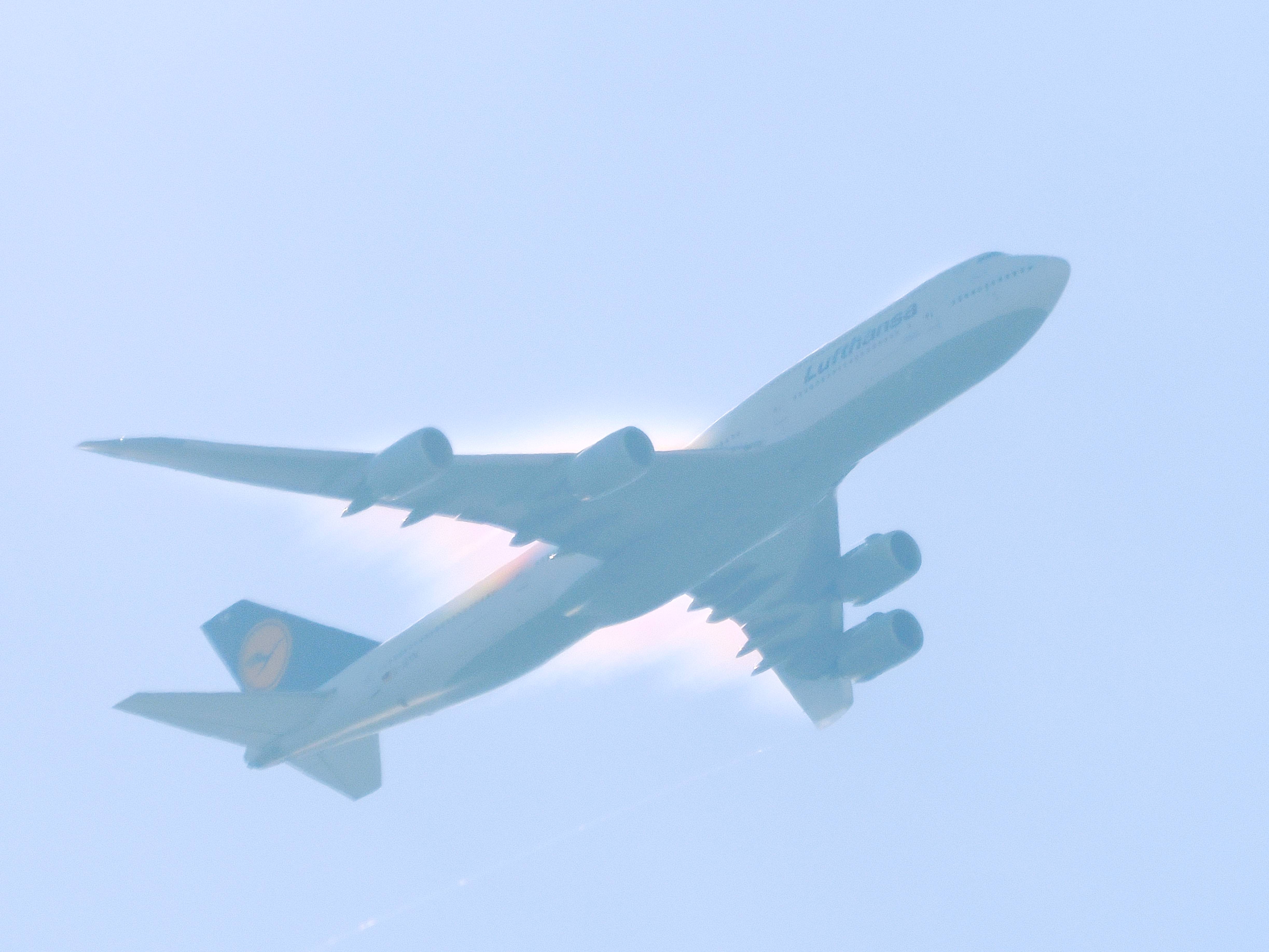 三日月の前を小さな旅客機が横切りました。