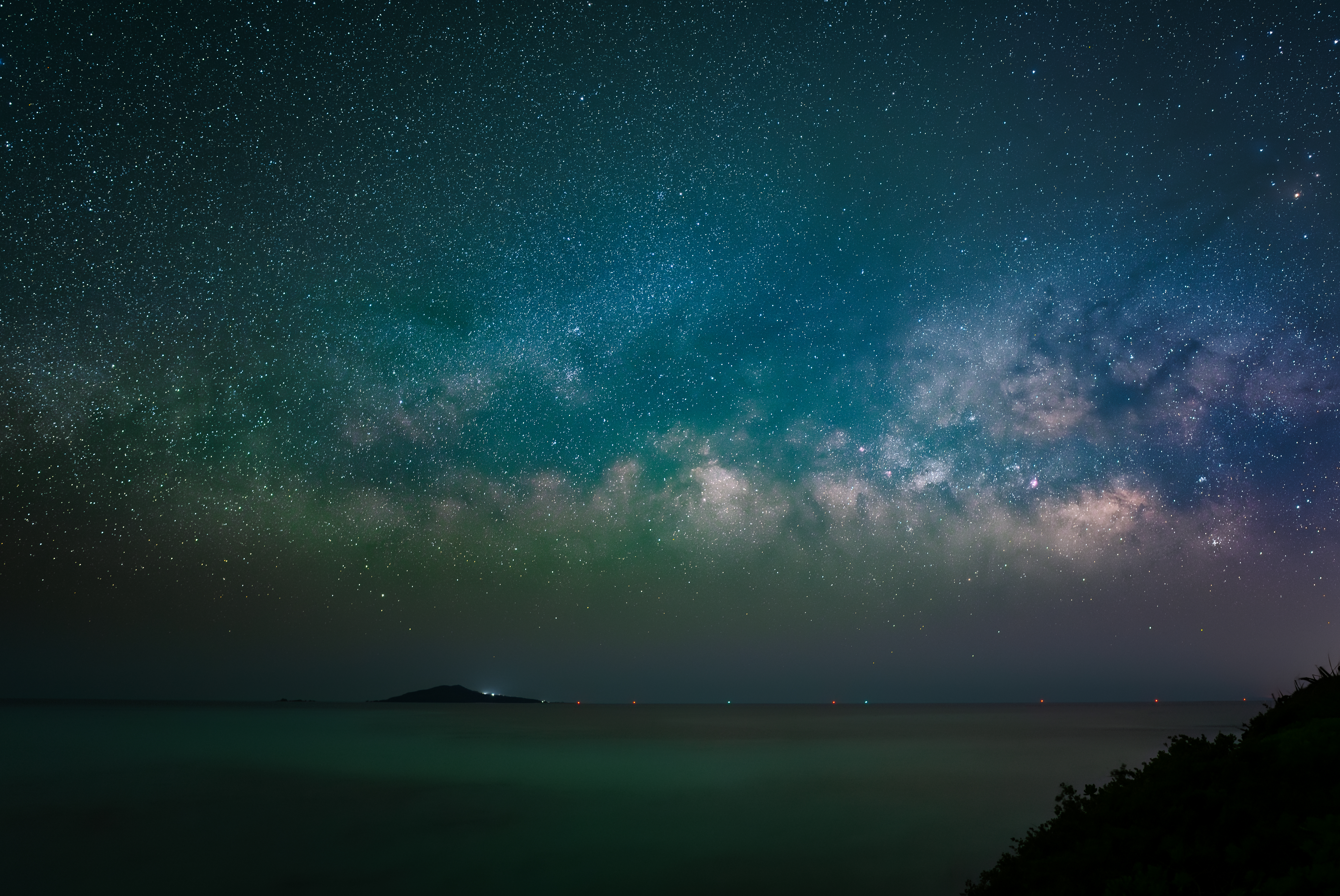 静寂とともに夜が更け、空に星が輝き始めるにつれ、次第にその姿を現す天の川。星明りに照らされた海と空は、まるで宇宙の端っこに立っているかのような錯覚さえ覚えます。