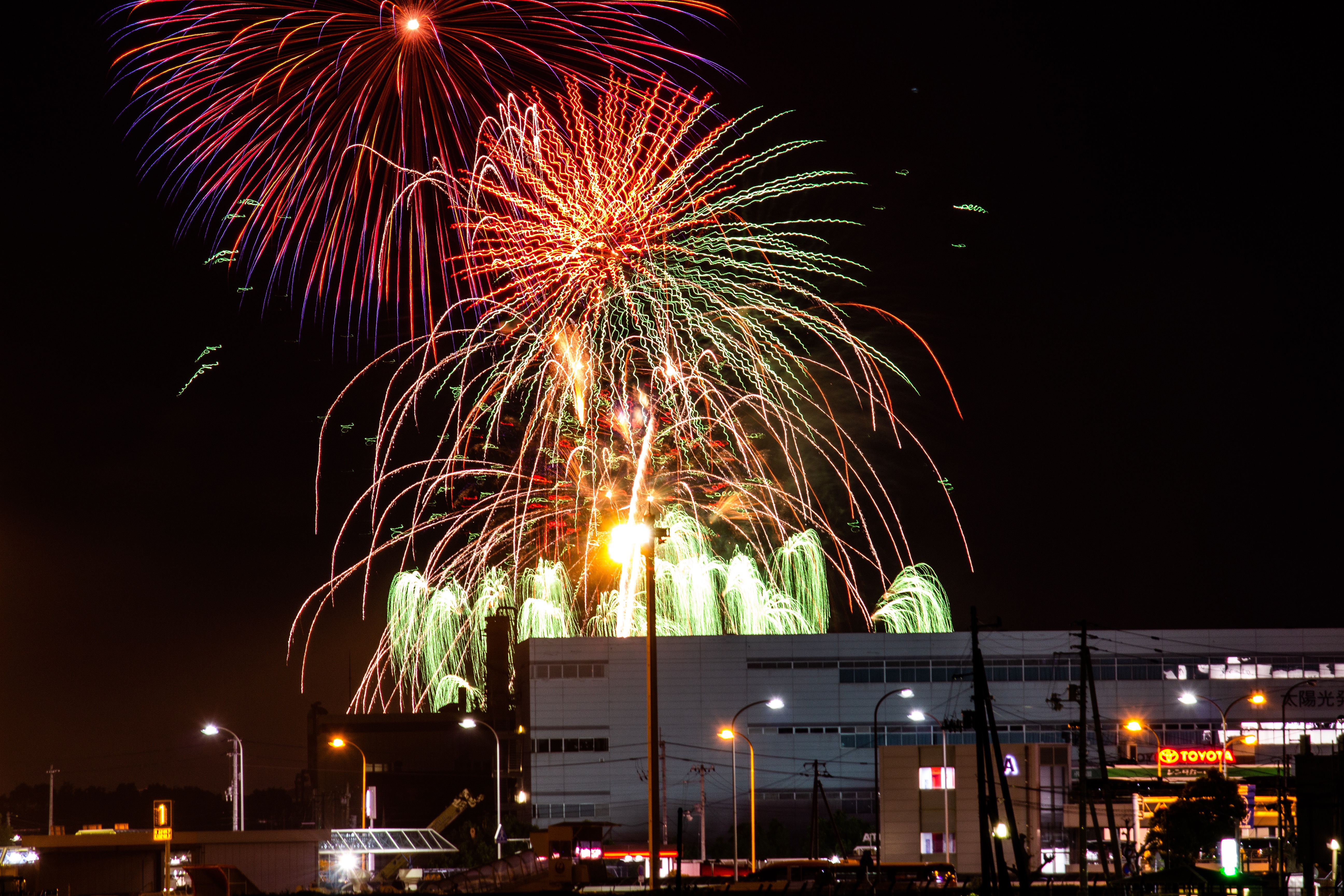 三津浜花火大会を空港南公園で撮影