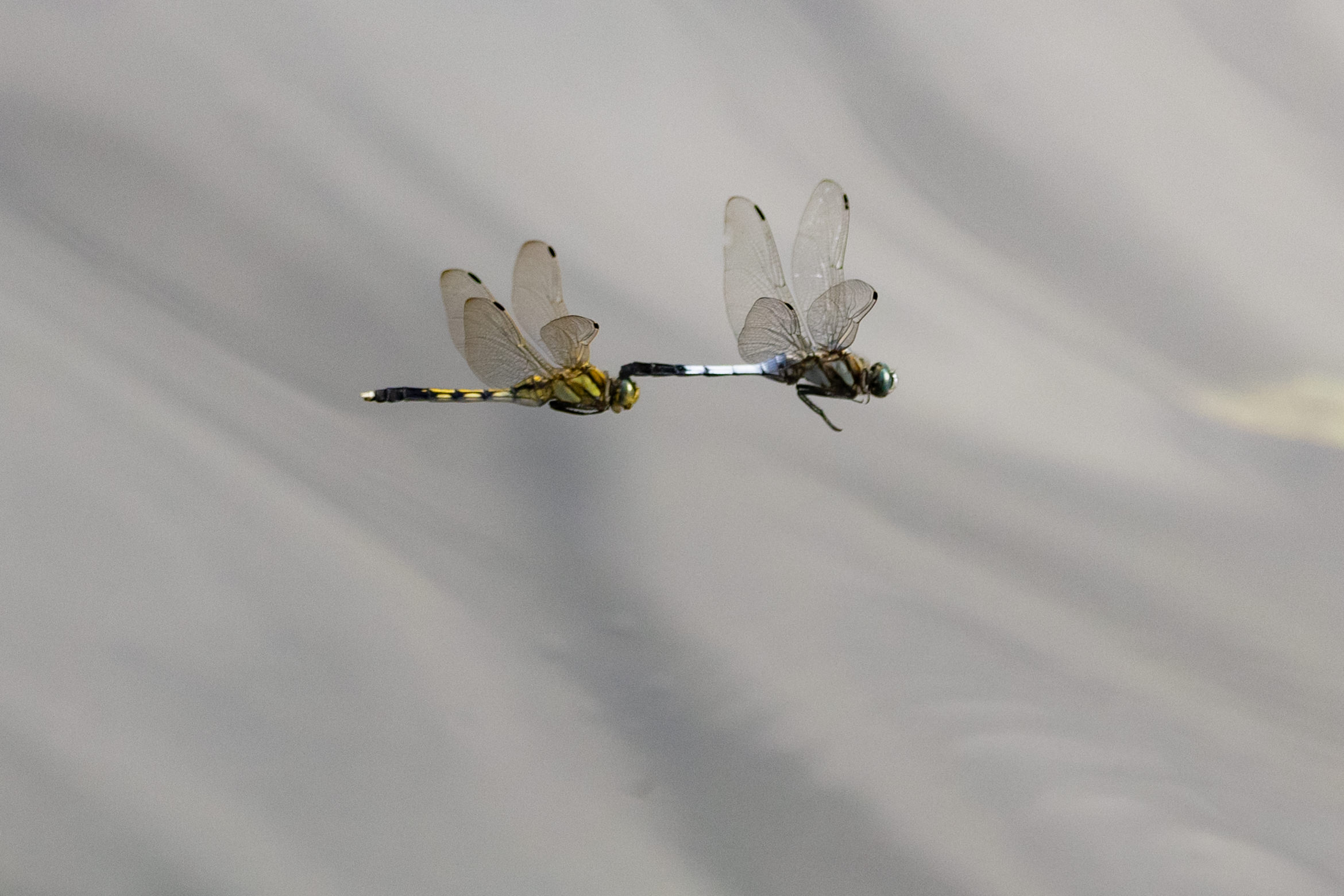 公園で出会いました(交尾中のシオカラトンボ)。