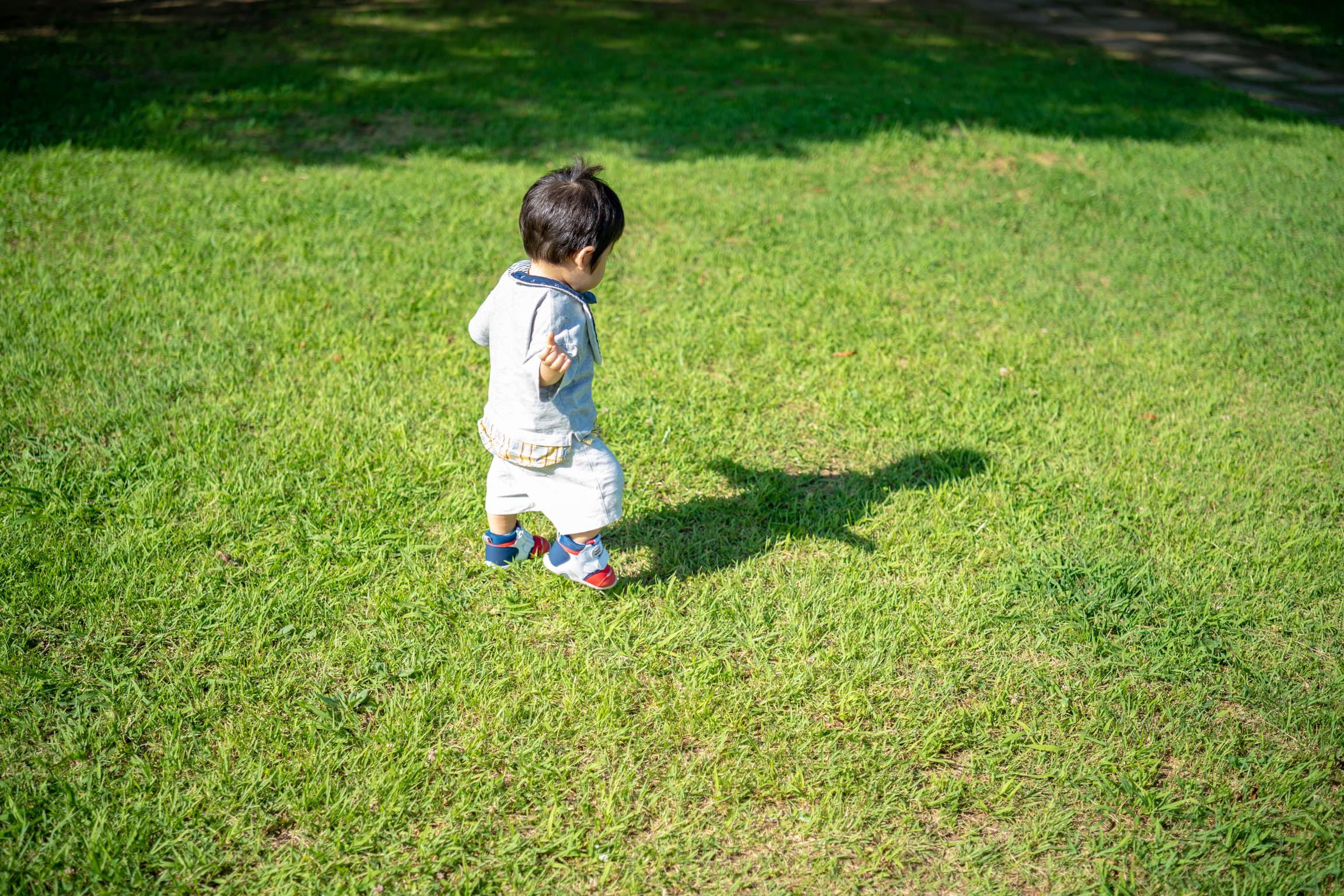 初めて見る自分の影を追いかけている一枚