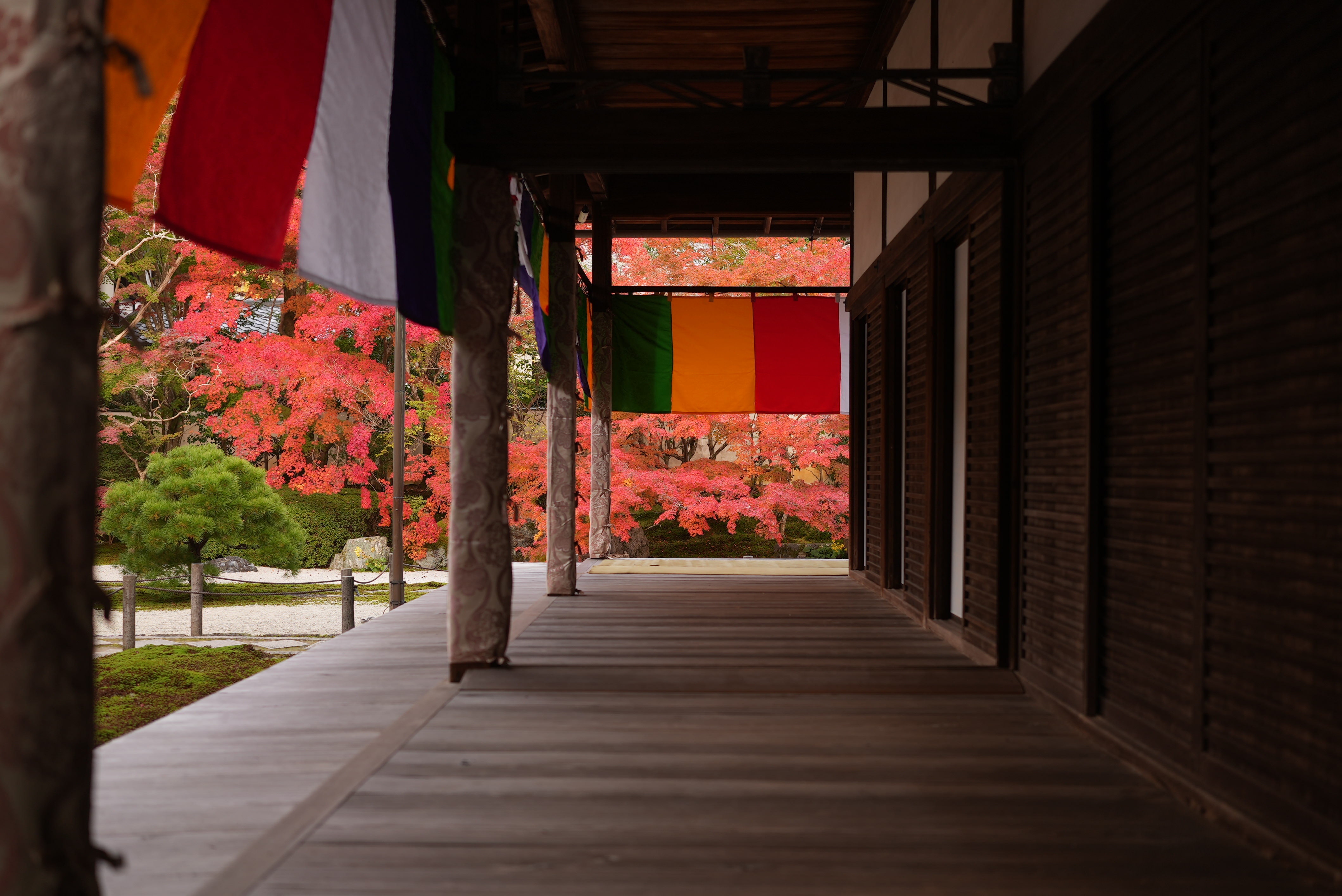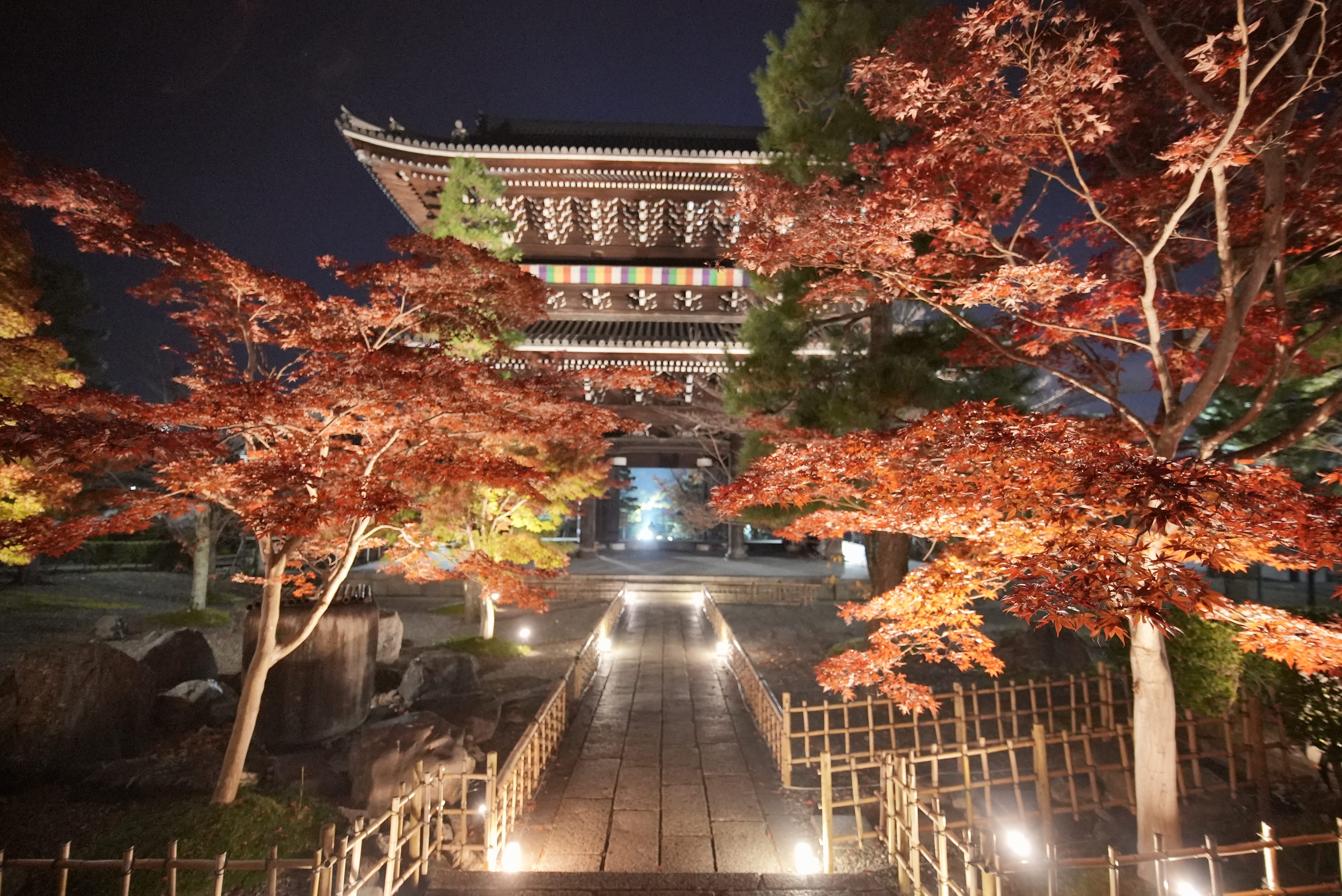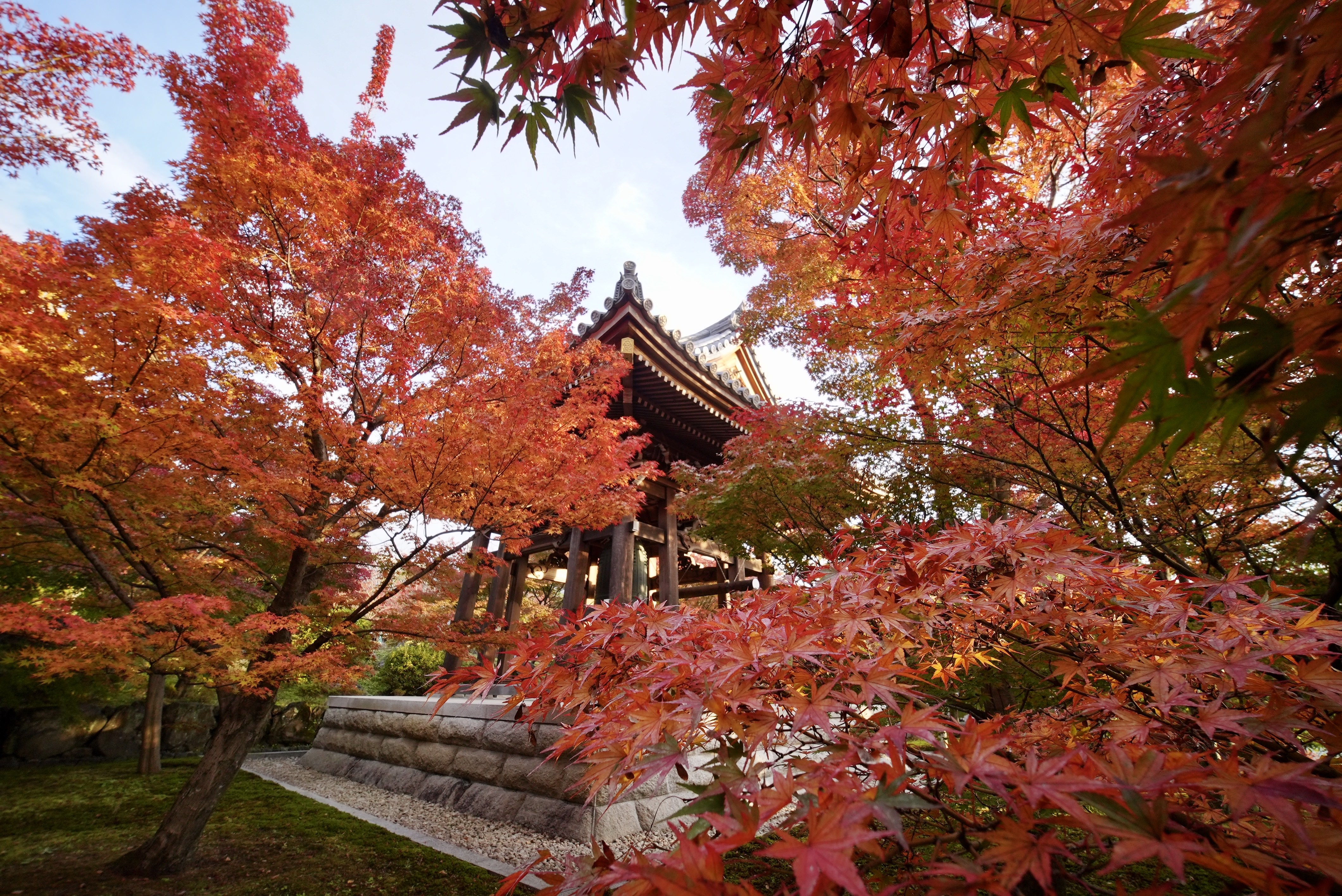 12月になってようやく赤くなる西門の紅葉。