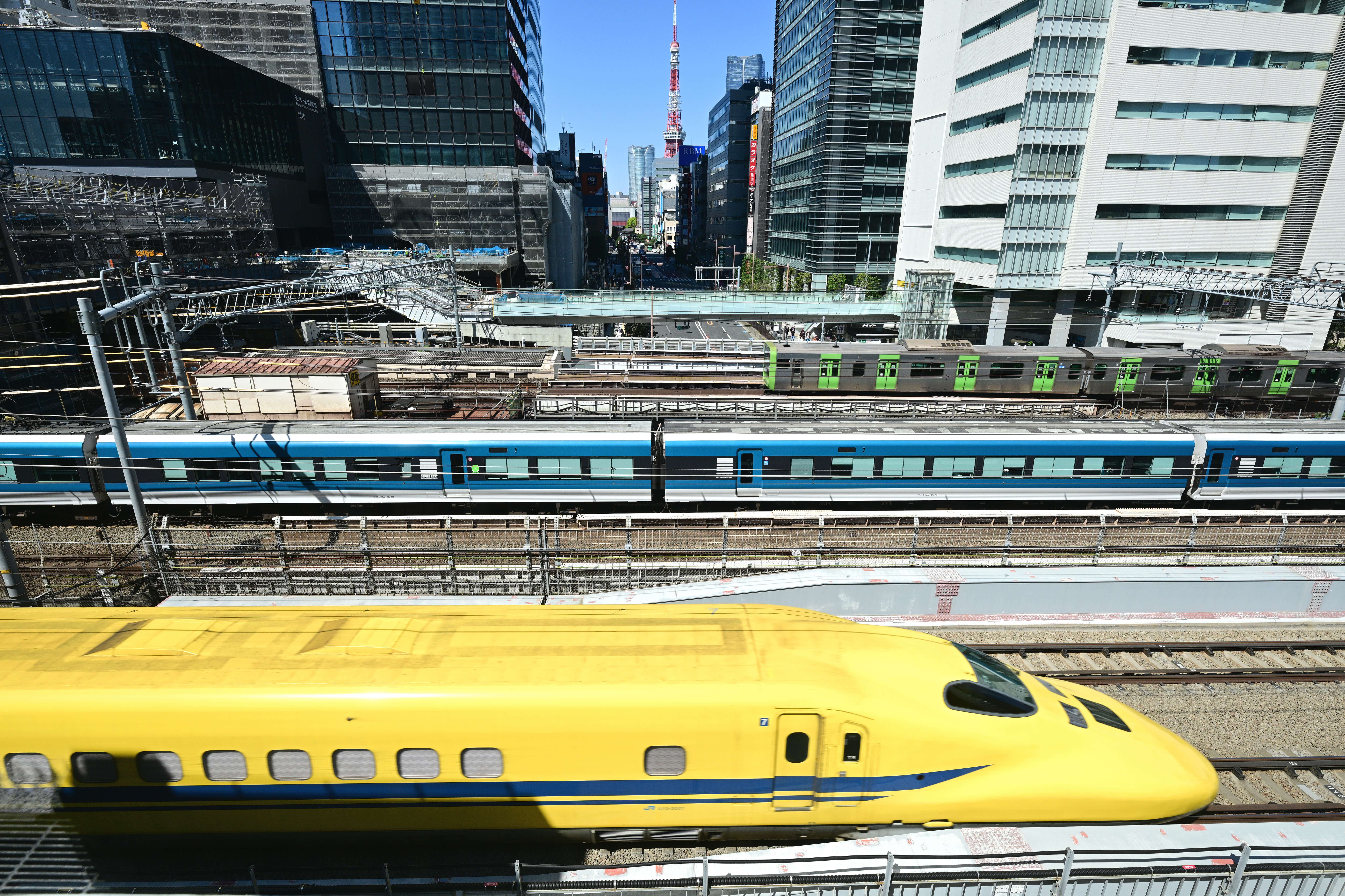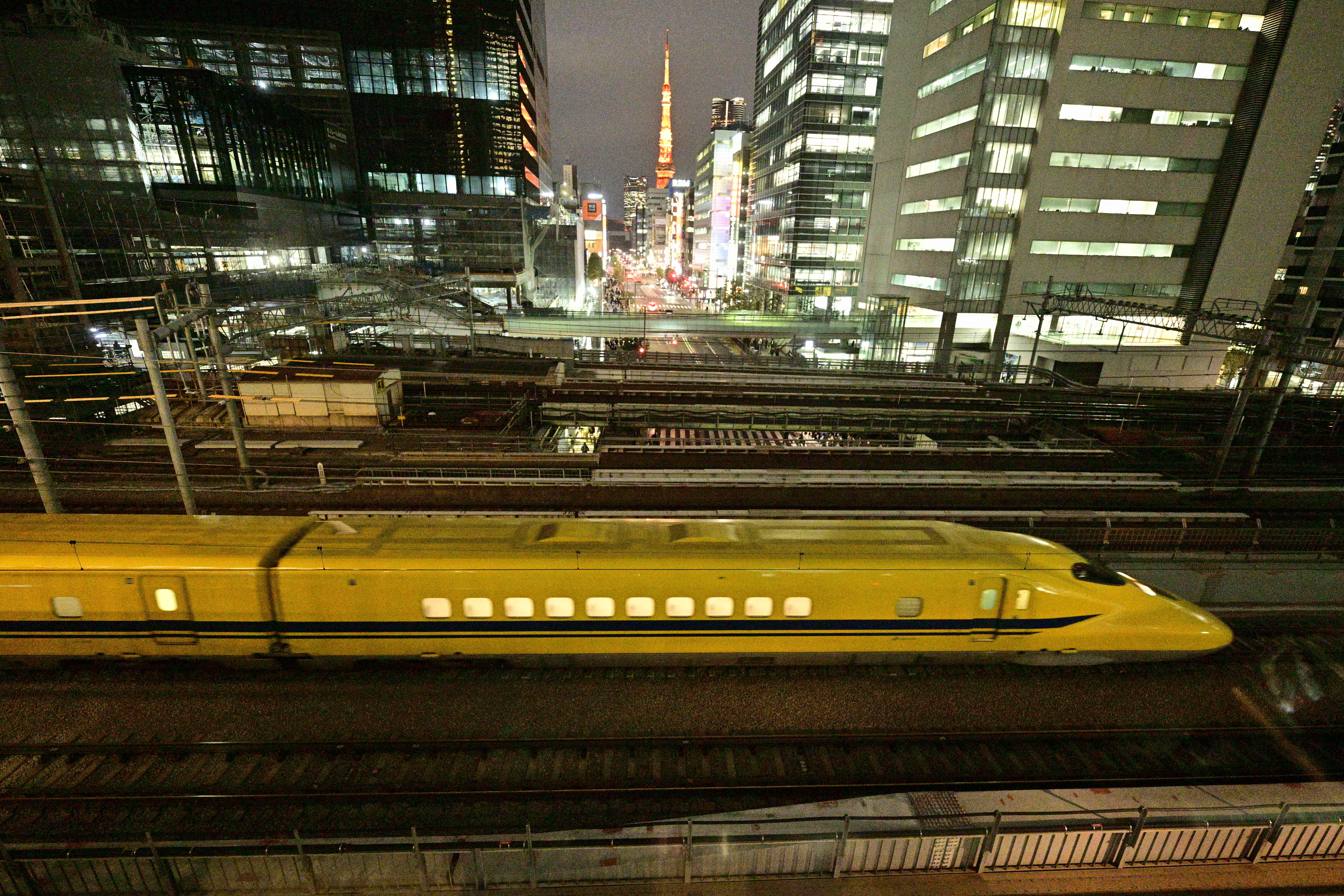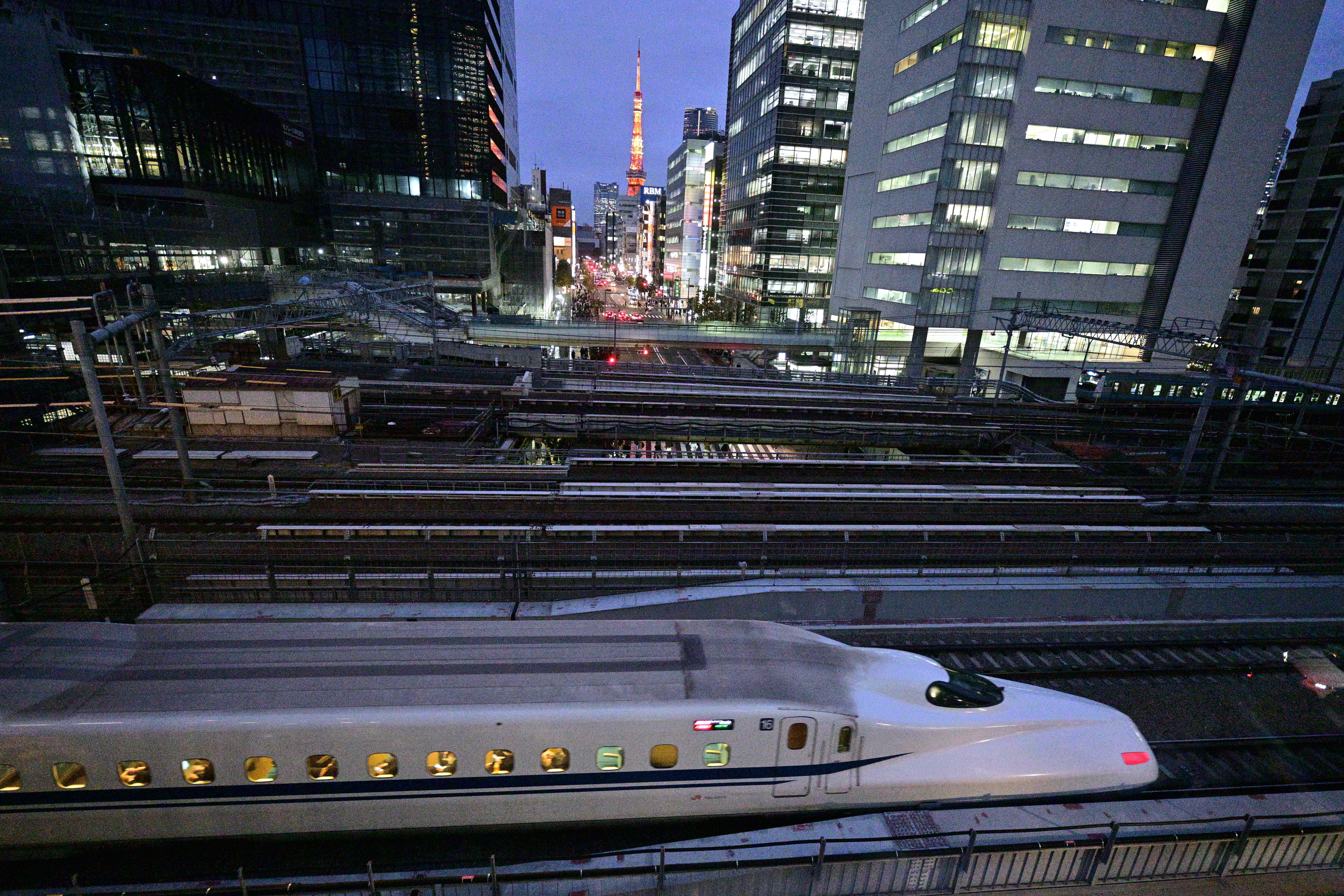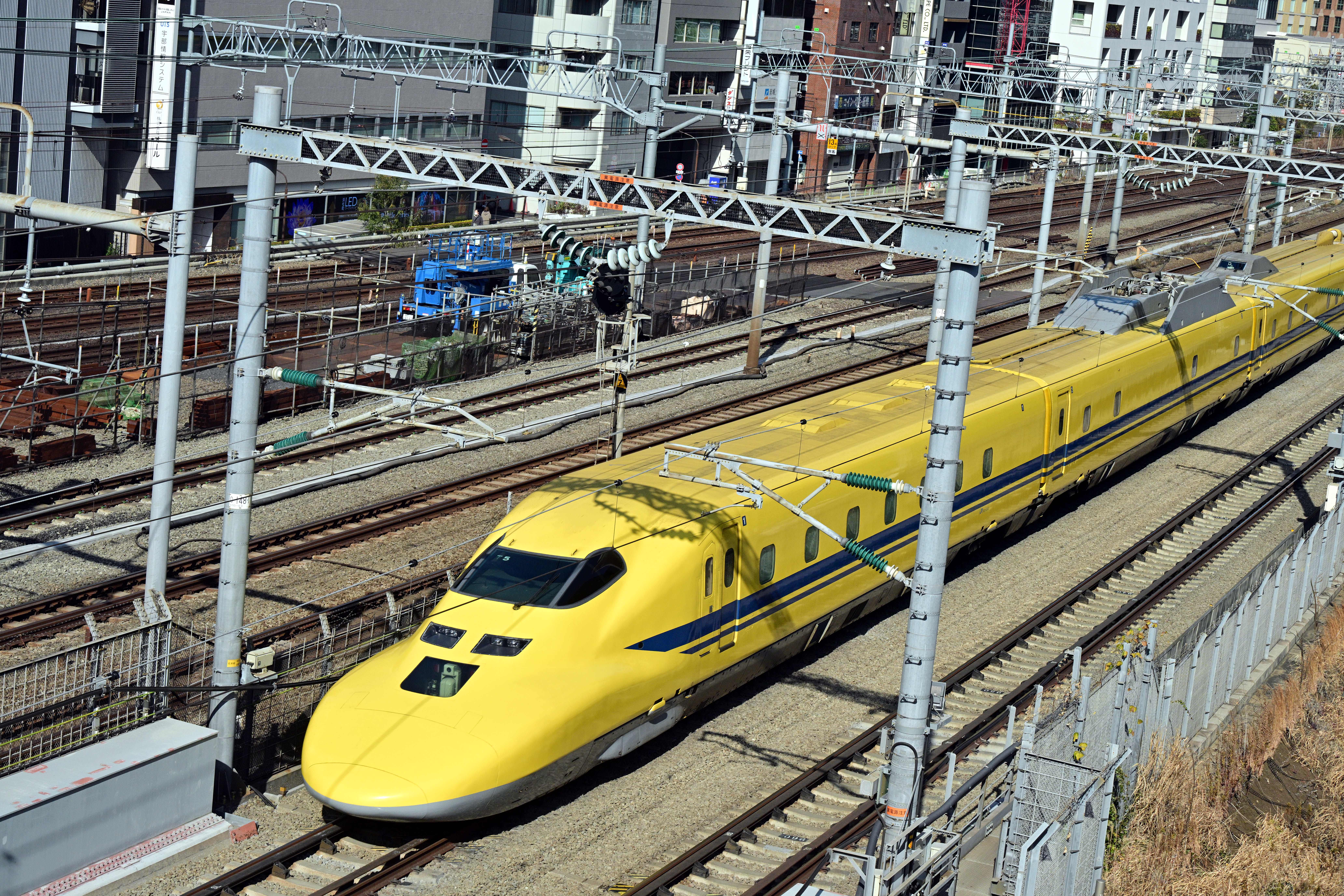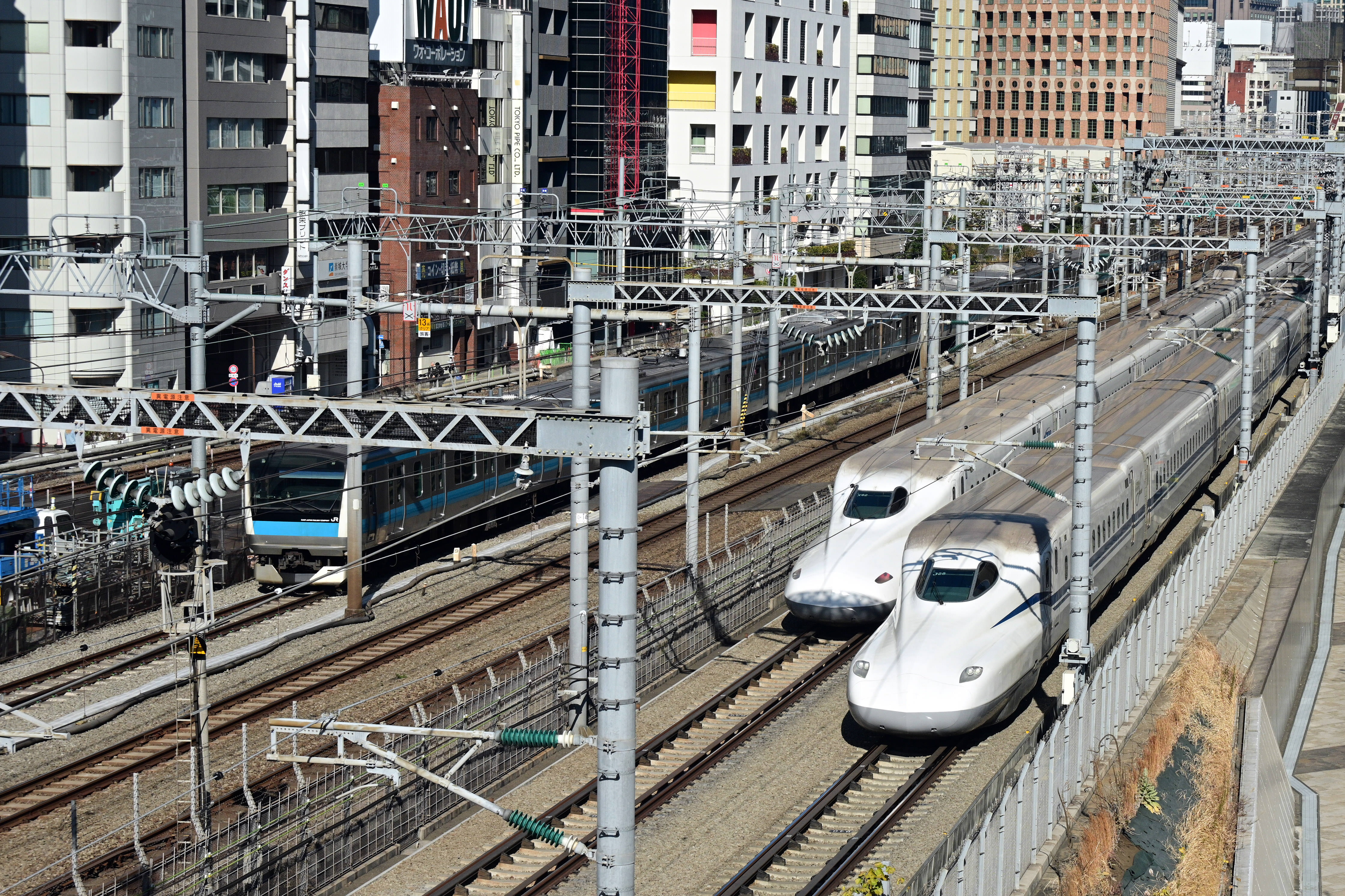 日本の大動脈である東海道新幹線を監視する車両、都市の風景