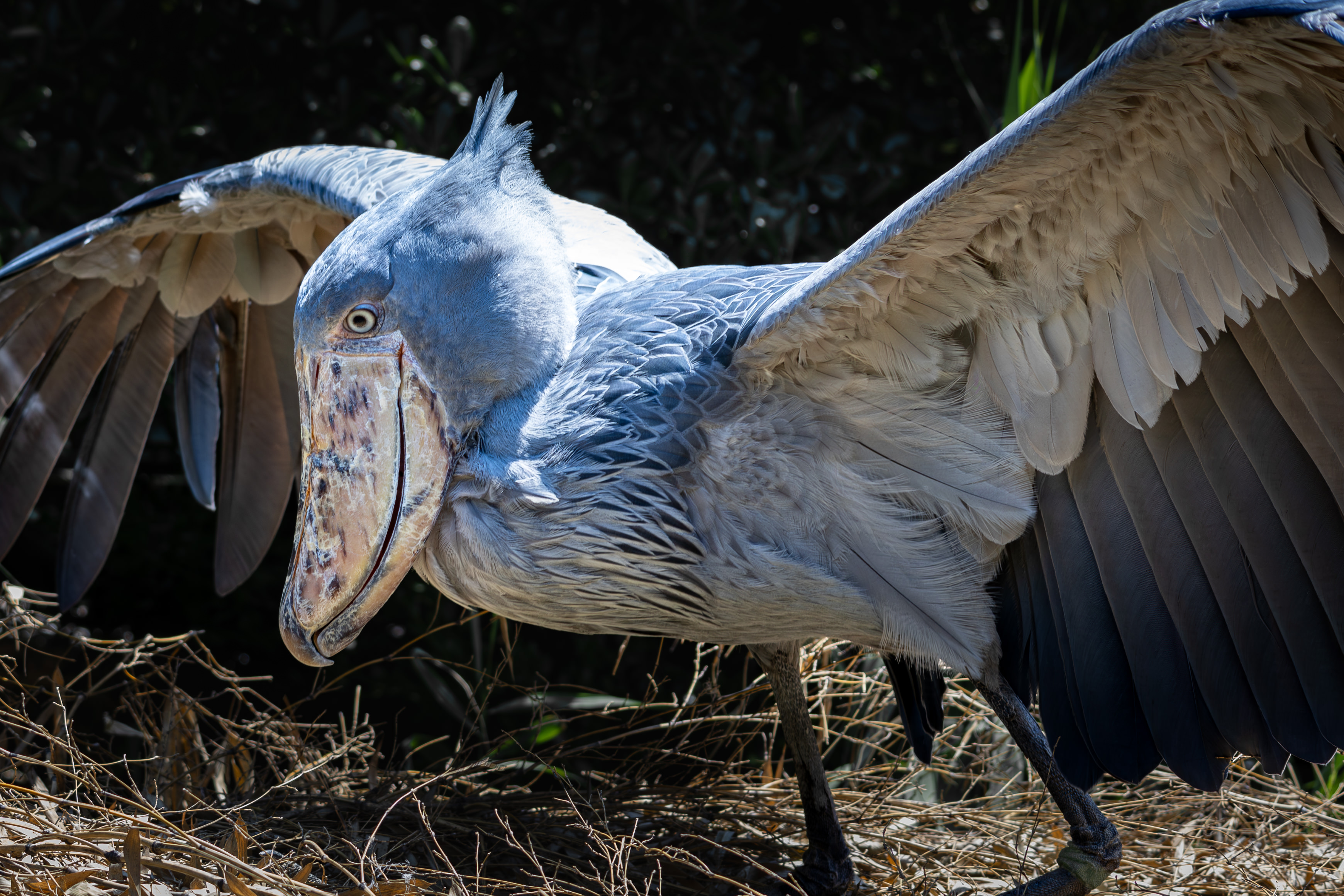 ハシビロコウが飛ぶとこって見たことないんですよね。