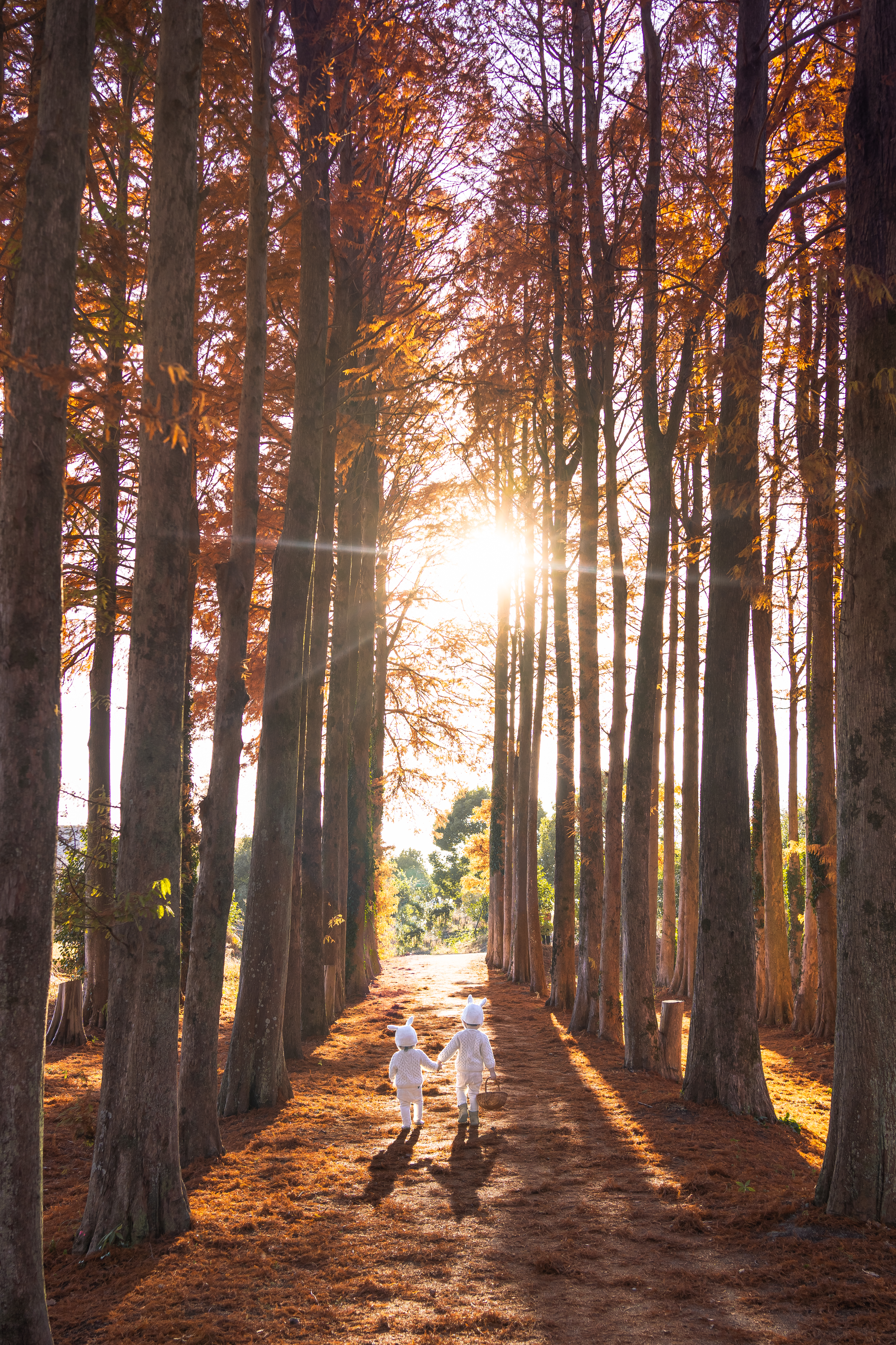 メタセコイアの森で、散歩中の兄弟うさぎ。
