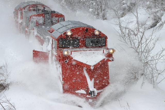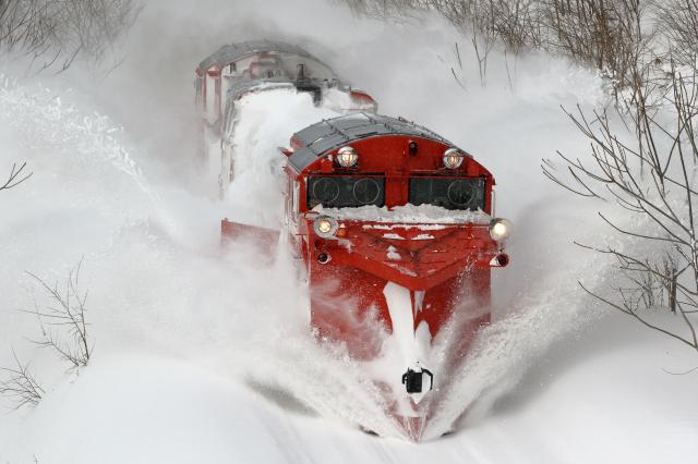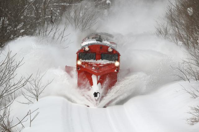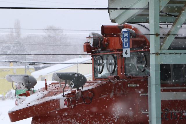 マイナス20度ぐらいの中、ディーゼル特急の排気が真っ白になるシーンを決め打ちしました。代走でたまたまやって来たのがラベンダー編成でした。