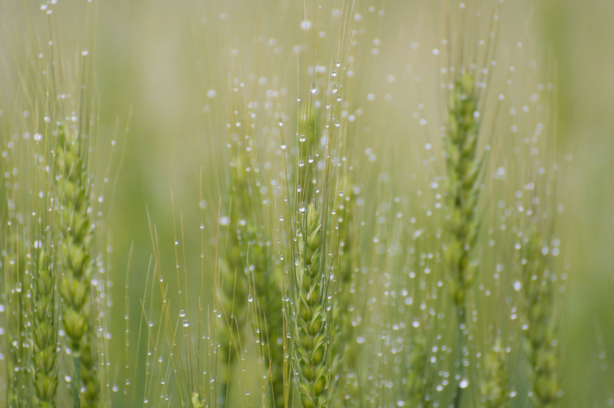 Morning dew on the crops in Okayama, Japan.