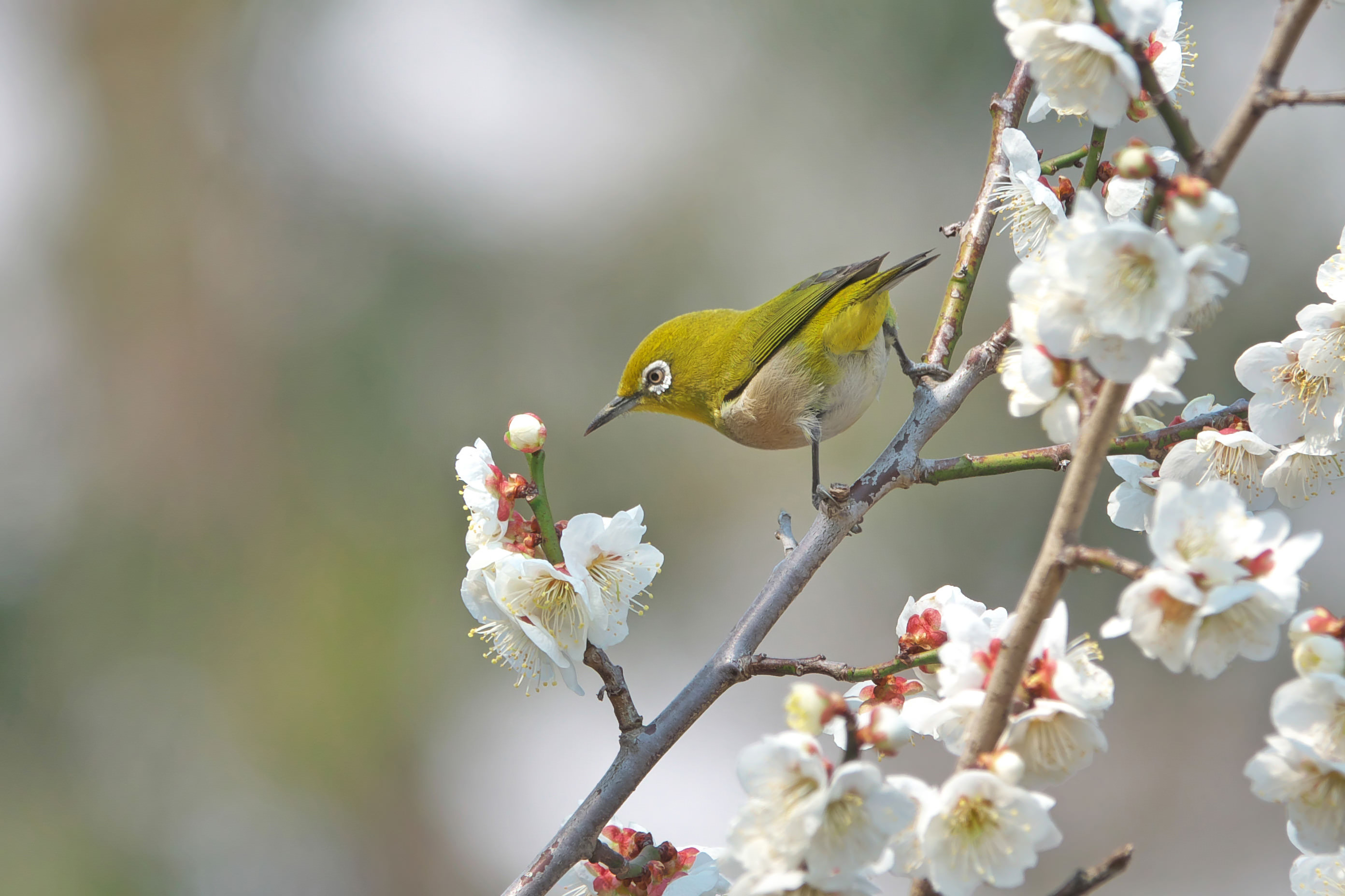 春の定番、梅の花とメジロです。