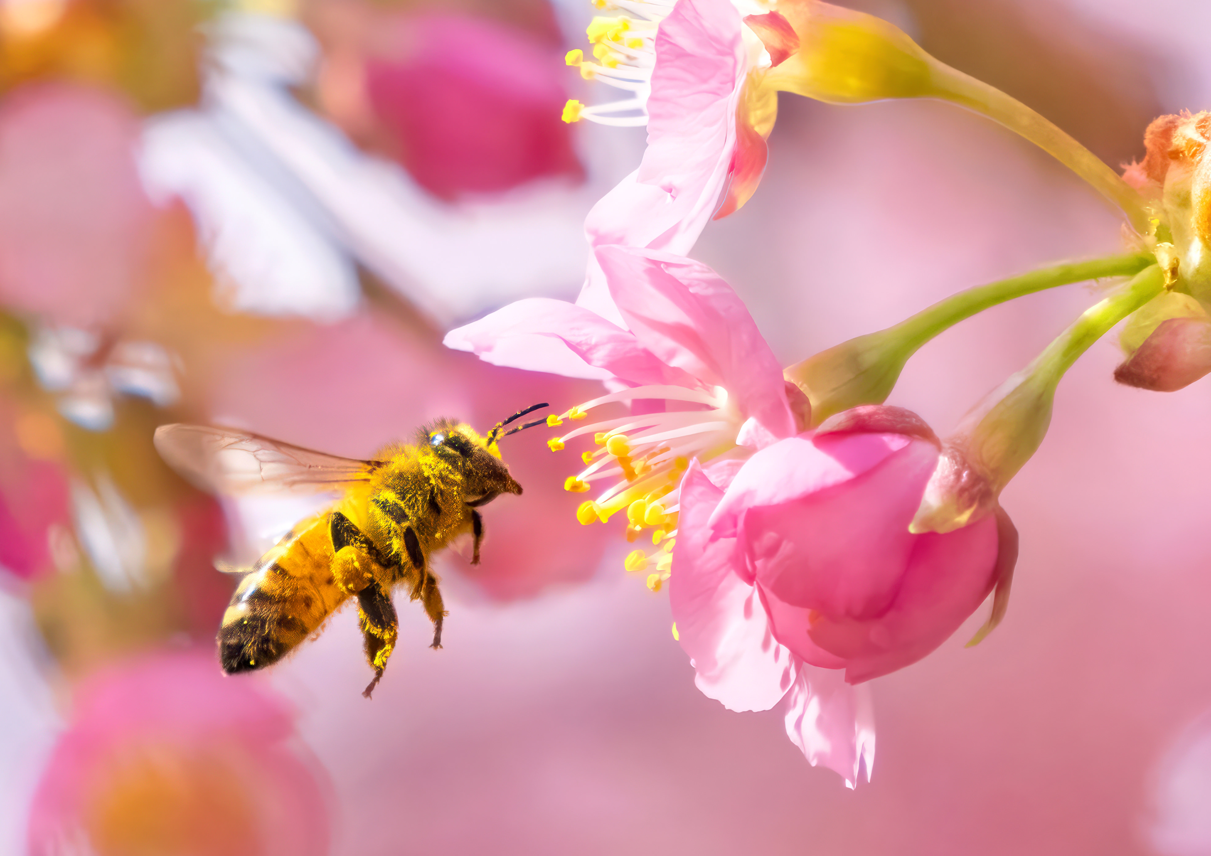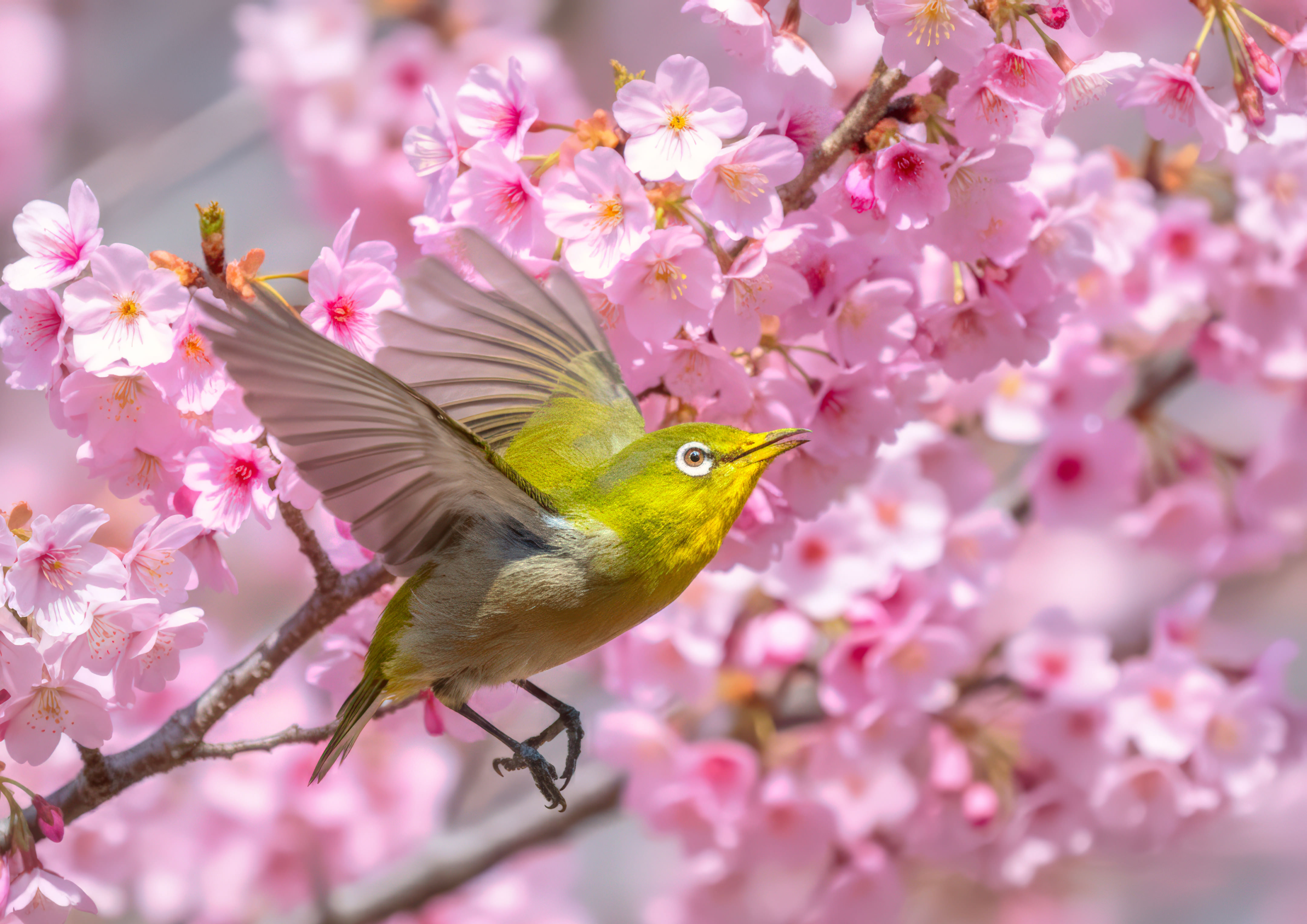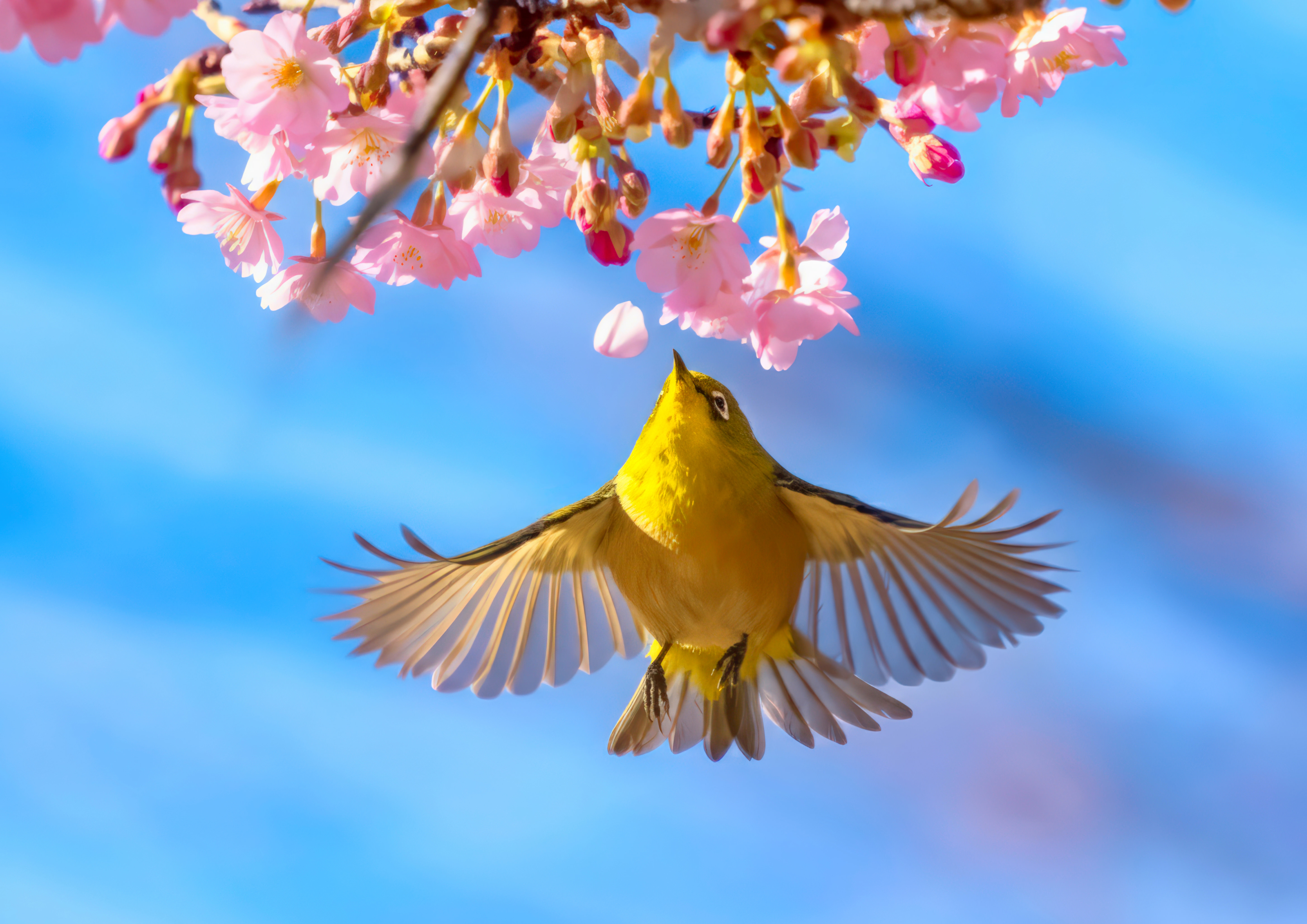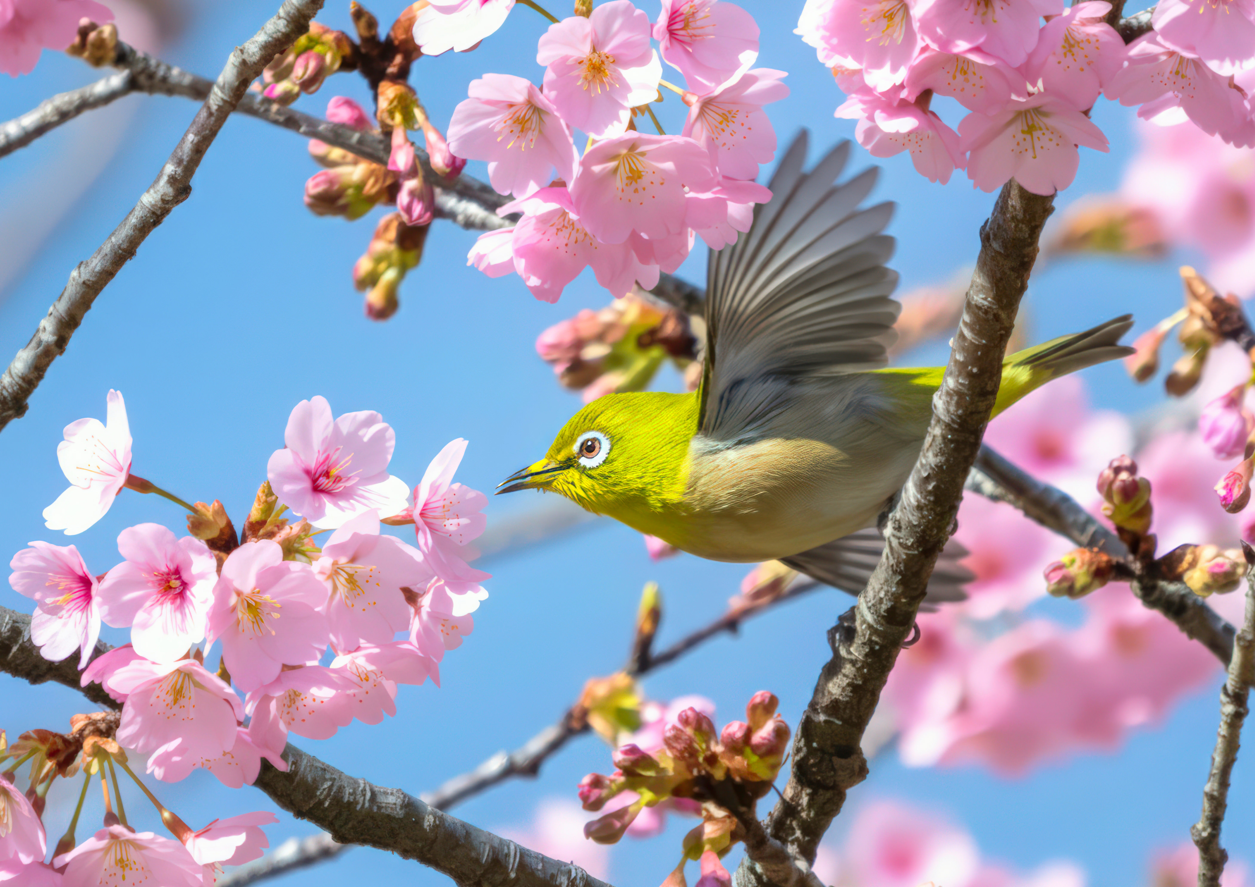 河津桜の蜜を求めるメジロ
