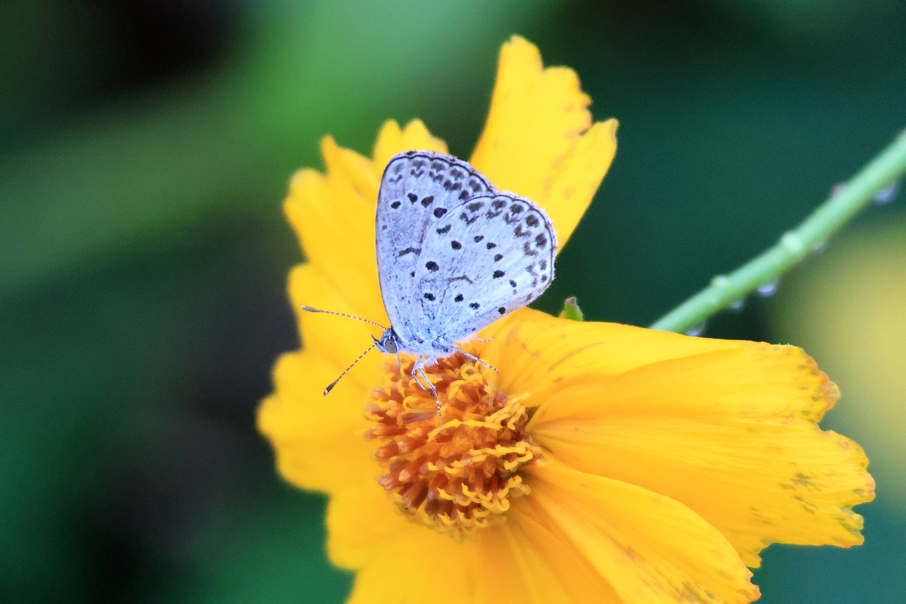 暖かい日が続いたせいか、チョウトンボが4匹以上飛んでいて、時々すぐ近くのハスのつぼみに止まってくれました。