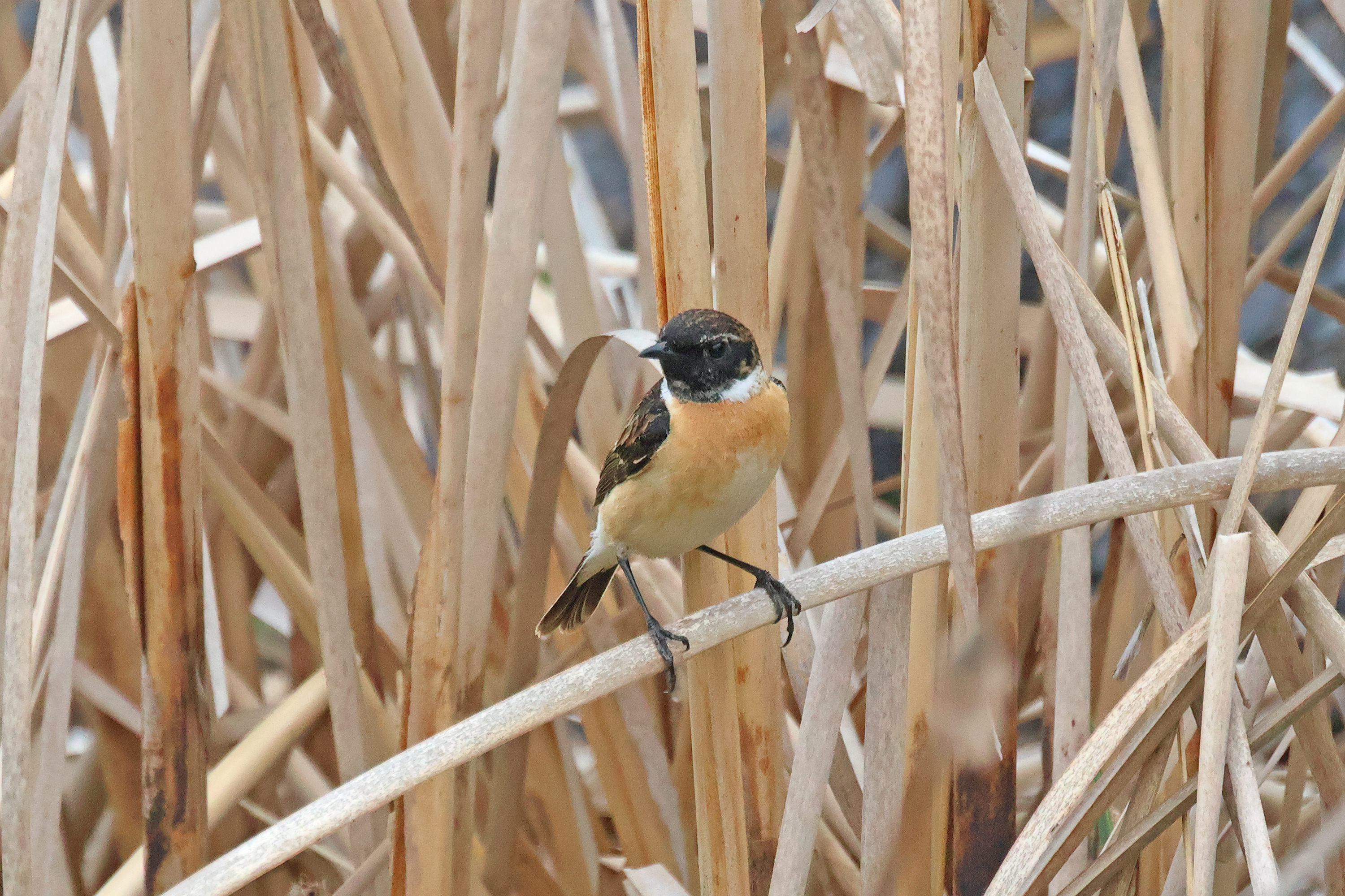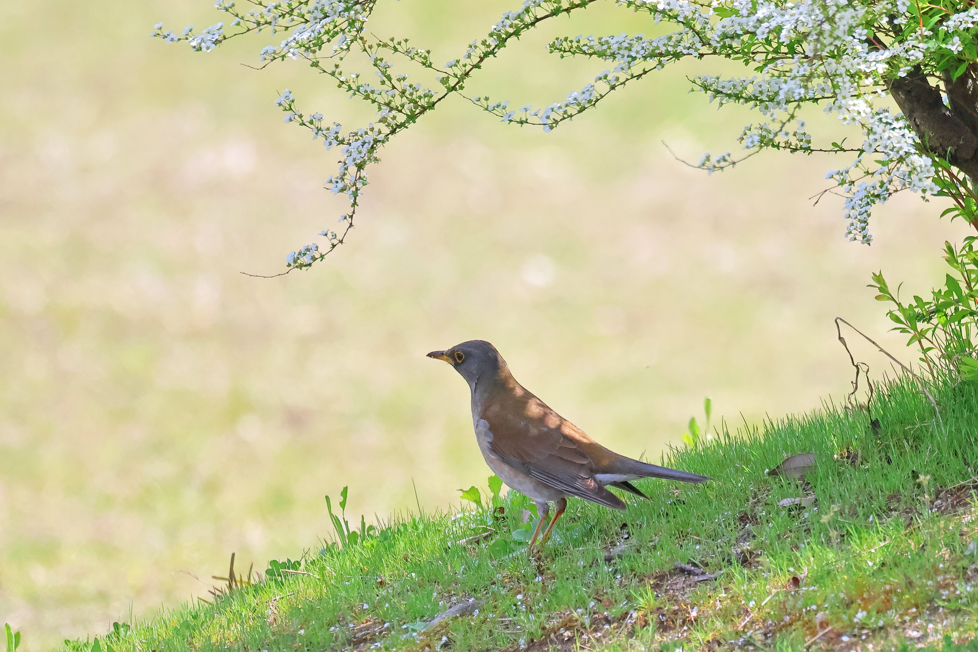 満開の菜の花畑を歩いていたところ、ホオジロが飛び出してきました。