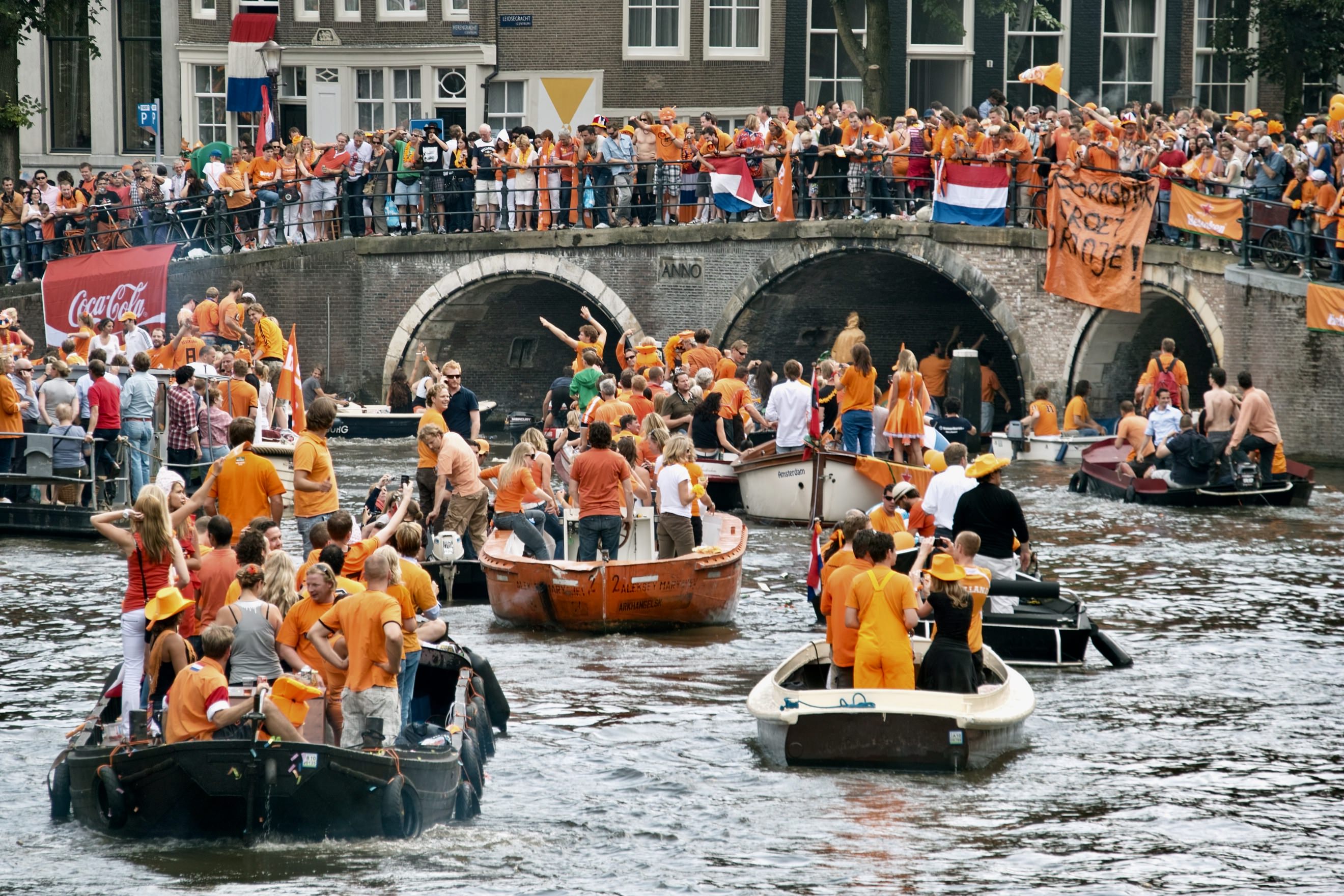 2010年のサッカーW杯でオランダが準優勝して帰国した時、ナショナルチームはアムステルダムの運河をボートに乗って凱旋したのですが、ものすごい数のサポーターが自家用ボートで追っかけていました。