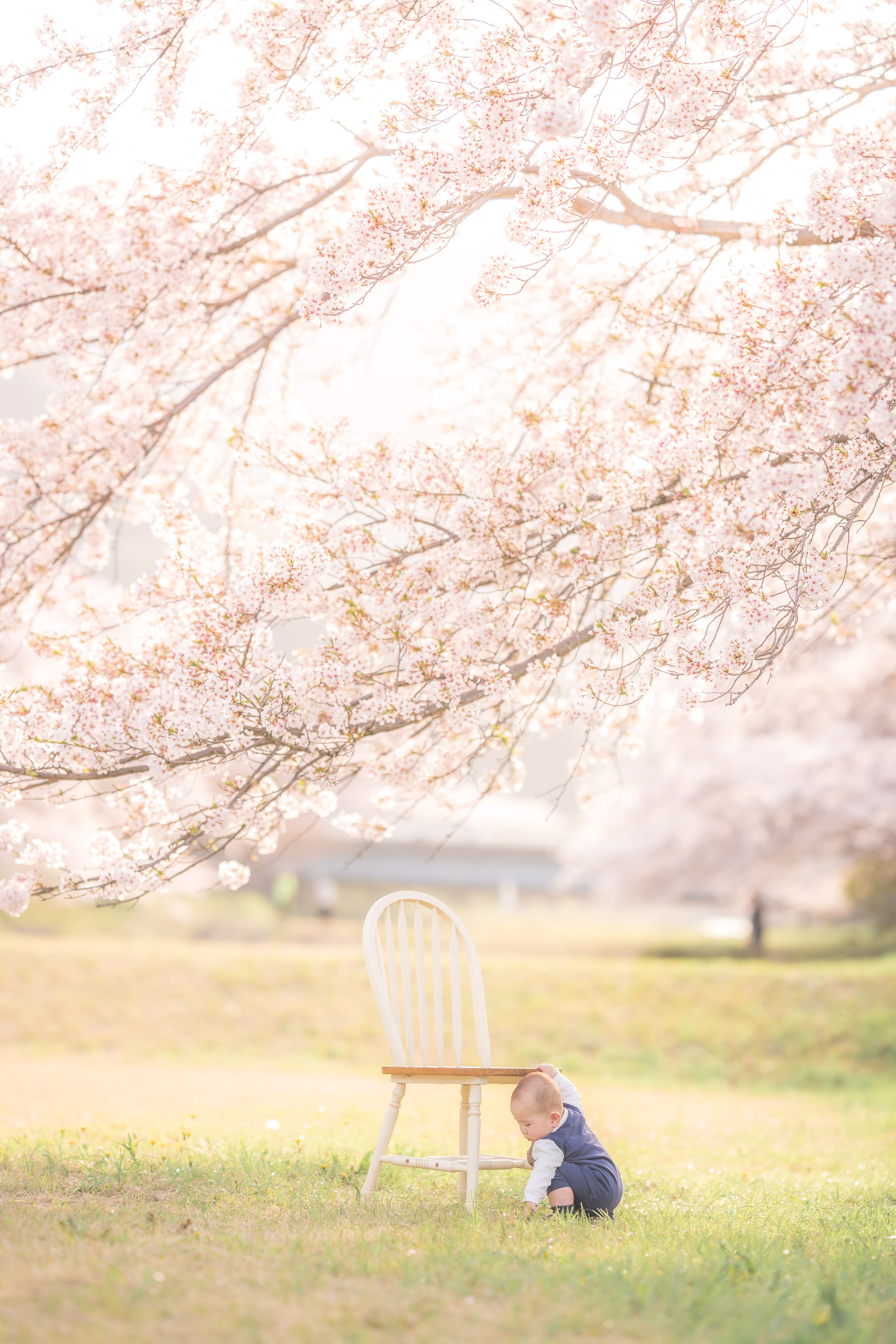 夕陽に照らされた桜の下