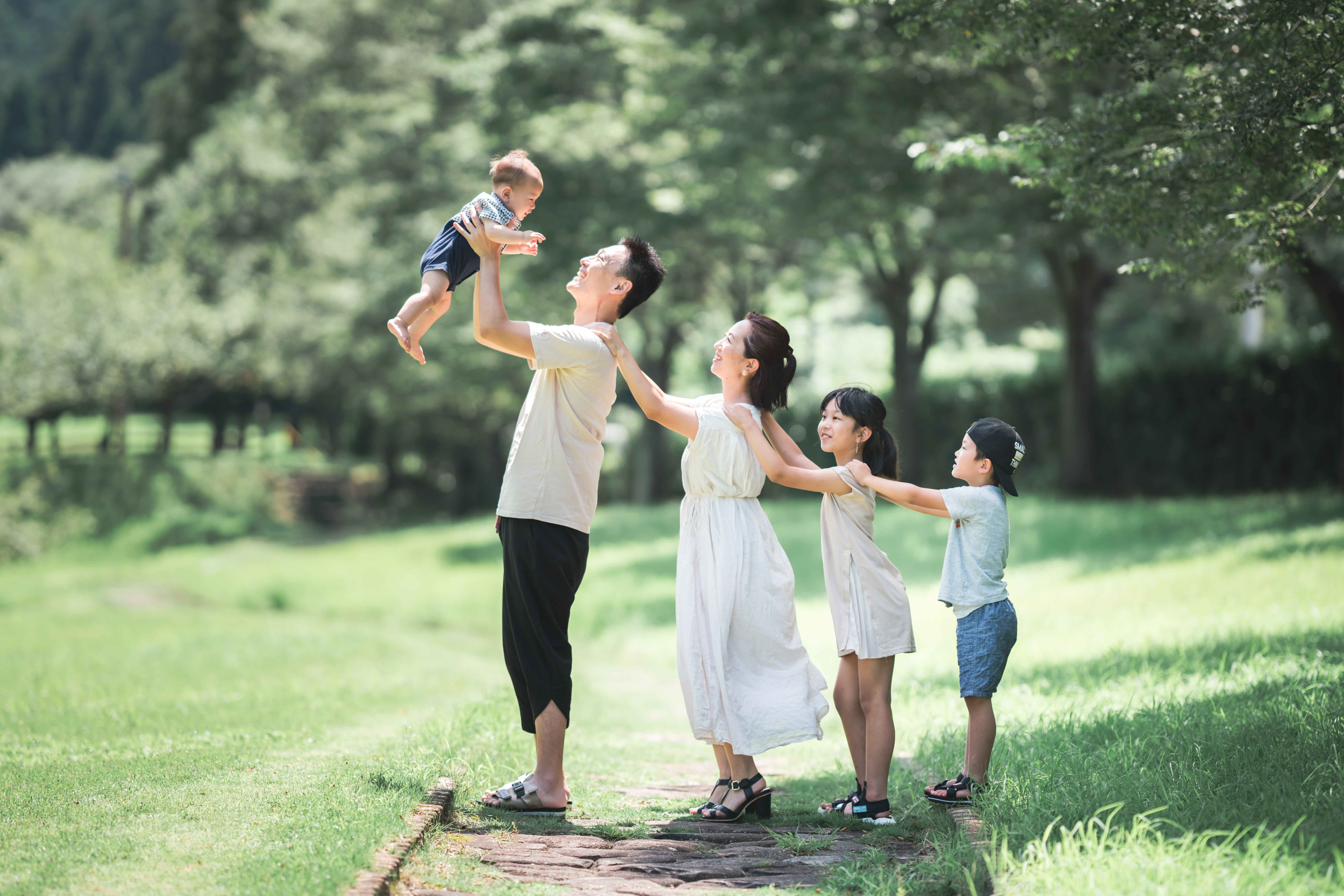 小さな小川の飛び石をぴょんぴょん!