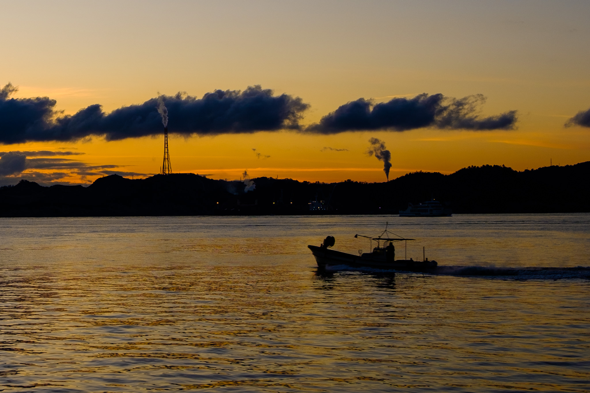 朝の瀬戸内のワンシーンです。コレからうまい魚を獲りにいくのでしょうか。