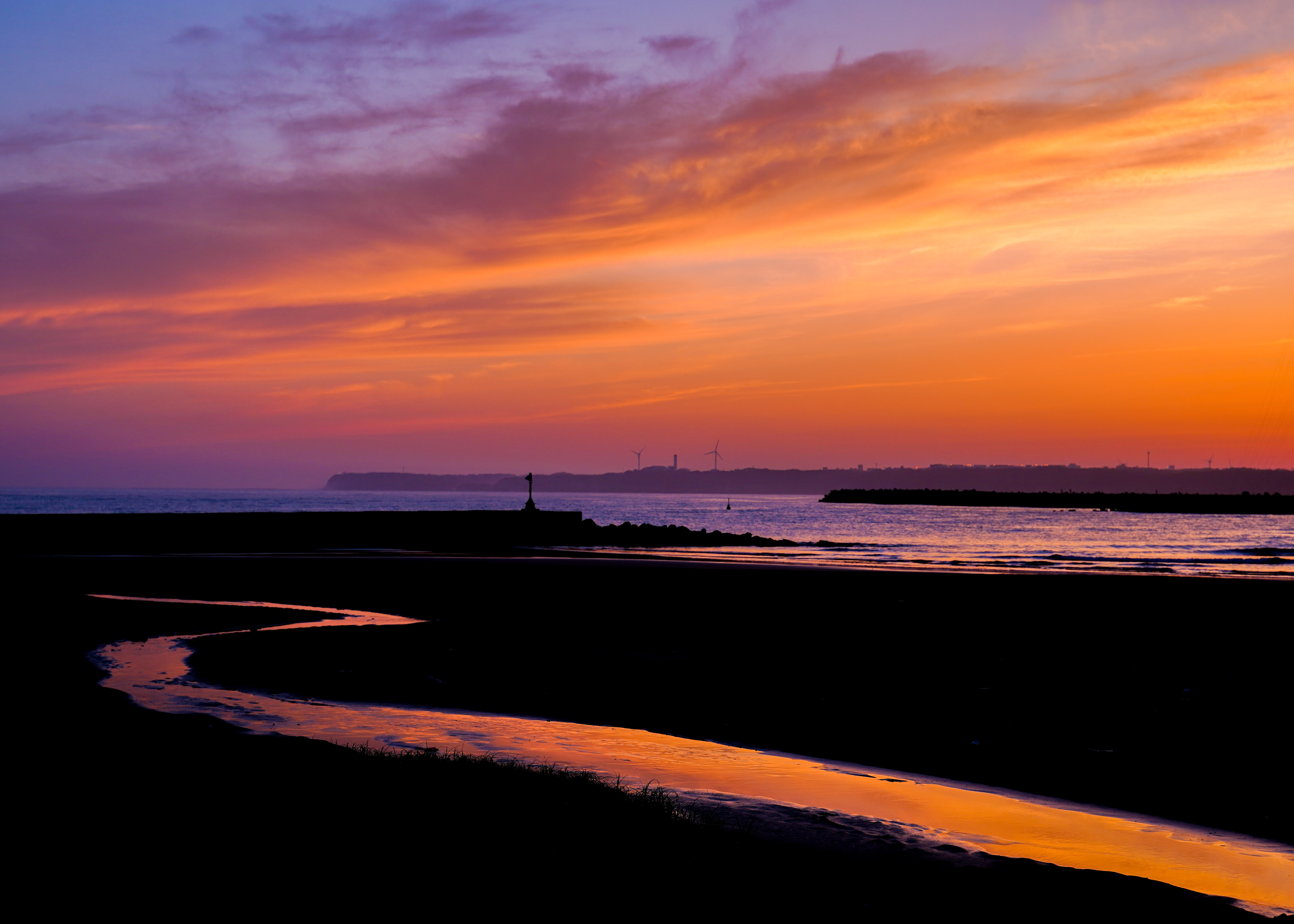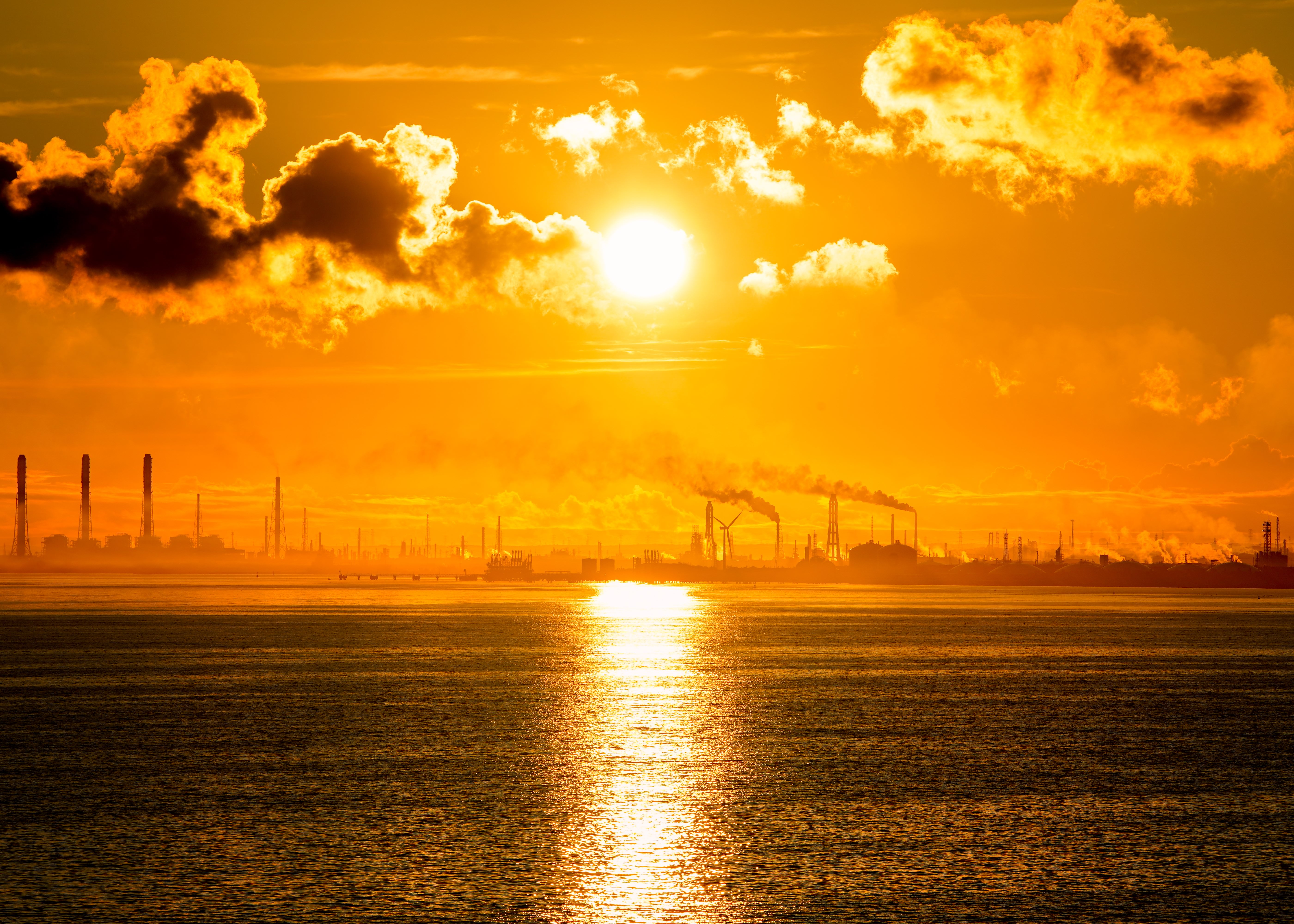 夜明けとともに浮かび上がる工業地帯のシルエットが印象的でした