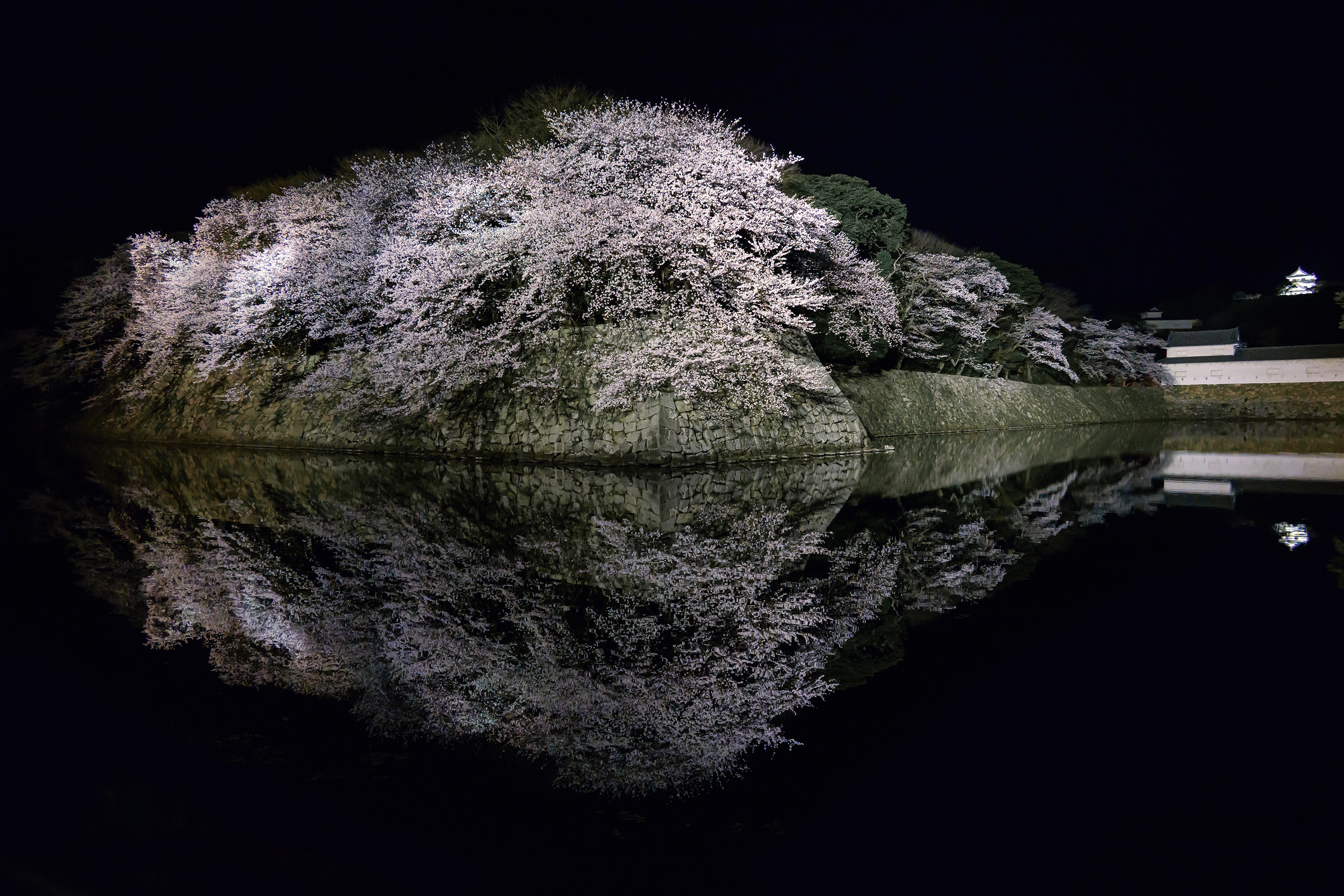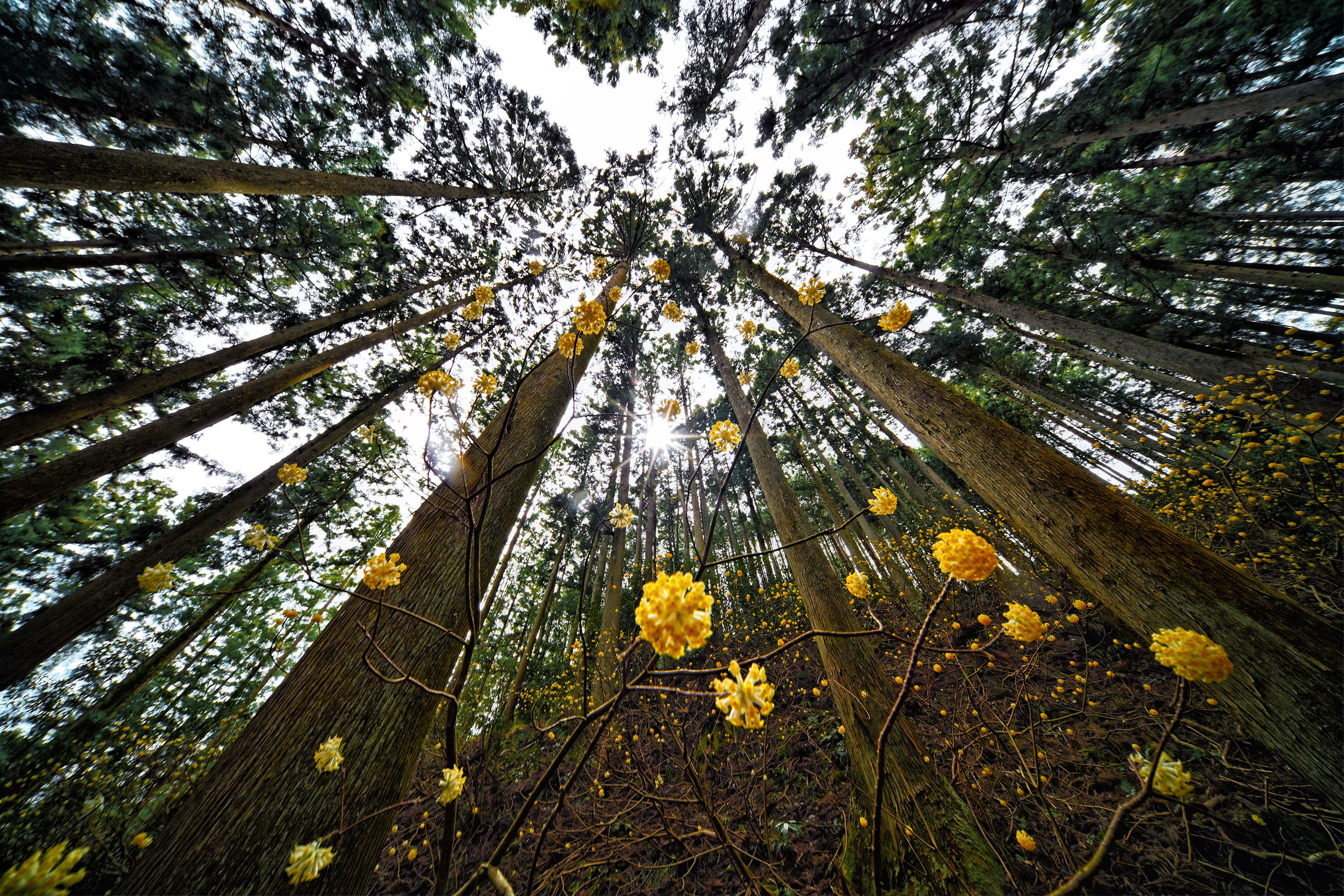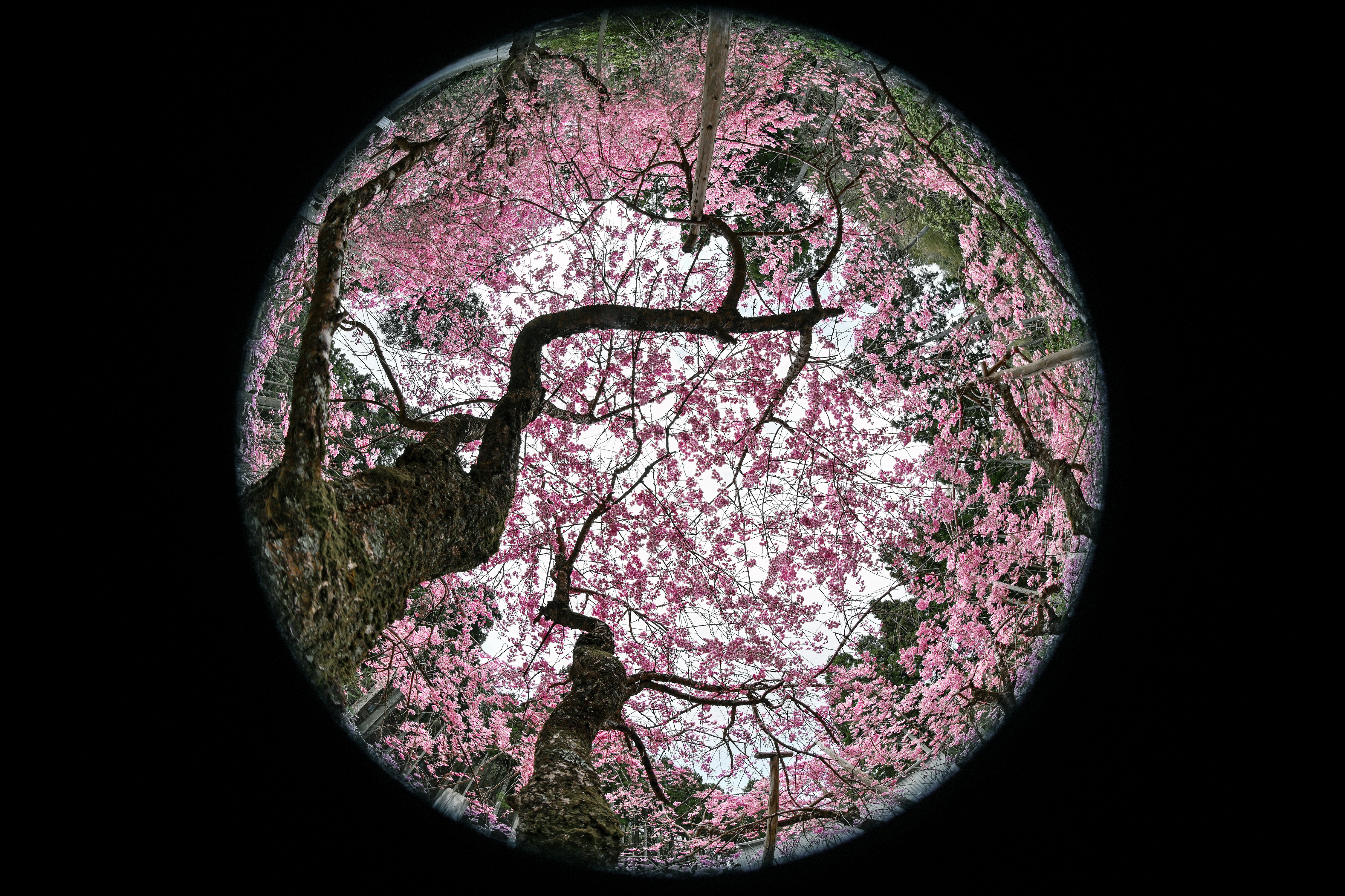 円周魚眼レンズで見上げると、曇り空でも満天の桜
