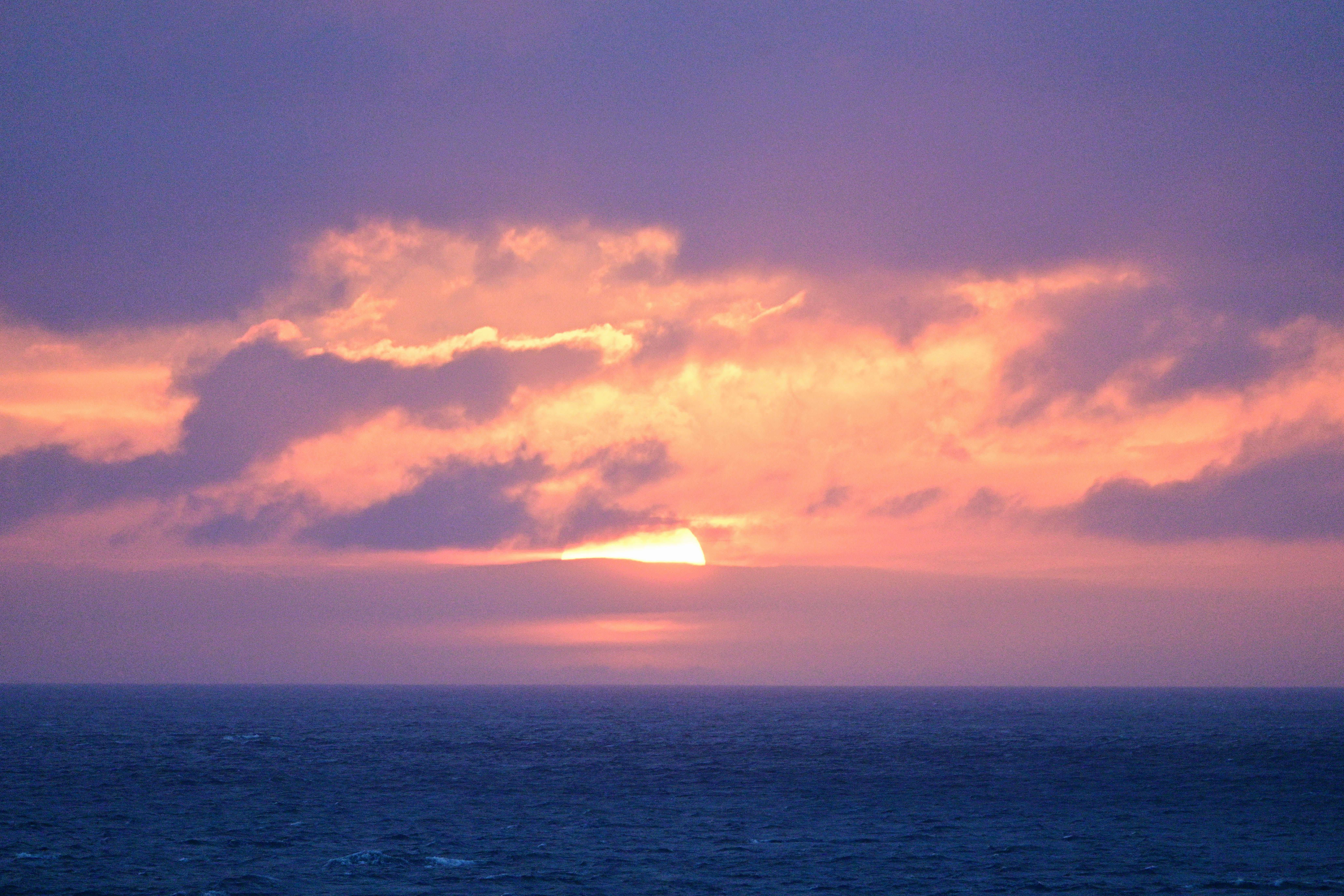 太平洋に昇る朝日、客船から見た日の出風景