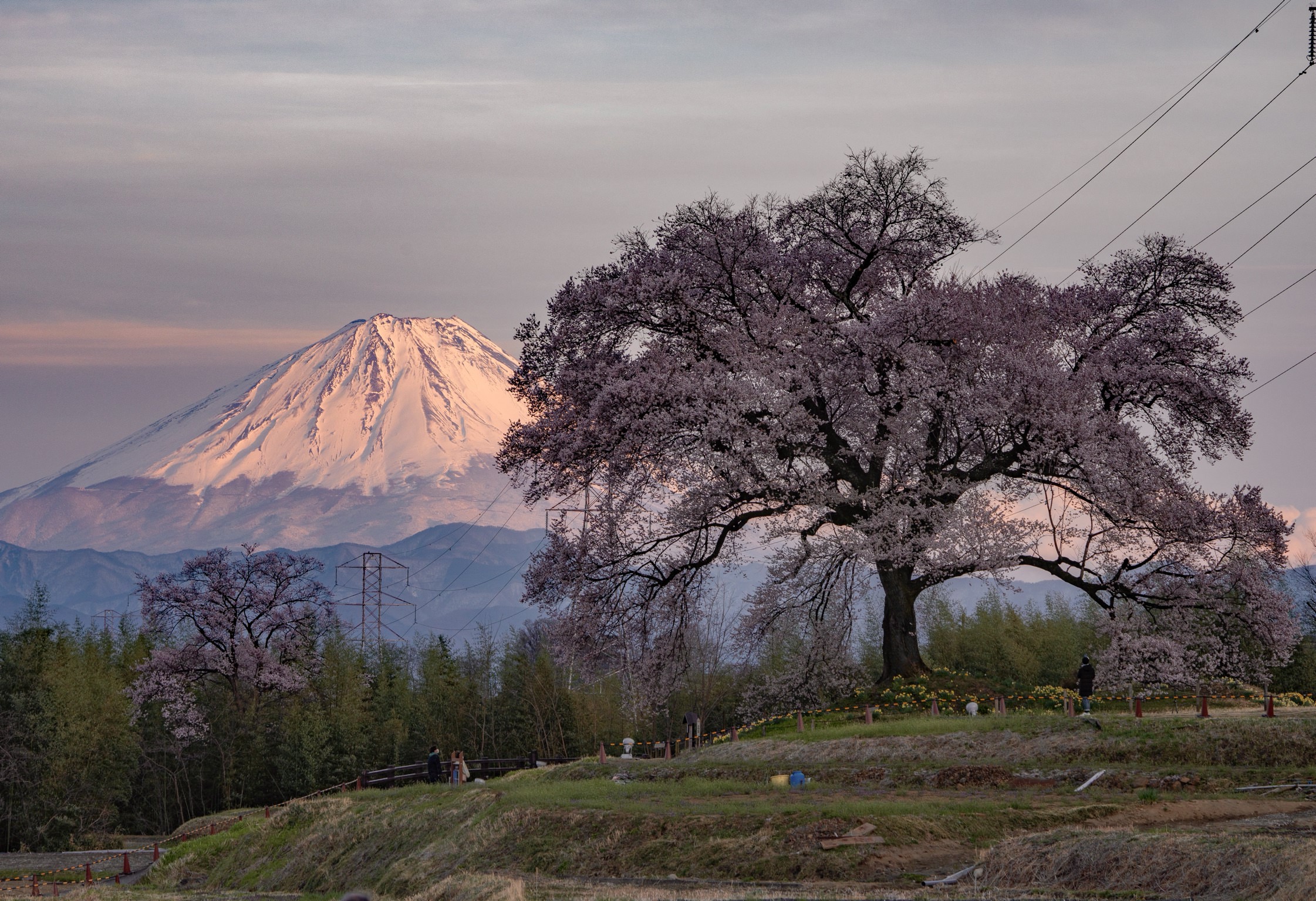 ライトに照らされた一本桜は幻想的で感動しました。