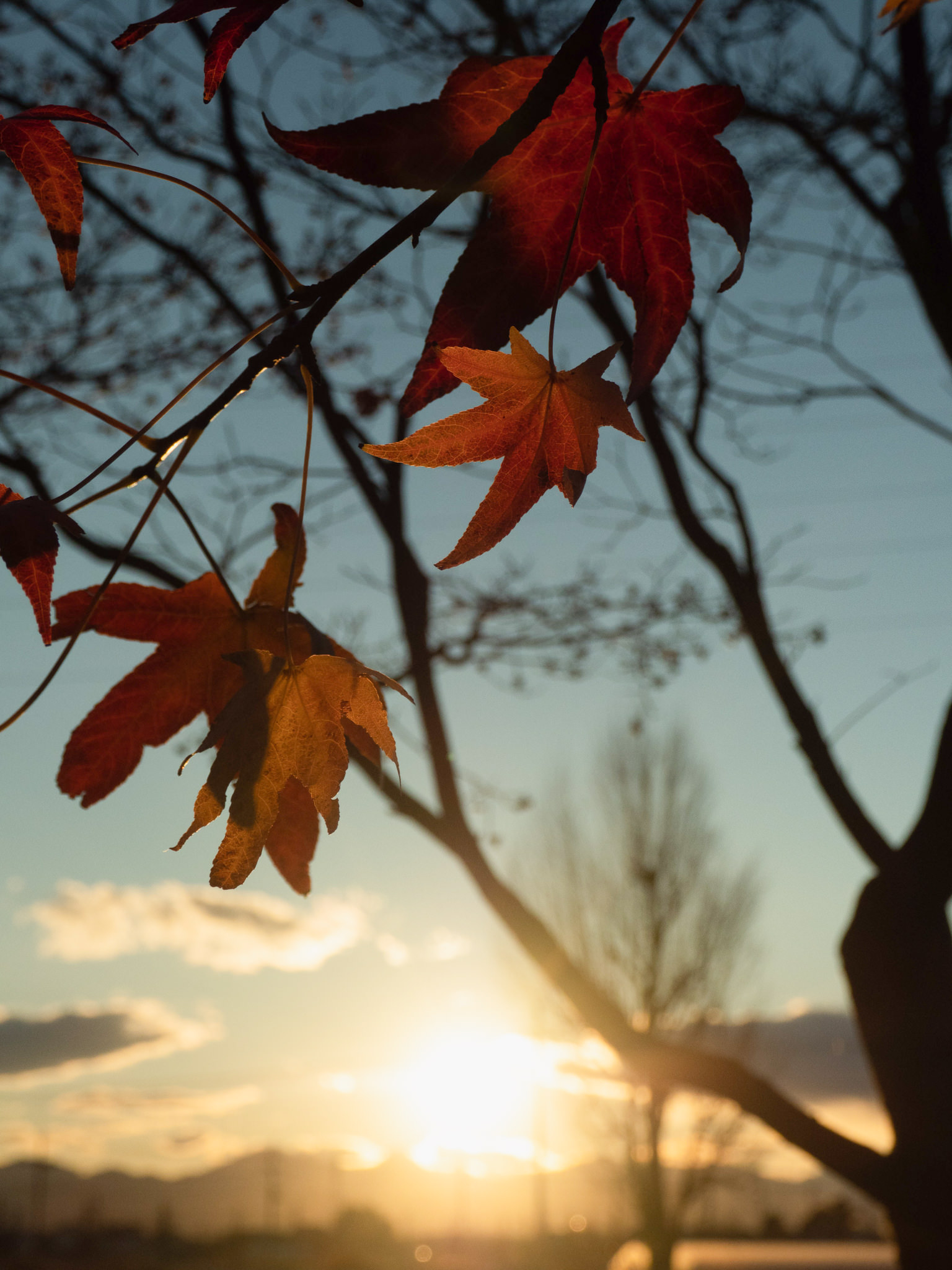 たまに立ち寄る公園。日が傾き紅葉は輝いていた。