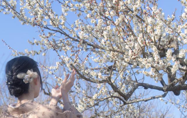 ピンクの梅が奥の白梅の模様のようでかわいいと思い撮影。