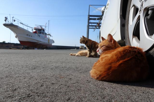 軽トラの下で熟睡していた野良ねこさん。ちょっと近すぎて、起してしまいました。