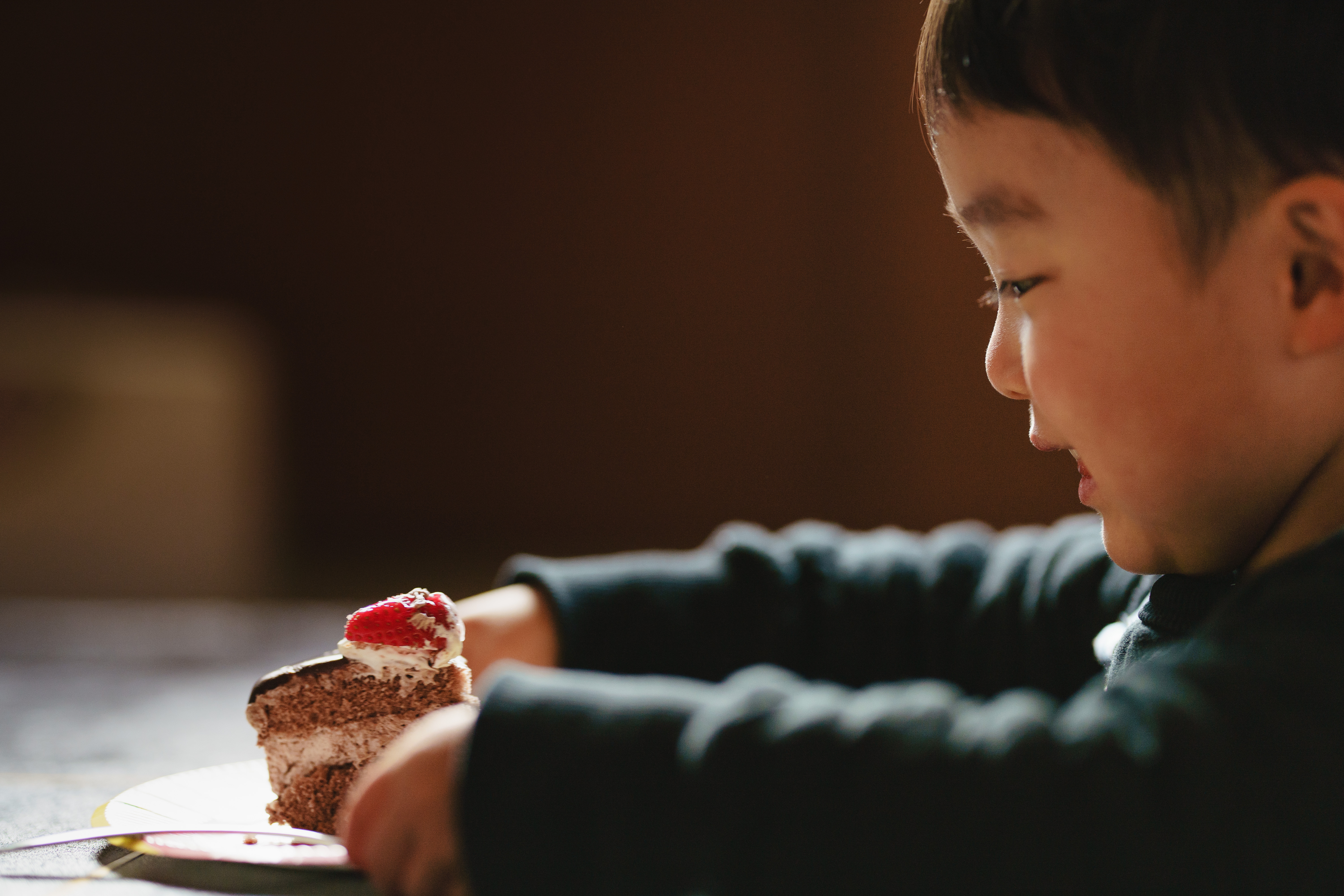誕生日会で、ケーキを切り分けてもらった瞬間の嬉しい顔。