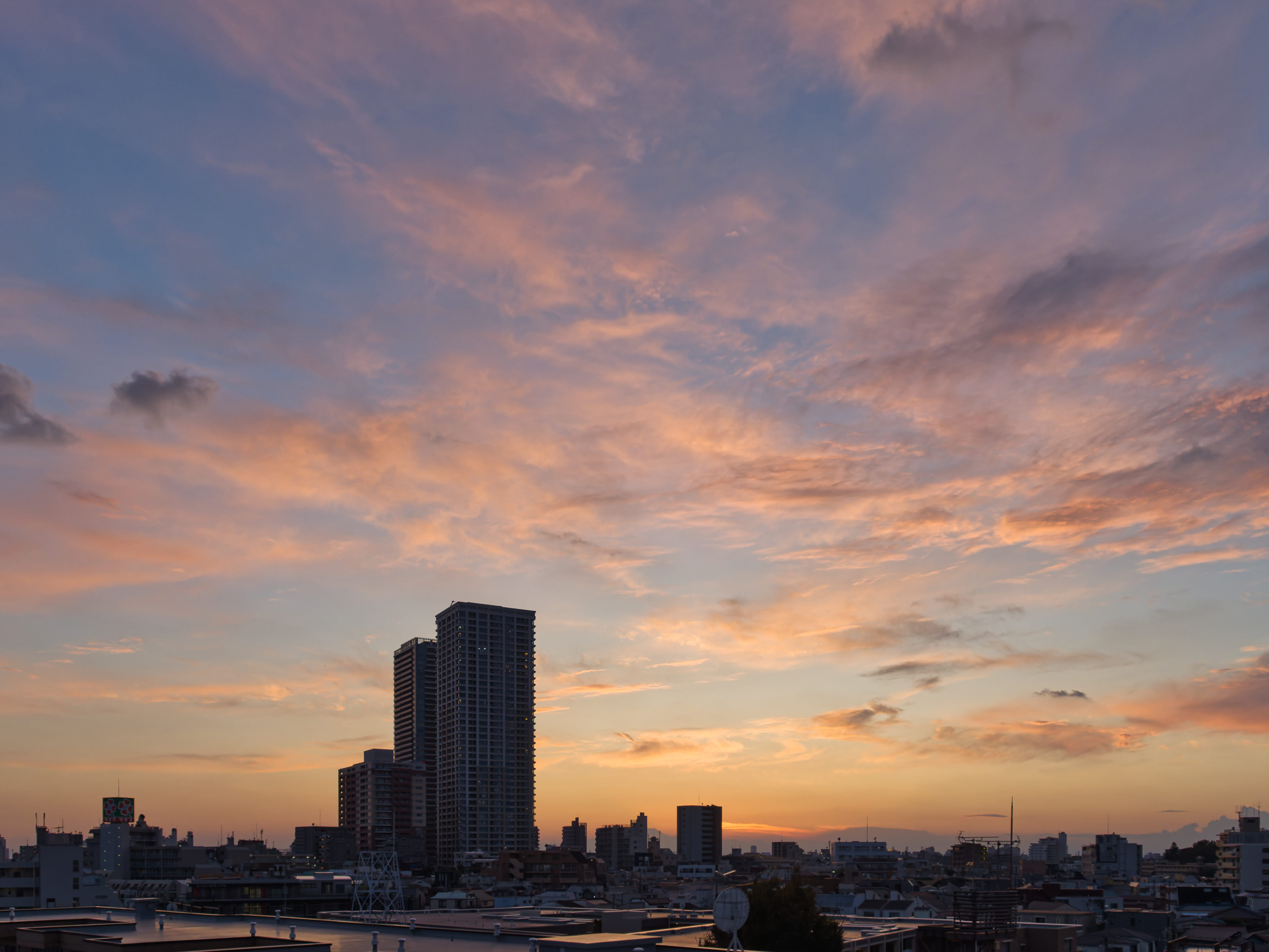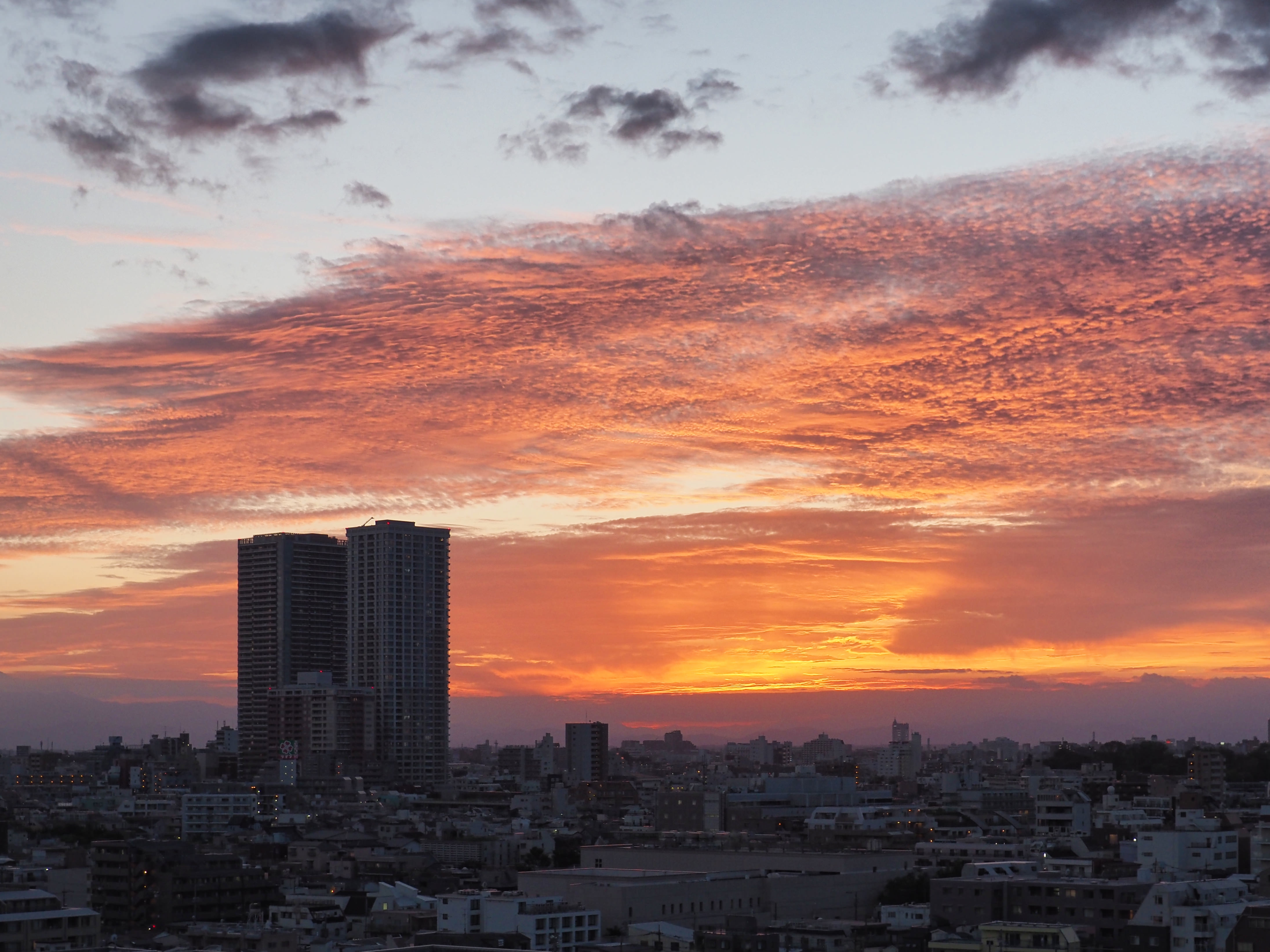 五反田方面から目黒方面を見た、夕暮れ時の雲。